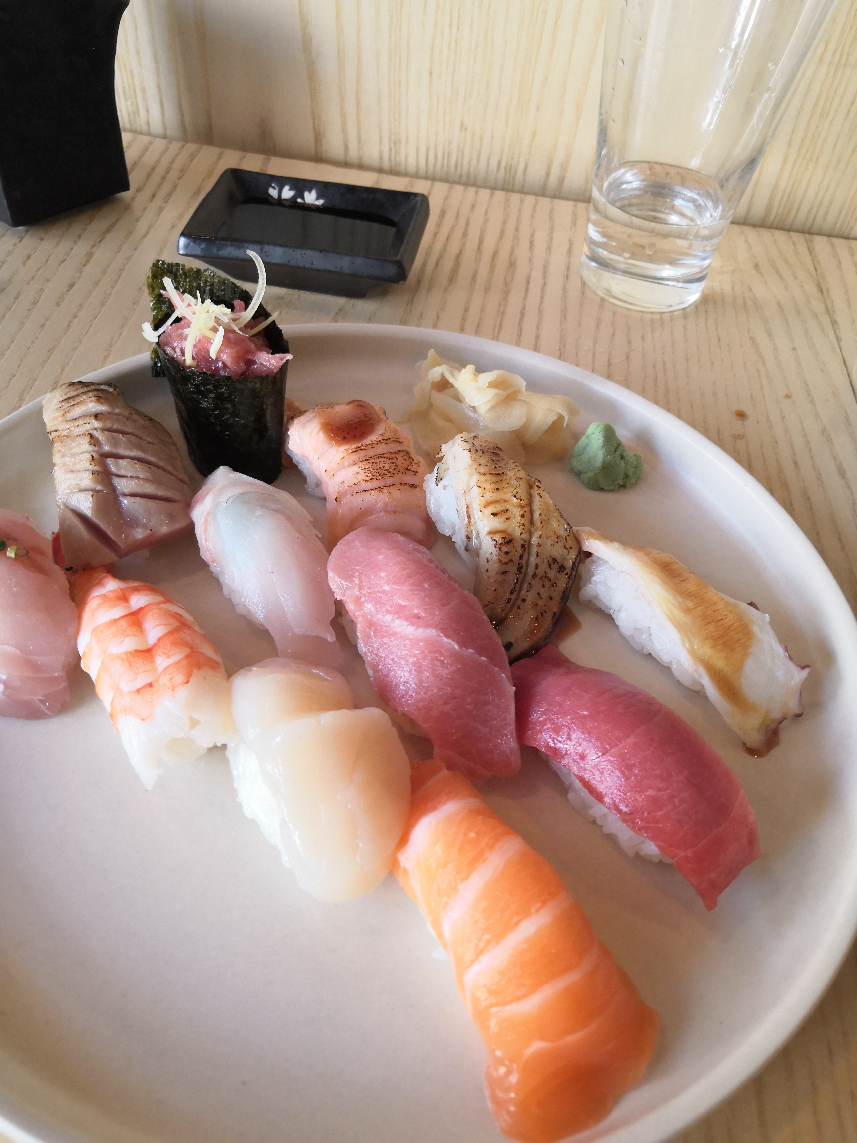 Très tres bon. On avait réservé car la salle est vraiment petite. J'ai choisi une assiette de dégustation, avec une variété de 10 sushis, dont oursin, thon gras, Saint Jacques. Parfait. La qualité est là, et évidemment, le prix aussi. Presque 100€ pour 2, sans dessert. Avec un coca zéro et une eau pétillante.