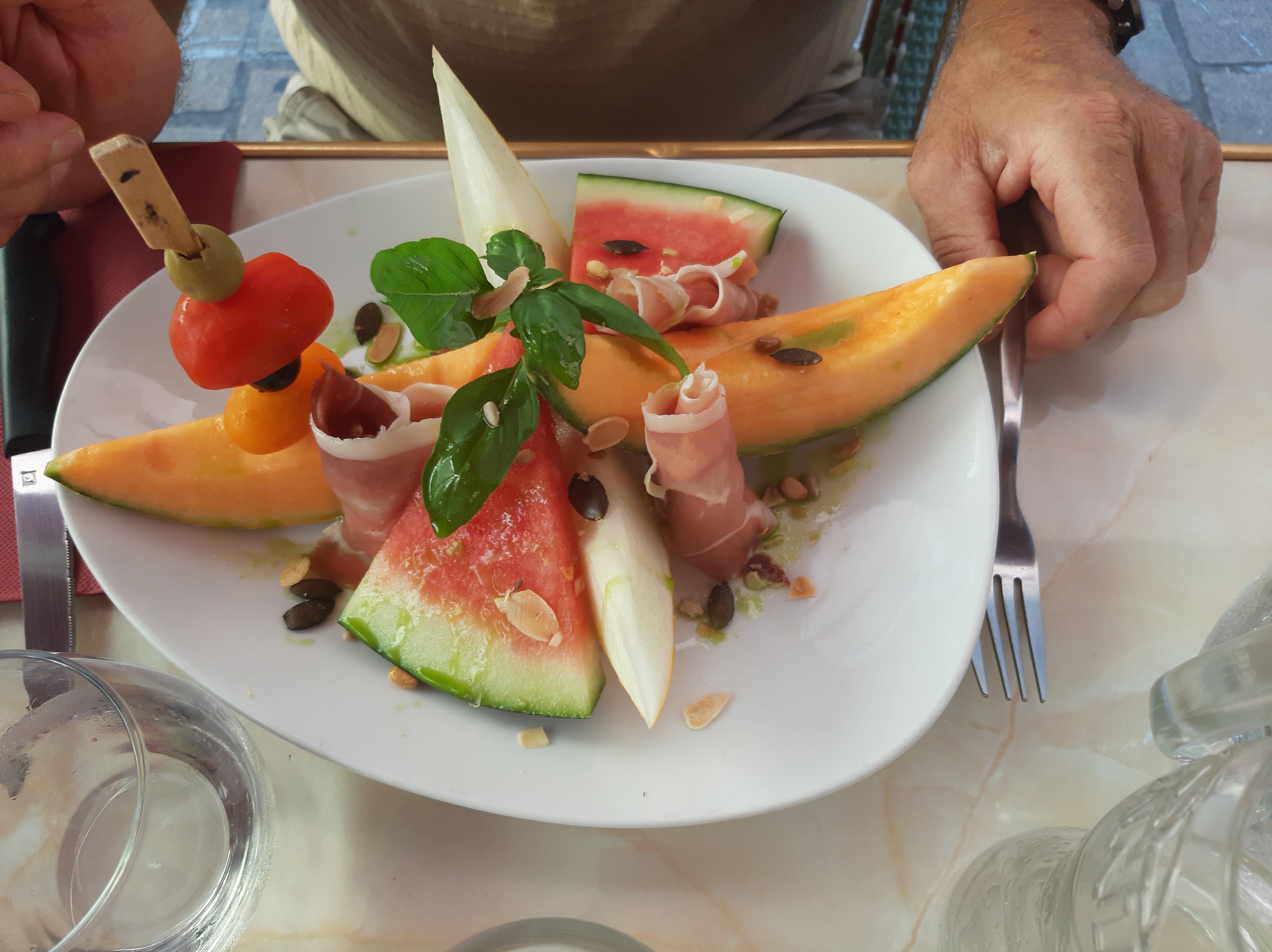 Très bien accueilli , nous avons pris la plat meli melon très bon très frais . Personnel agréable