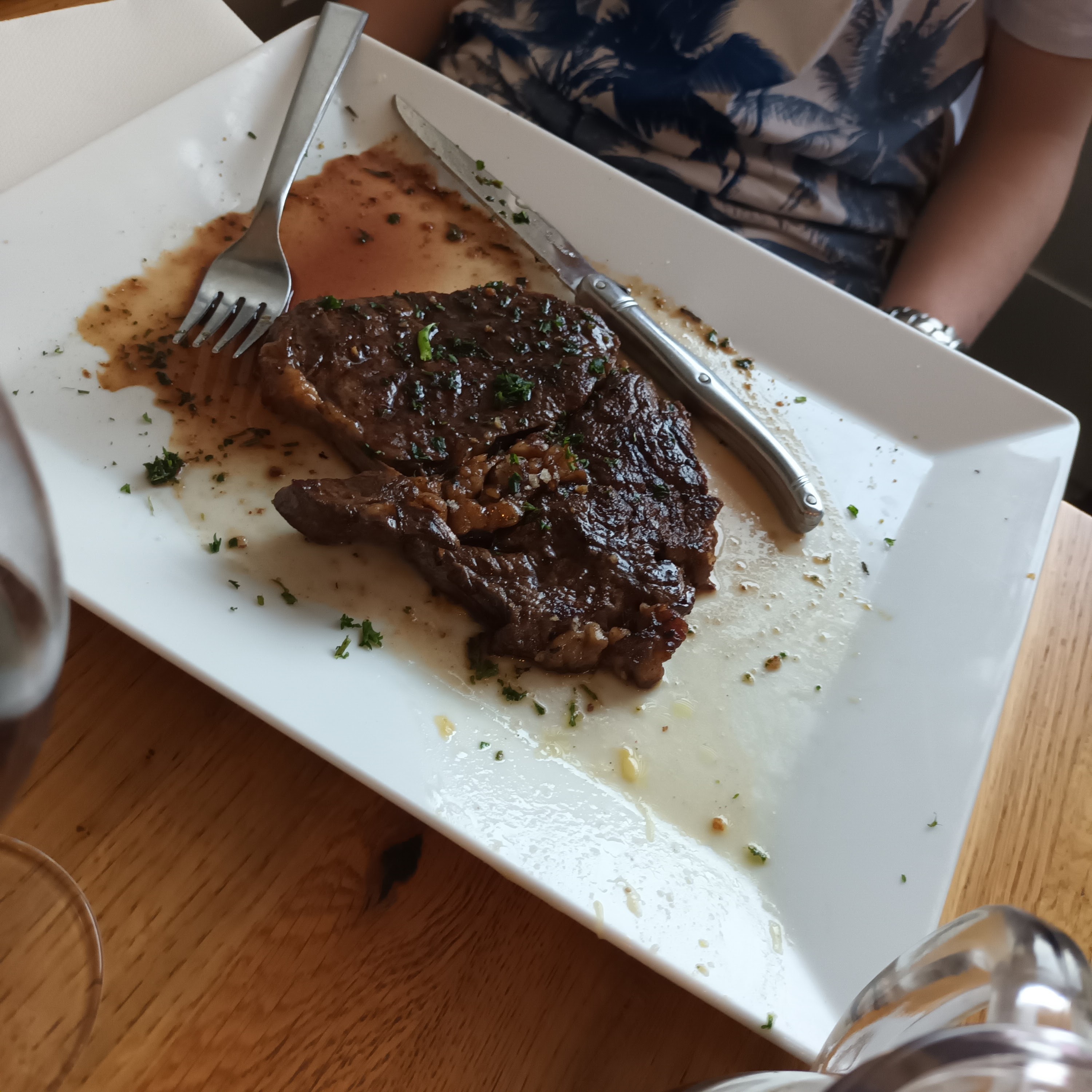 Très bon plat, copieux, viande excellente !!!! (Moi entrecôte, et tartare pour mon mari) Magnifique cadre, au bord de la Moselle !! Très bon accueil, personnel souriant ! Je recommande sans hésitation