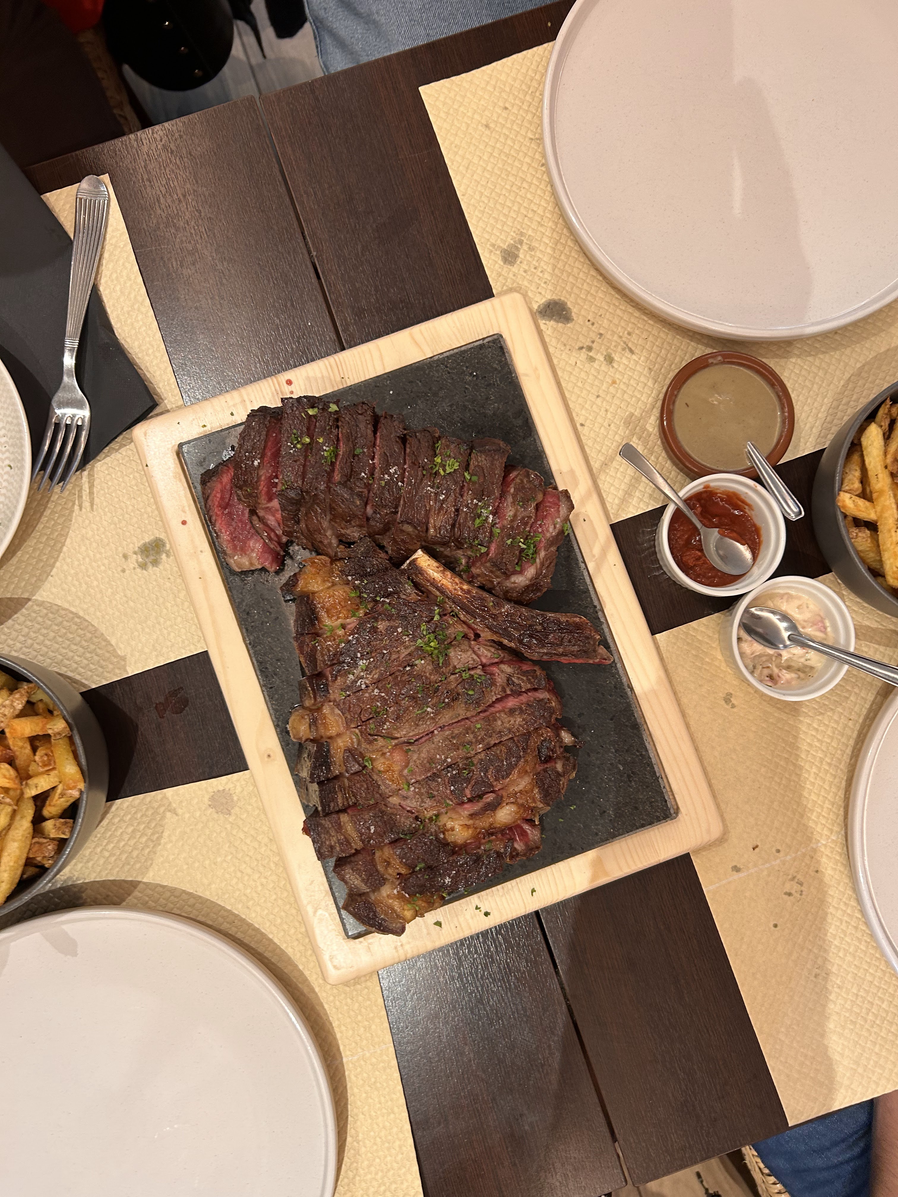 Excellent restaurant pour les amateurs de viande, du choix sur les morceaux le poids bref une valeur sûre. Un plat végétarien très bon. Service au top ! Allez y les yeux fermés