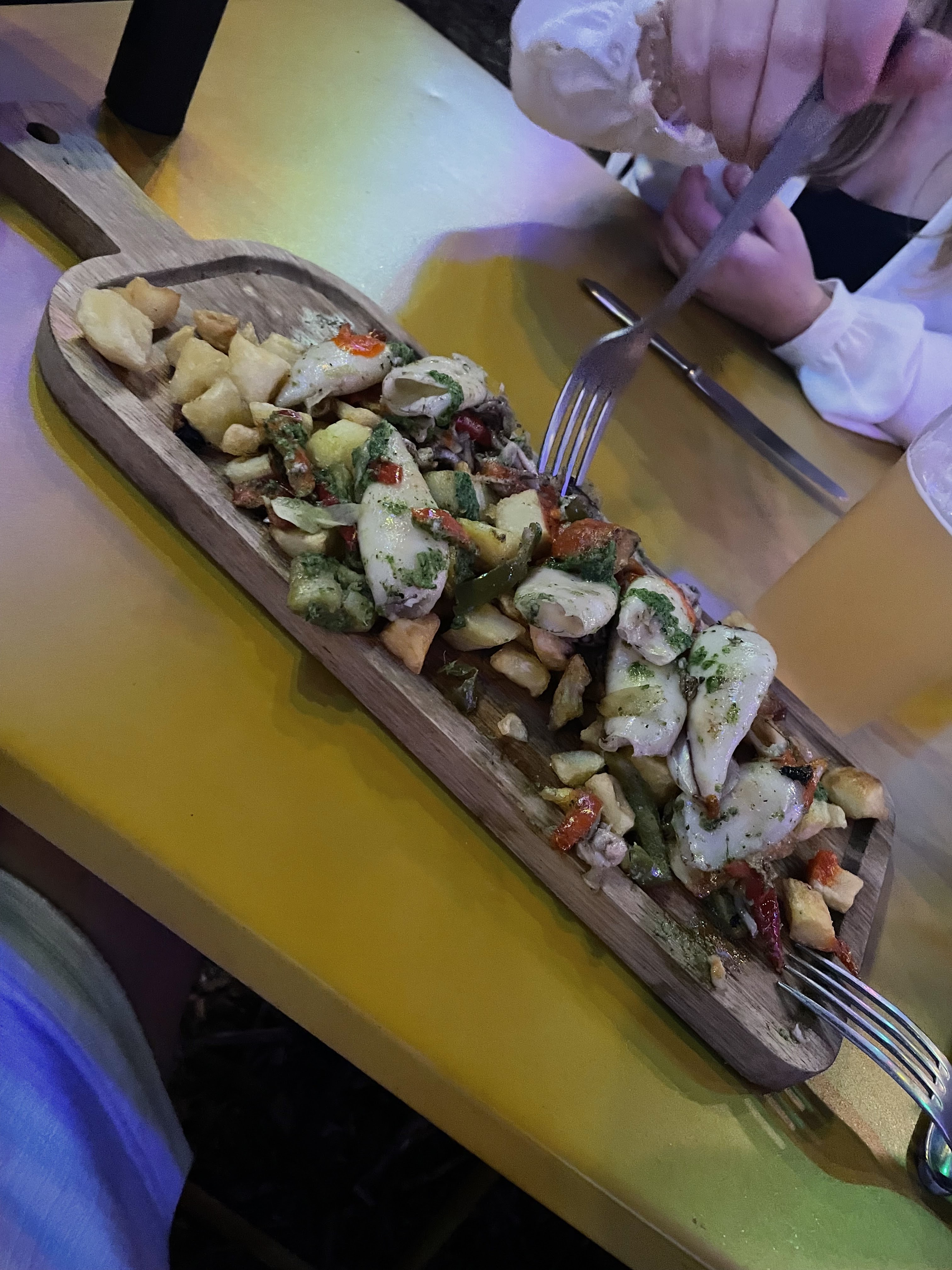 Très sympa lieu convivial et festif. Ambiance guinguette. Cuisine correcte. Sous forme de planche individuelle ou à partager. Et puis au cours de la soiree, la musique arrive et va sur le dance floor qui veut. Service un peu stressant quelquefois, et quelques erreurs, mais au vu de la bonne soiree passée je recommande.