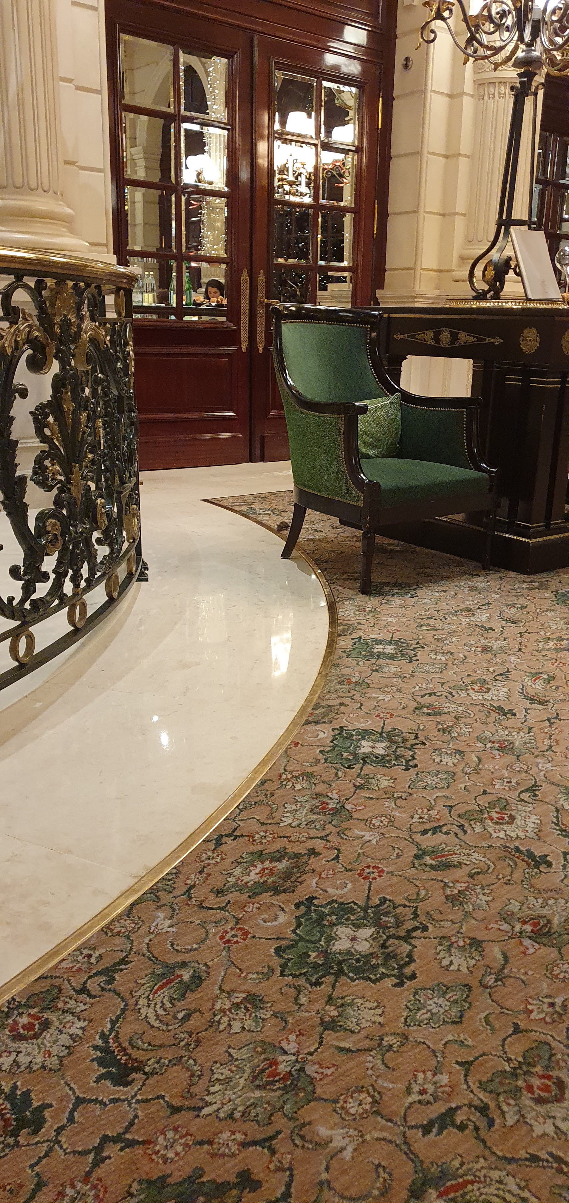 J'y suis allée hier, vendredi 9 décembre. Très beau cadre et en même temps lieu très accueillant. On s'y sent bien, à l'aise. Très belles décorations pour Noël. Les deux serveurs que nous avons eu étaient très prévenants mais le premier devait débuter et a fait des étourderies. Il avait oublié de nous donner les serviettes et couverts et nous avons vu qu'il avait oublié pour certaines tables et pas pour d'autres. Quand nous lui avons réclamé des serviettes, il a semblé se rappeler son oubli et nous a aussi apporté les couverts (serviettes en tissu). Mon chocolat chaud était tiède, c'est dommage car il avait l'air bon (9€). Le mille-feuilles était délicieux (16€). Mon amie avait pris un thé gourmand avec 3 petites pâtisseries (14€) dont elle était très contente. Toilettes propres et belles. Si on compare avec les salons de thé/bars des autres palaces, celui-ci est très bon rapport qualité/prix, décor et accueil. J'y retournerai.