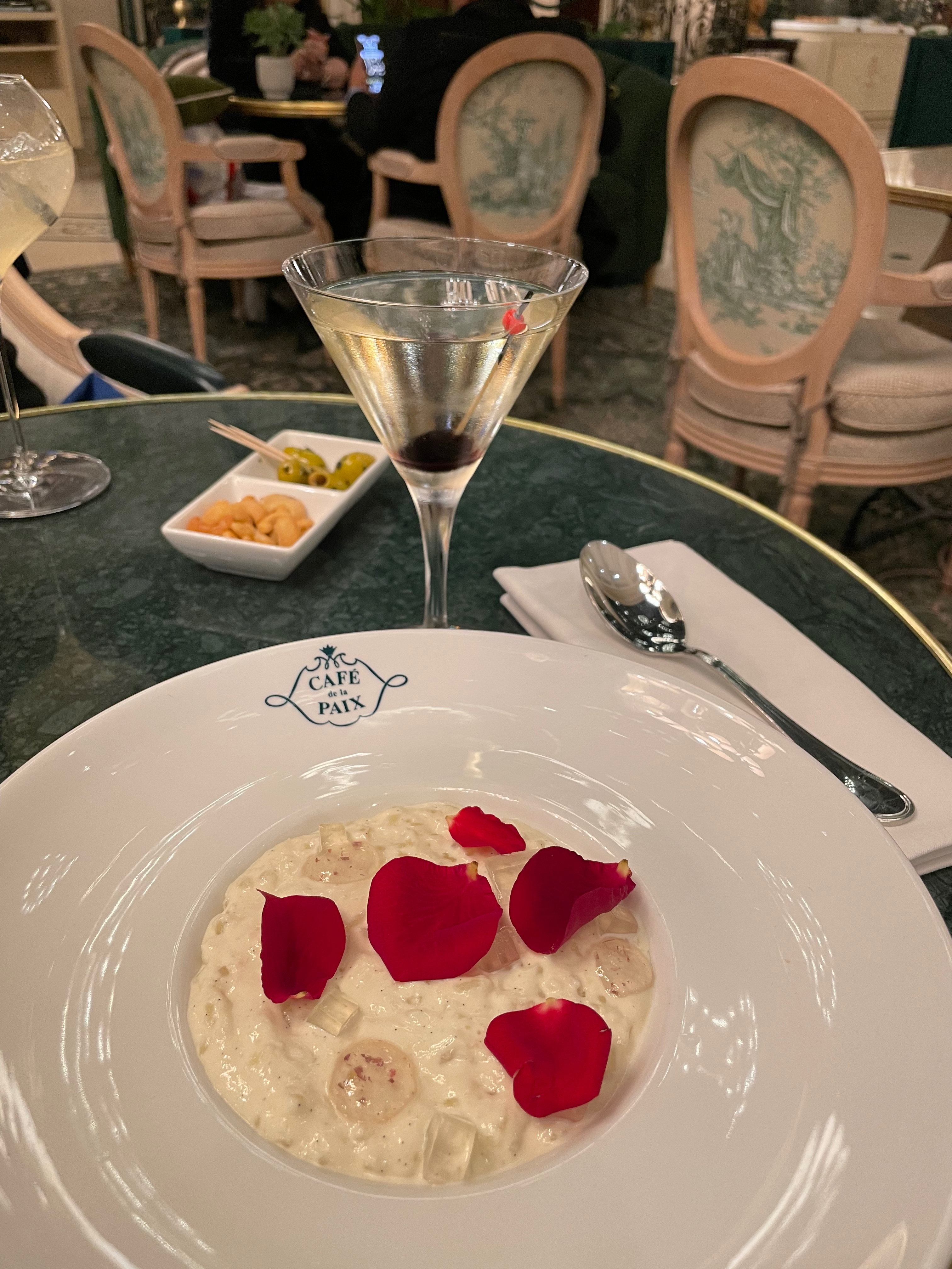 Un de mes endroits préférés à Paris pour une pause café relaxante dans le quartier animé de l'Opéra. En général, je ne viens pas pour le déjeuner ou le dîner mais plutôt l’après-midi où il y a moins de monde. Les intérieurs sont étonnants, à la fois raffinés et flamboyants. Le personnel est tout aussi élégant que le lieu mais parvient néanmoins à rester accueillant et chaleureux. L'ambiance est distinguée mais pas trop prétentieuse. Les cocktails et boissons chaudes sont excellents, et j'apprécie particulièrement le thé sur mesure du Café de la Paix. Si je suis honnête, leurs desserts ne sont pas les meilleurs de la ville mais restent acceptables par rapport à des endroits similaires, étant donné que les meilleurs endroits pour pâtisseries à Paris seront toujours de vraies pâtisseries. Il existe de nombreux palais et cafés de ce genre à Paris et celui-ci se démarque vraiment. Cela vaut vraiment le détour pour tous les habitants de la région !