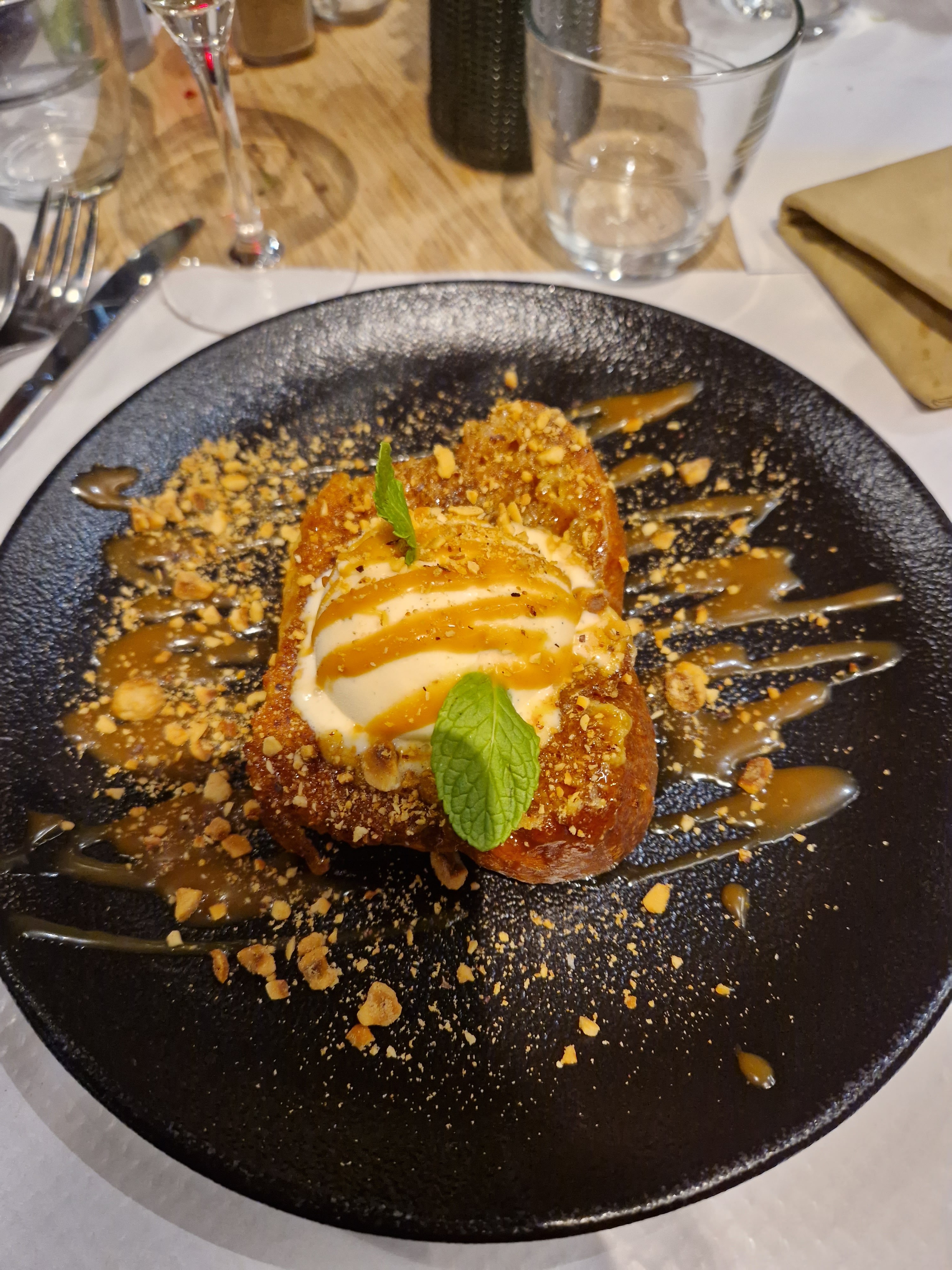 Cadre très joli et chaleureux personnel très sympathique et à l écoute et très souriant Que des produits frais et ce dessert brioche au caramel tout simplement succulent Soirée très sympathique A refaire sans souci