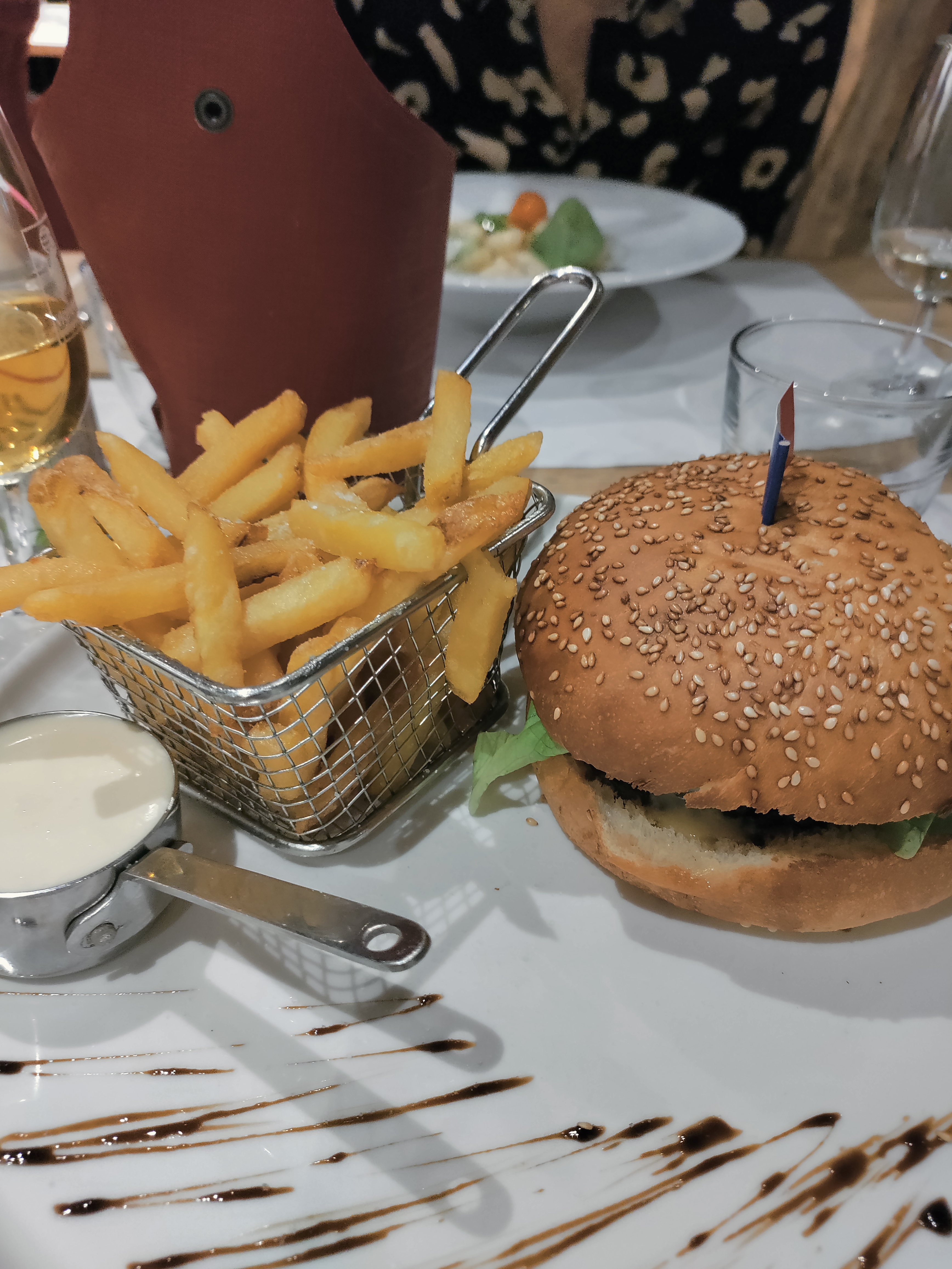 Frites avec un goût d'huile de friture bonne à changer et un burger qui pourrait être plus fourni...dessert sympa accueil agréable.