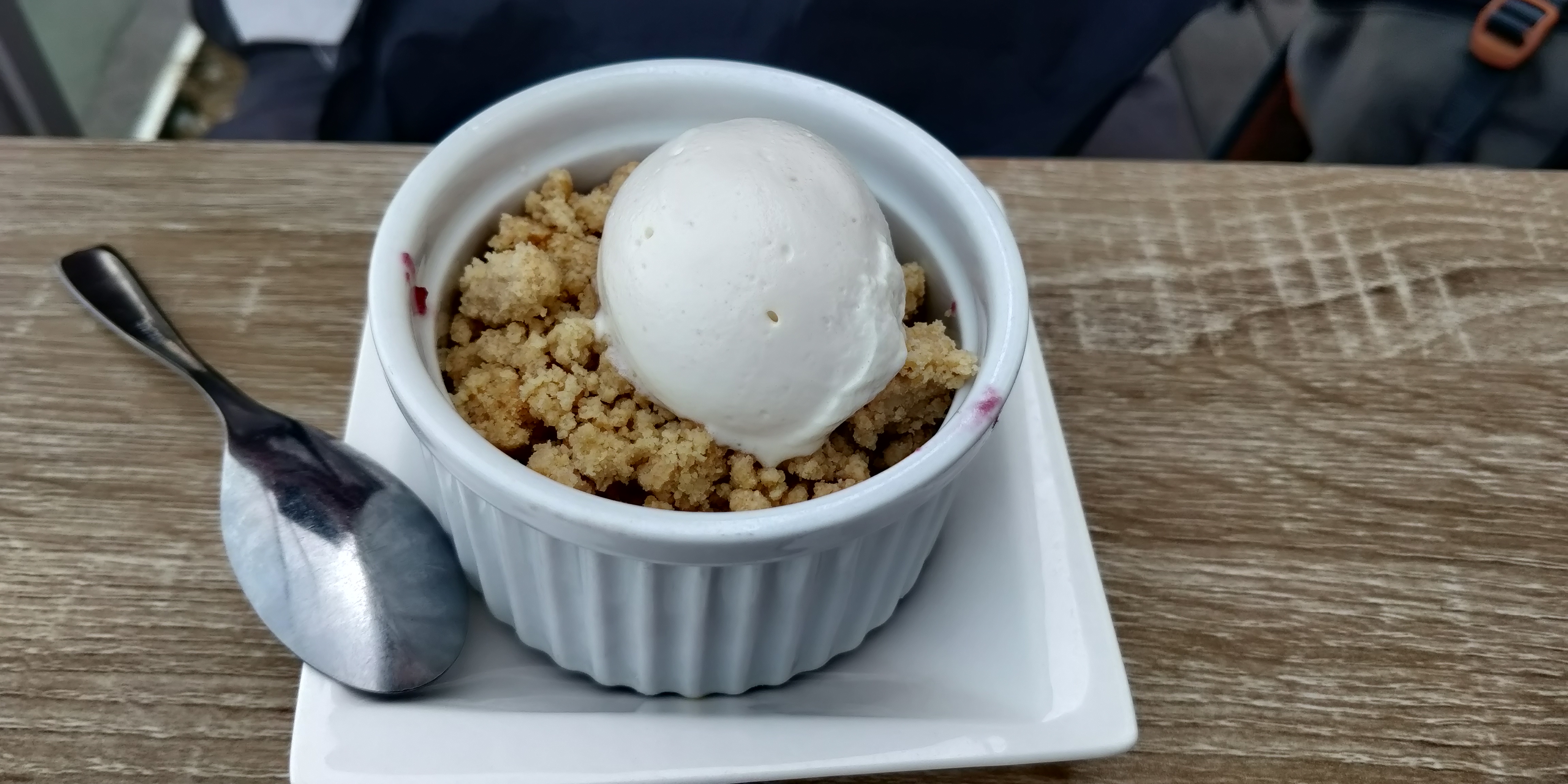 Le service était très agréable et l'ambiance et le facteur de bien-être étaient très élevés. Le dessert était très savoureux - la combinaison et l'idée étaient géniales - les boissons aussi. Le fish & chips était ok - bon. Le rapport qualité/prix était très bon. Le design intérieur est très chaleureux, beau et confortable.