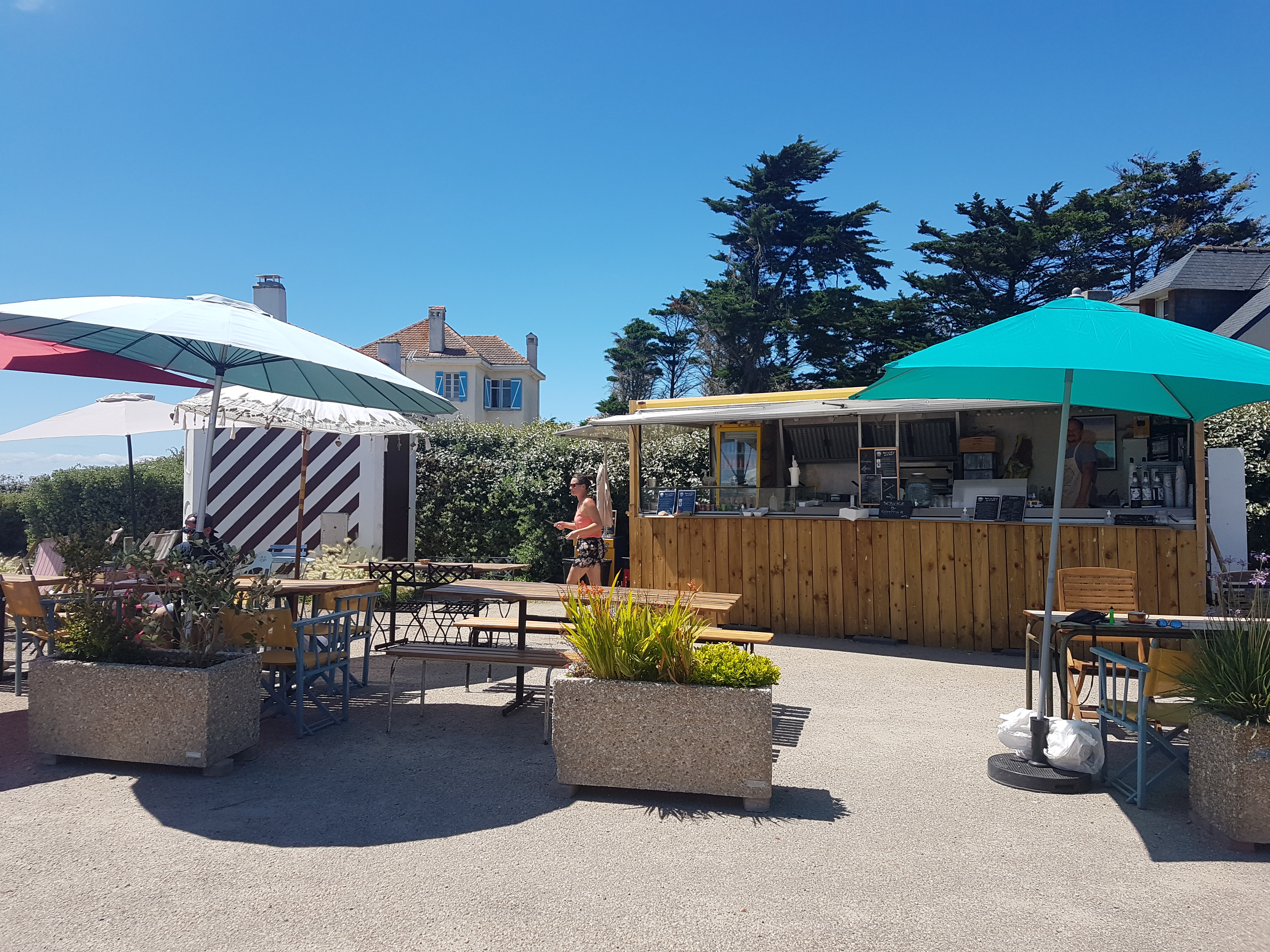 Nous avons atterri ici, suite à une grande promenade en bord de plage en plein soleil. On nous a offert gentiment des verres d'eau pour nous désaltérer même si nous n'avions pas encore décidé de prendre des consommations sur place.