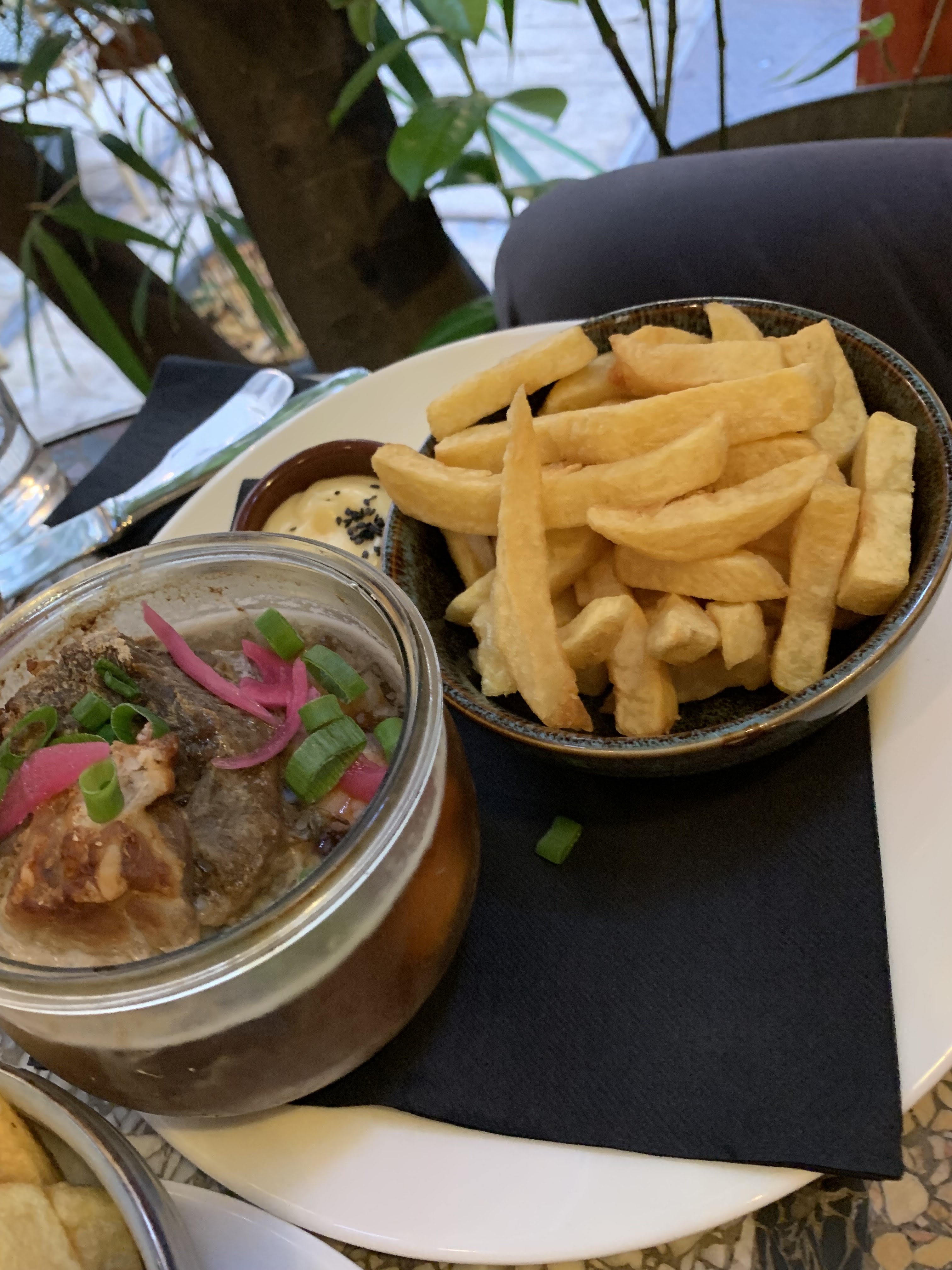 Venue ce midi en terrasse. Cadre et lieu sympa. Repas plus ou moins bien. Cependant pour la carbonade , 3 morceaux uniquement et bcp de gras! Mon amie avait prit une « langue de chat » qui a finalement était remplacer par autre chose car rupture. Elle s’est retrouvée avec un tout petit morceau de viande. Déçu de la bouffe dans un si beau lieu..