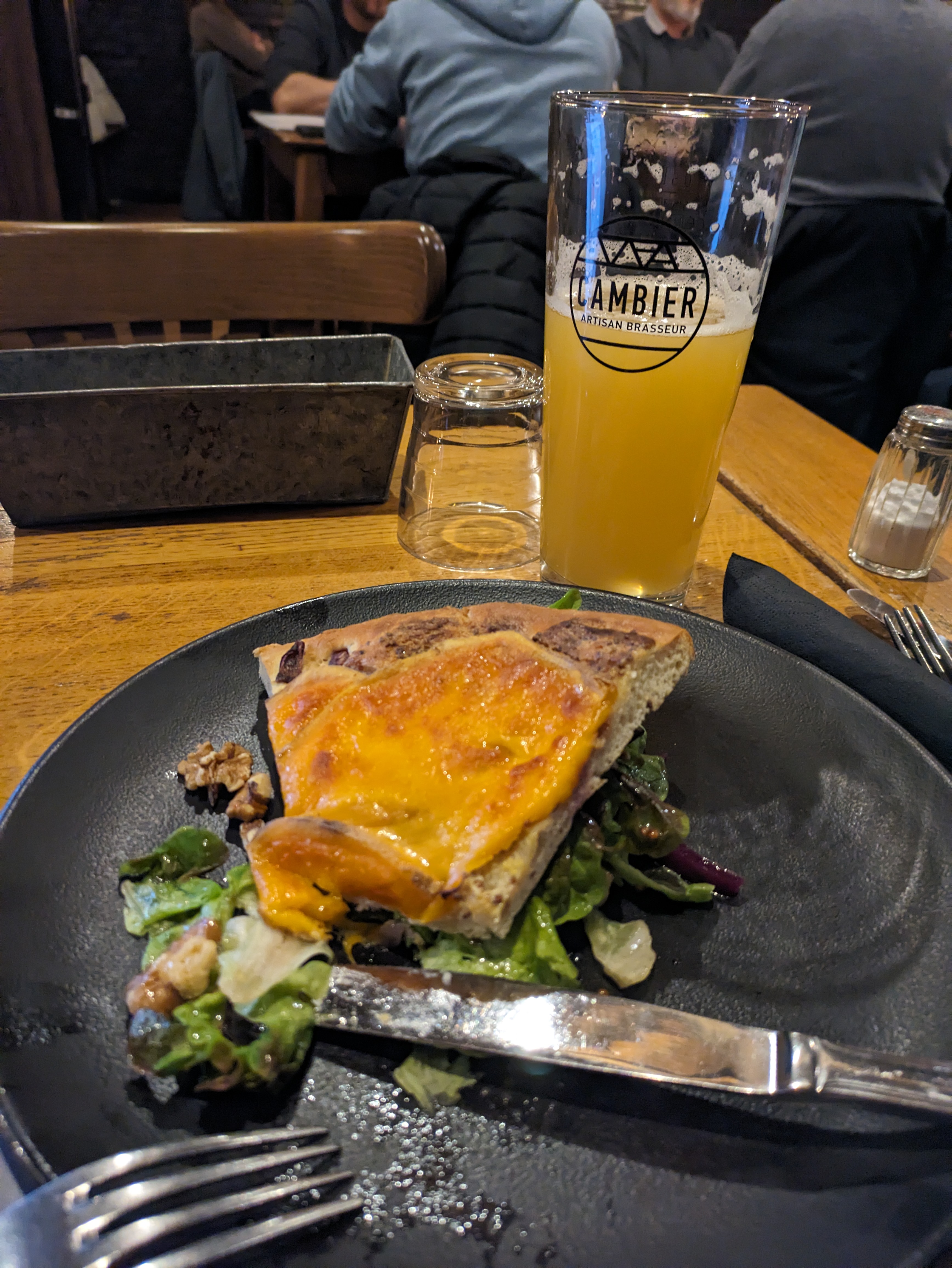 Un bon restaurant dans un cadre atypique Les murs en brique ont un vrai charme Je recommande la fougasse au maroilles qui est délicieuse