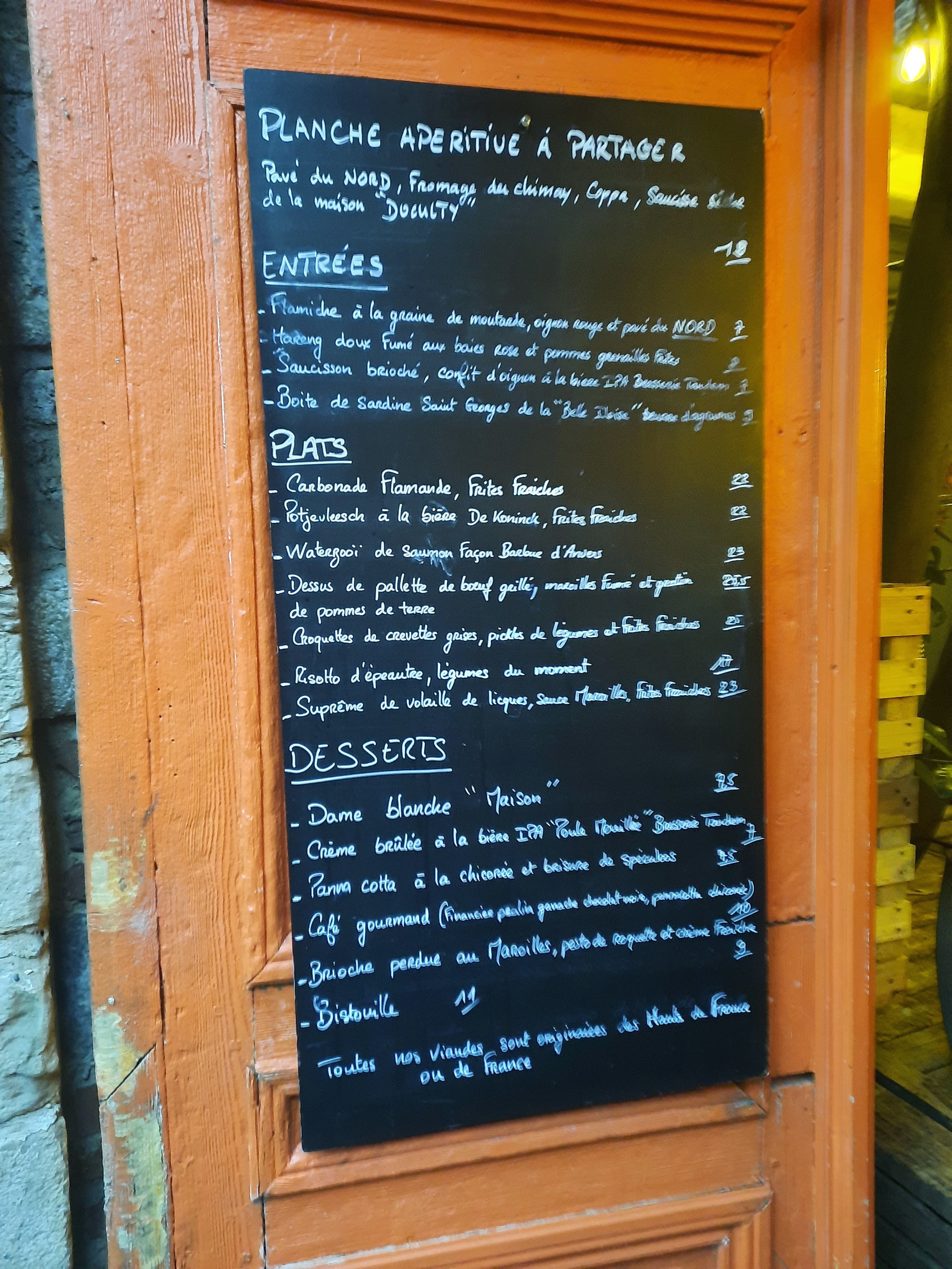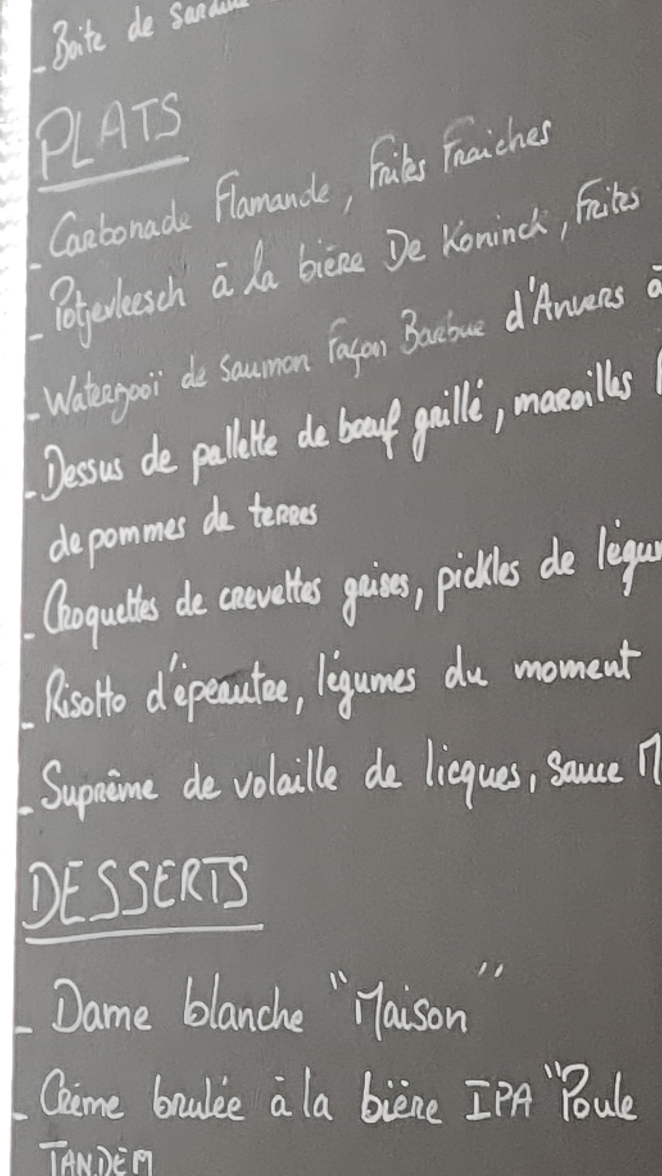 Resto calme, au fond de cour avec beaucoup de charme et chargé d’histoire Salle grande , bien agencée et spacieuse . Carte avec QRcode pour les boissons . Ardoises sur les murs . De la bière de qualité et dans les plats . Les plats sont délicieux et copieux . Préparés avec des produits de qualité . Tous les plats sont faits maisons , ainsi que les gourmandises . Nous avons pris : une carbonnade flamande , palette de bœuf pomme grenailles rôties . On oublierait le temps , tellement nous sommes bien installés , tellement nous sommes bien accueillis , tellement c'était excellent . Les plats sont arrivés rapidement . La planche à partager au top , . Les plats étaient joliment présentés, les assiettes chaudes et c’étaient délicieux . L’un des patrons Marius a fait un tour de salle et demander nos ressentis. J’ai adoré cette démarche . Lieu exceptionnel et agréable . Je recommande , les yeux fermés .
