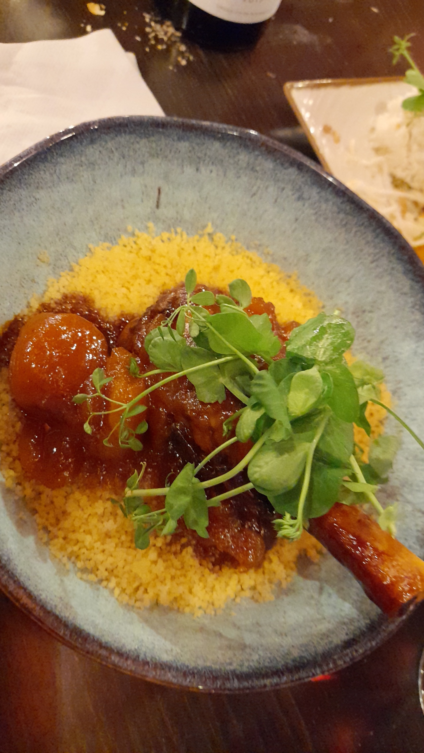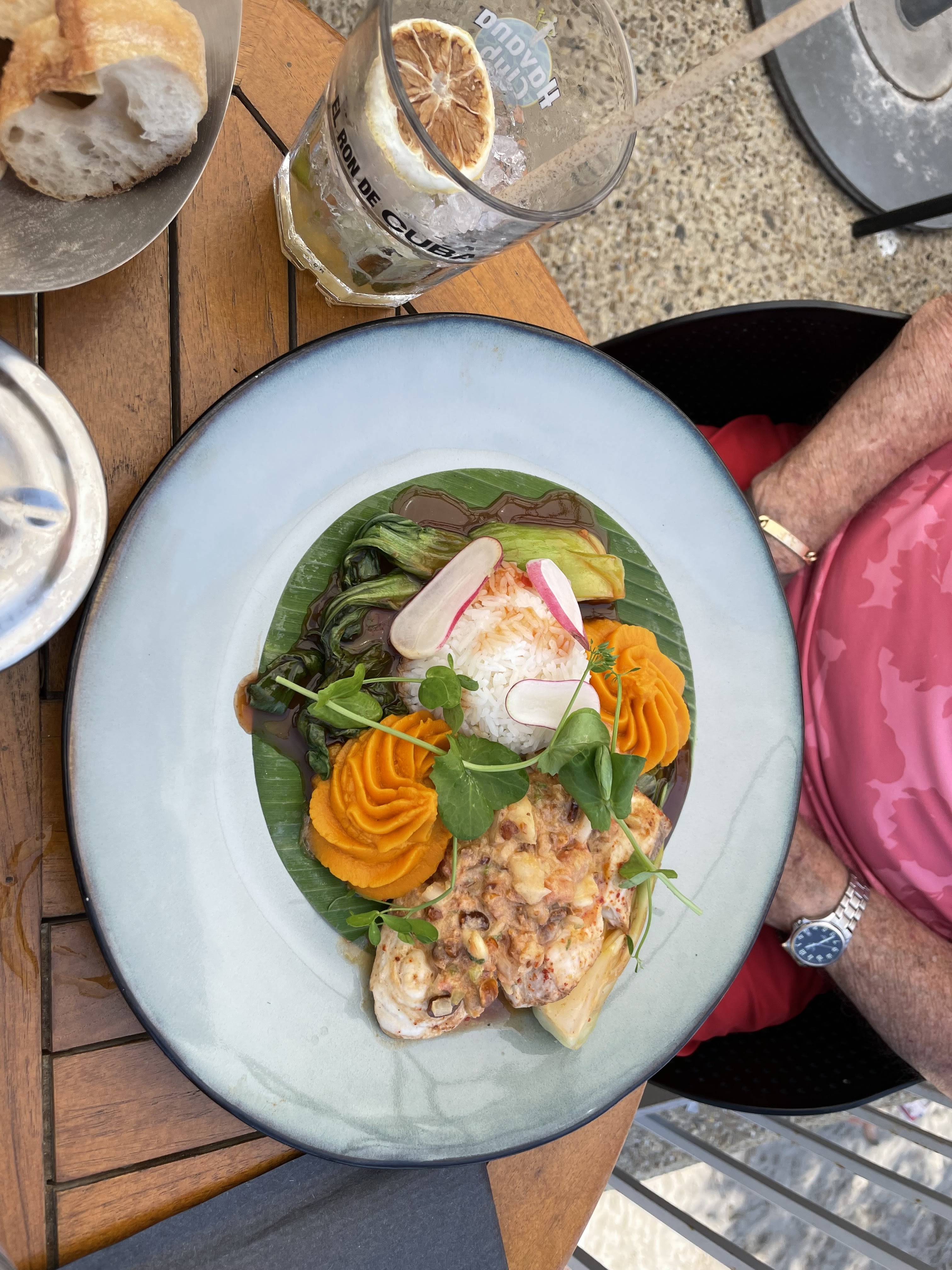 Cadre enchanteur pour admirer le coucher de soleil sur la 🌊 mer, personnel sympathique et arrangeant. Carte assez variée, c'est très copieux, des saveurs asiatiques. Très bon (et généreux) mojito ! La souris d'agneau était trop cuite cependant.
