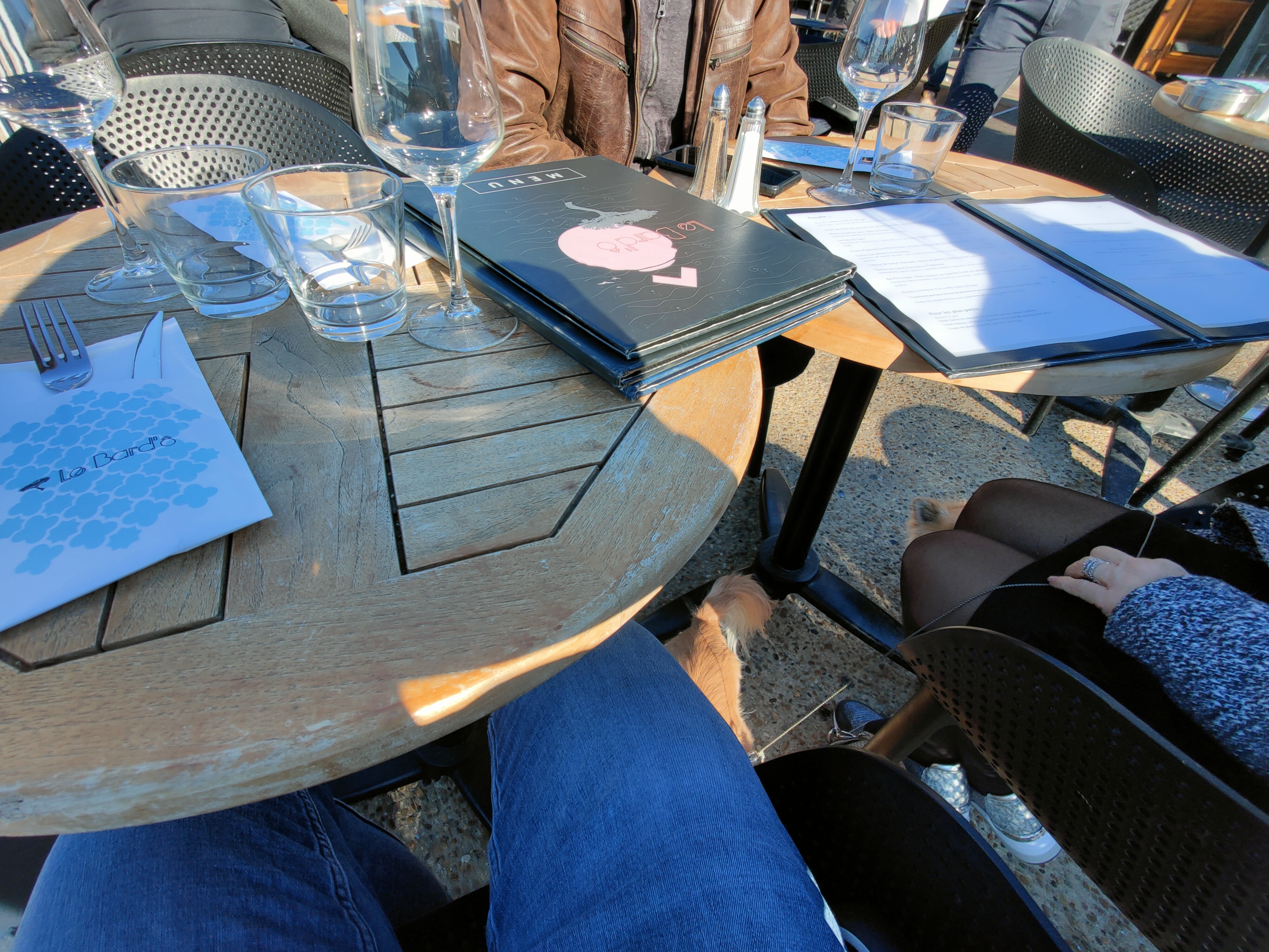 La cuisine était plutôt bonne et les serveurs sympathiques mais cela reste assez cher. Le problème c'est que l'ensemble est servi sur des tables de bar où on a davantage l'habitude de boire des bières que de manger des plats sophistiqués. Le tout avec tres peu d'espace. Meme les serveurs galèrent à se frayer un chemin entre les tables et finissent, en désespoir de cause, par nous passer les plats pour qu'on se les serve. Rien de bien grave mais quand on règle un plat 27 euros, on attend un poil mieux. Ah et ma chaise était à cheval sur le parasol, j'ai du la decaller et manger en biais. Bref. Nous avions réservé car j'avais mangé ici un hiver dans la salle et j'avais trouvé le resto très sympa. Nous y retournerons, mais seulement l'hiver.