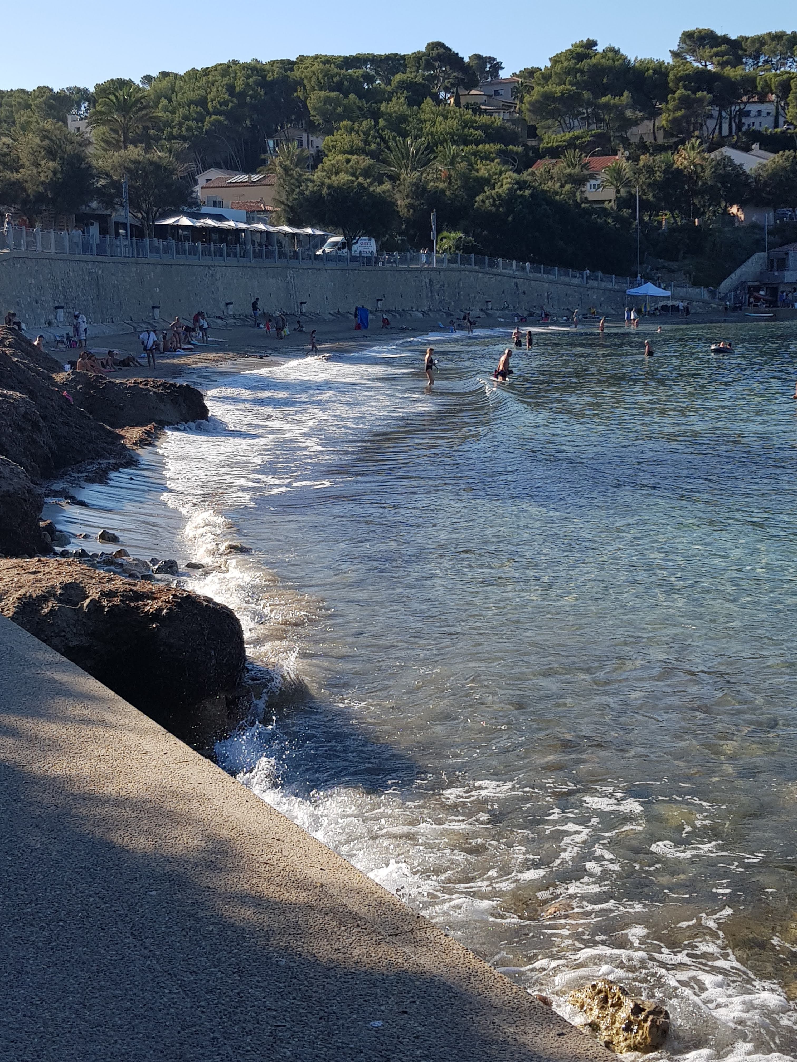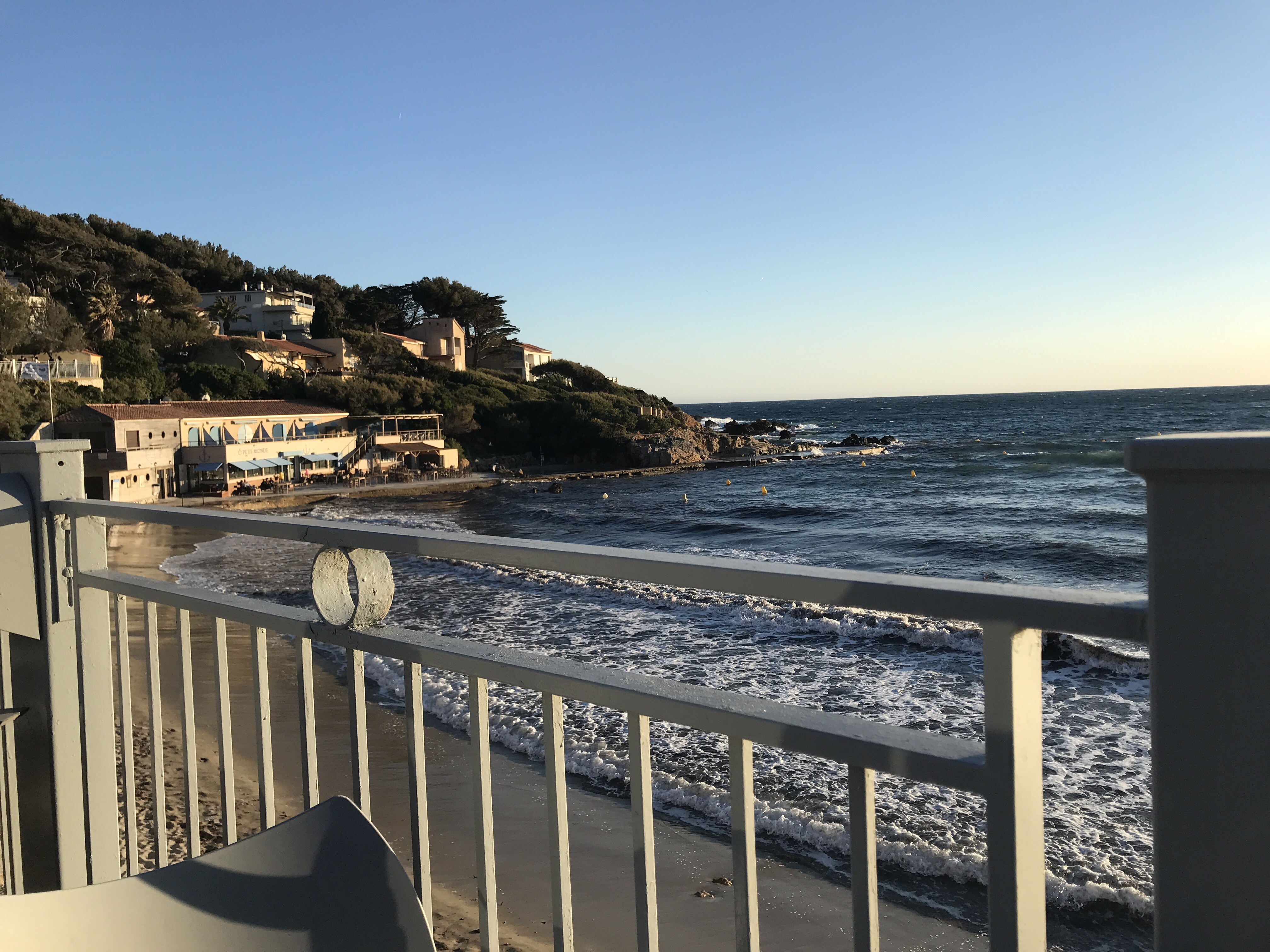 Vue splendide. Super également l'esplanade de jeu pour les enfants. La plage, elle, est petite et très exposée au mistral, mais elle est belle.