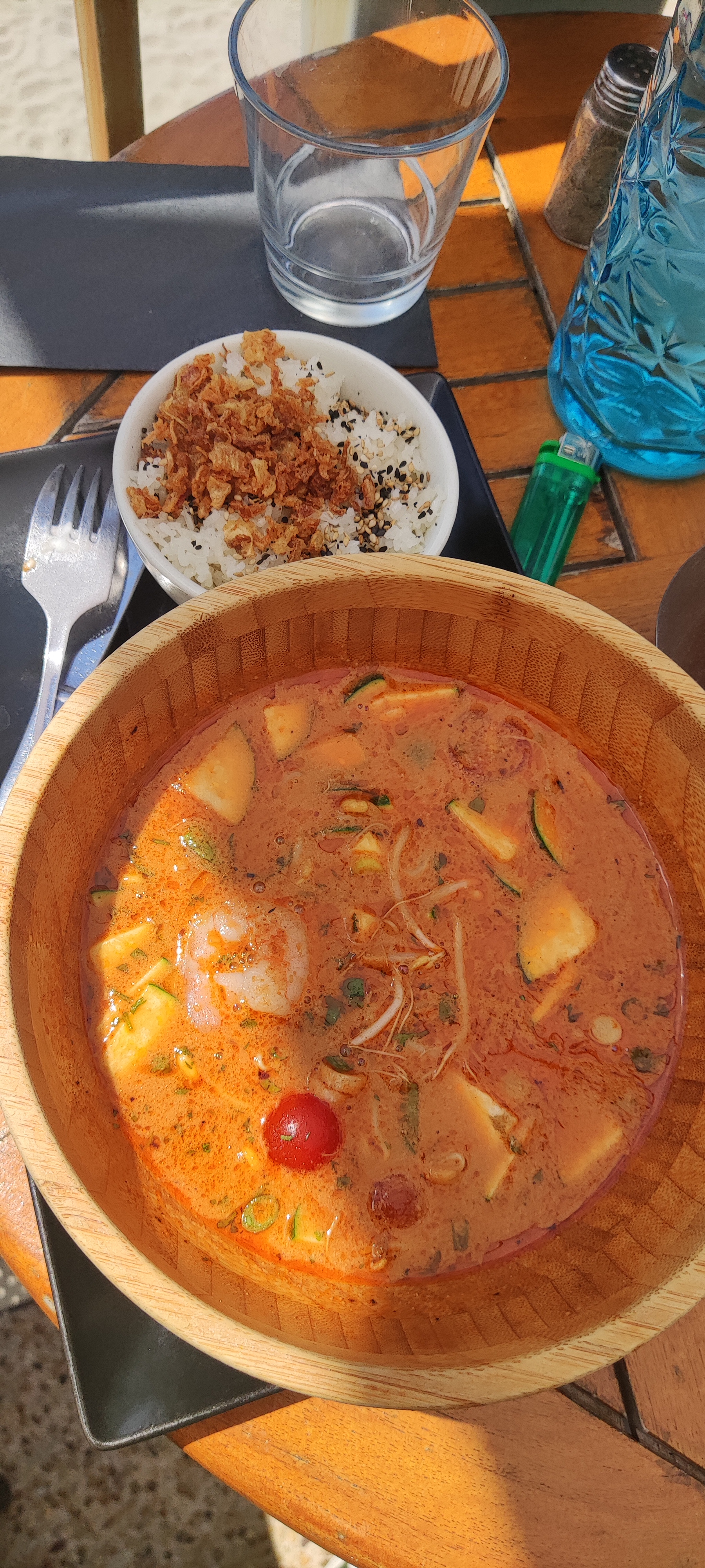 Nous nous sommes rendus au Bard’ô pour dîner. Le repas fut excellent ! L’œuf parfait en 3 cuisson en entrée puis le curry thaï et le gâteau citron-yuzu : le combo parfait ! La vue est très belle, avec un peu de chance vous aurez droit au coucher de soleil 🤩