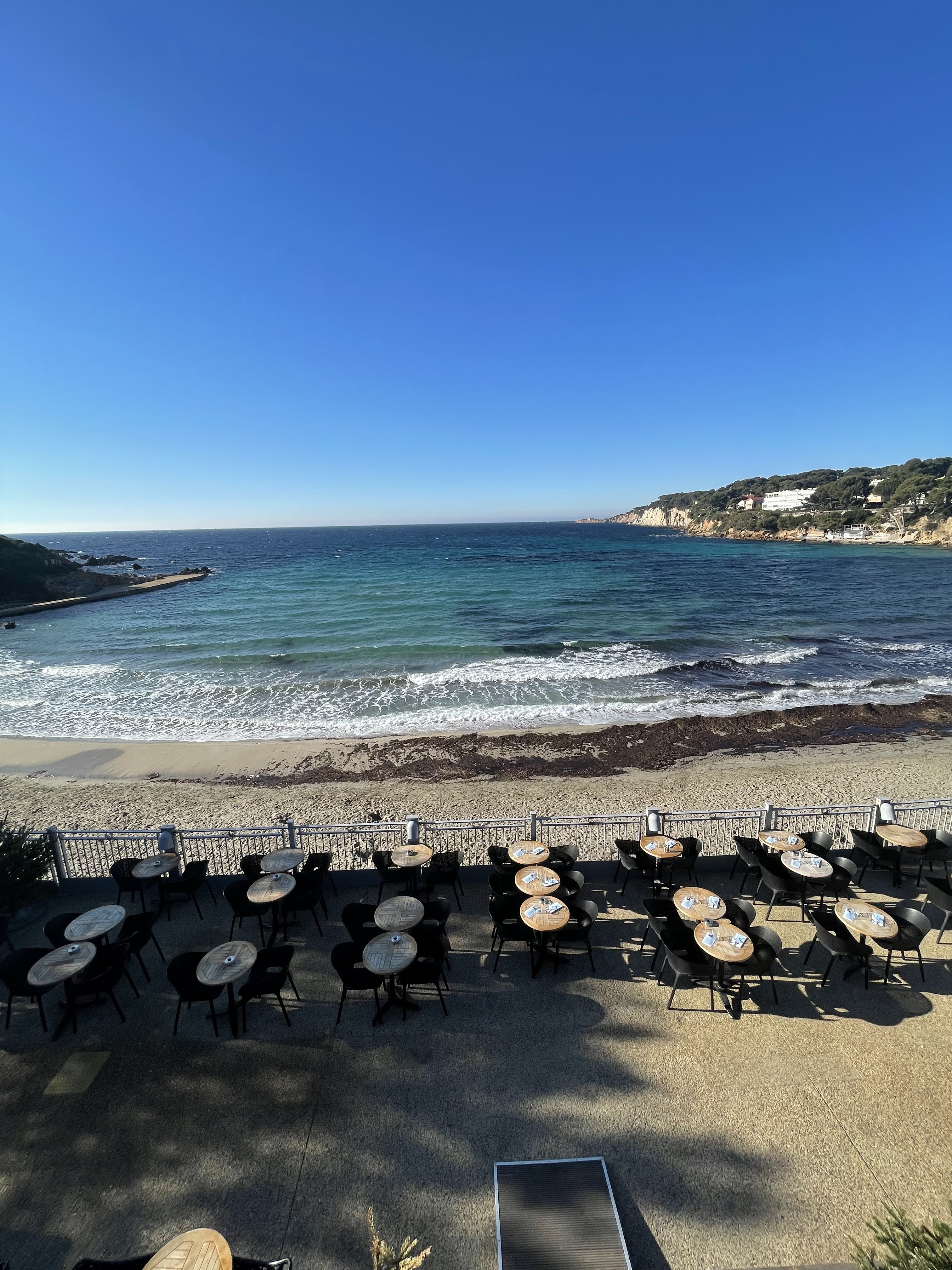 Lieu paradisiaque, personnel sympa et très respectueux en cette période du covid....vue exceptionnellement sur cette plage de Portissol...
