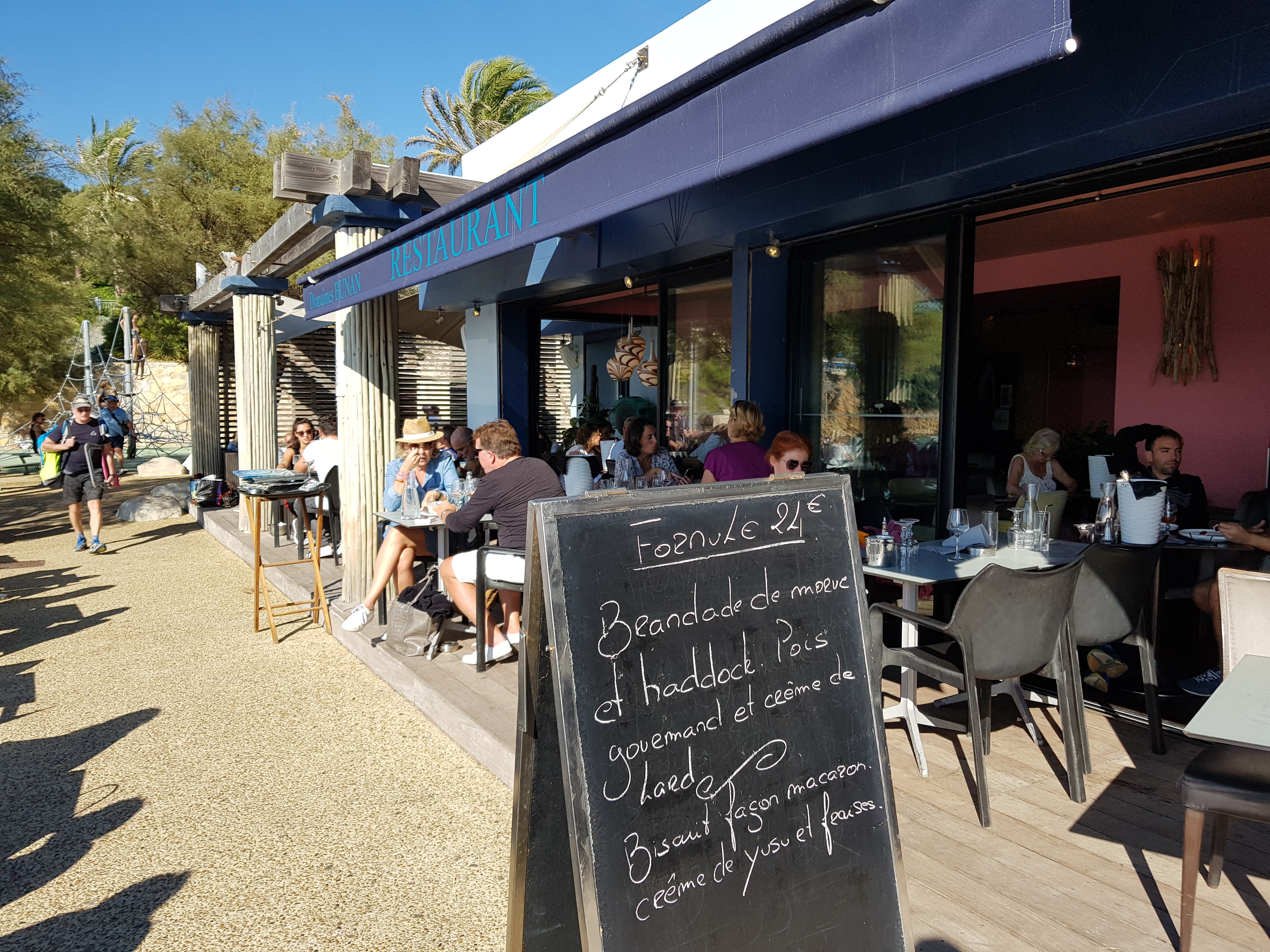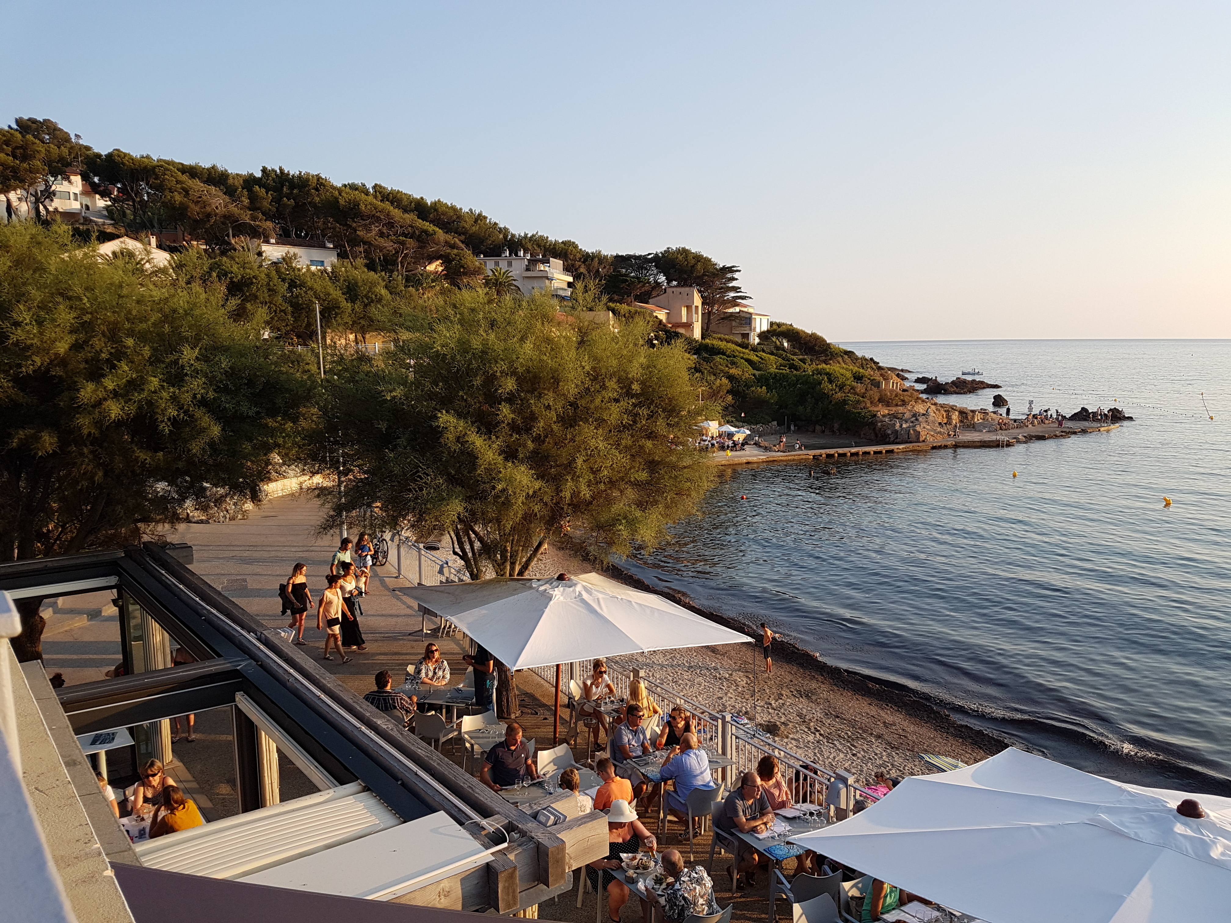 restaurants en bord de mer, impeccable, déco, utilisation de l'espace, service agréable, un calme et une vue sur la baie de portissol au top. Depuis quelques années les prix ont grimpés en flèches sans pour autant augmenter en qualité. .
