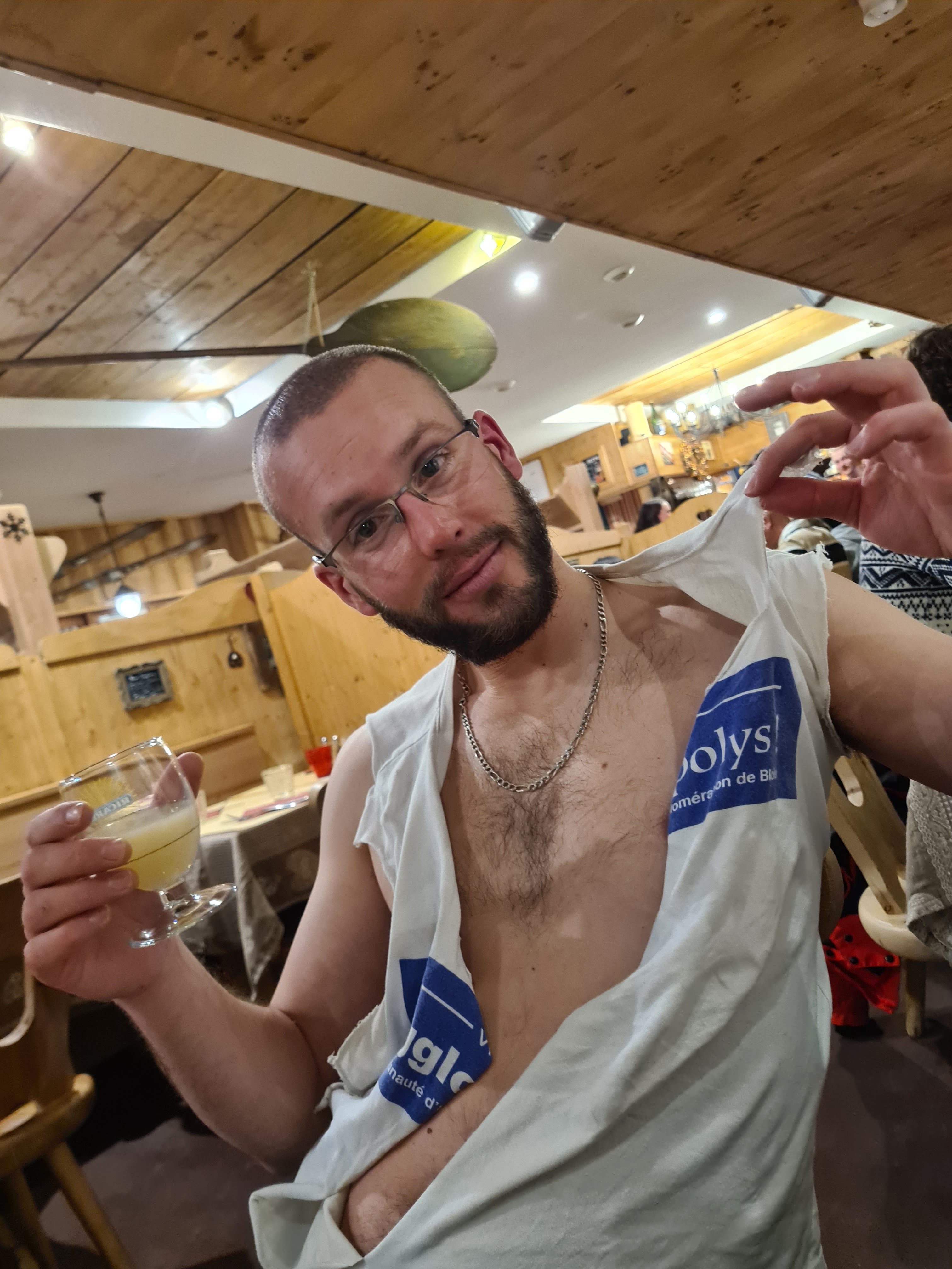 Notre cantine tous les midis quand on est sur les pistes, Aymeric, toujours le sourire