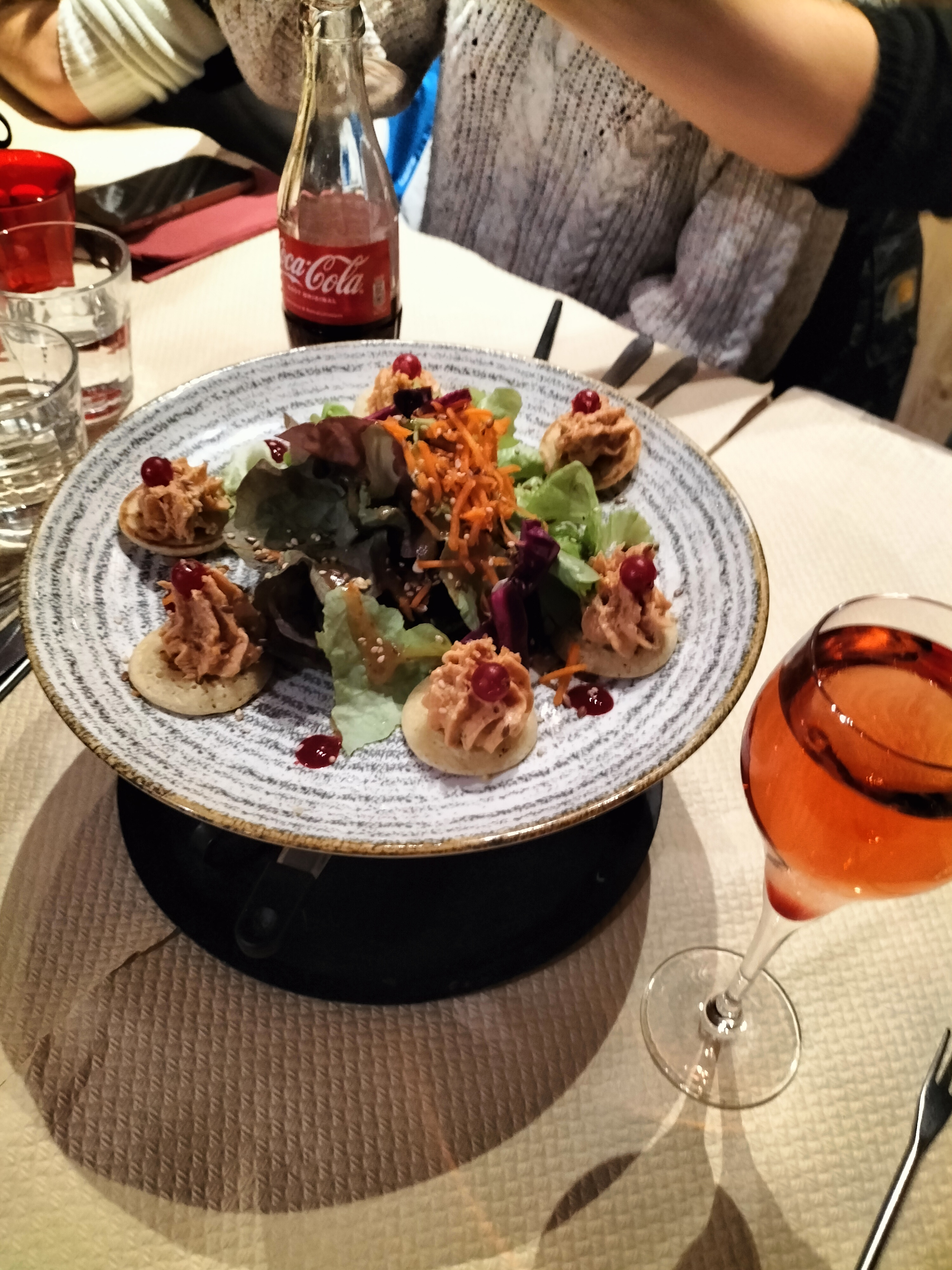 La nourriture ici est délicieuse, mais vous n'en avez pas beaucoup dans votre assiette. Si vous êtes resté toute la journée en montagne, cela ne remplira pas grand-chose. Le personnel de travail est très gentil et serviable. Le restaurant en lui-même a un côté cosy donc il est facile de rester et de profiter de sa soirée avec un verre de vin ou un café. Sauf quand c'est rempli de tables de 8 personnes avec des enfants dans les périodes d'affluence... Alors c'est comme un restaurant scolaire.