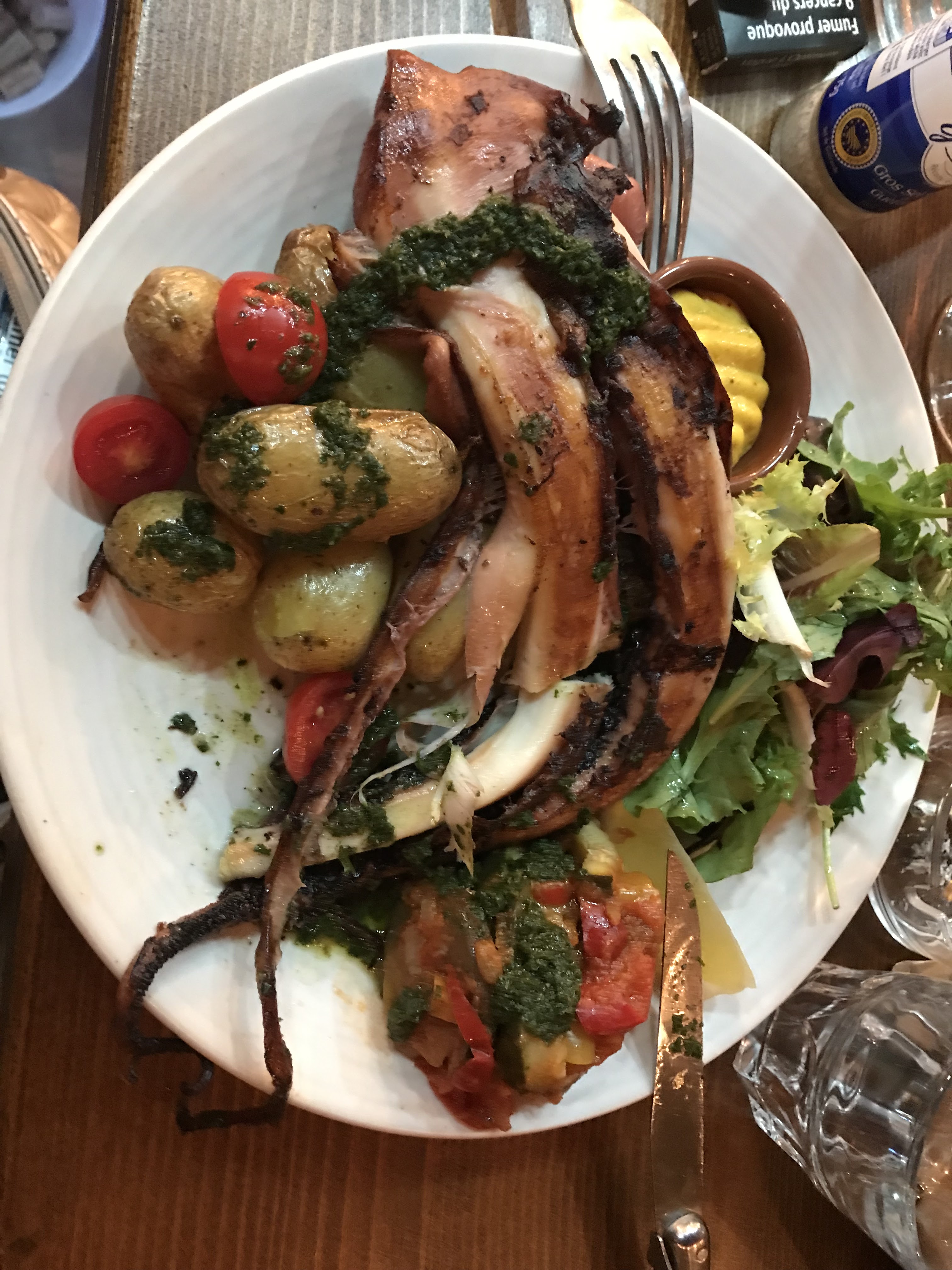Nous avons mangé des tentacules de calamars avec une rouille un régal serveur très sympa et service rapide je recommande ce lieu