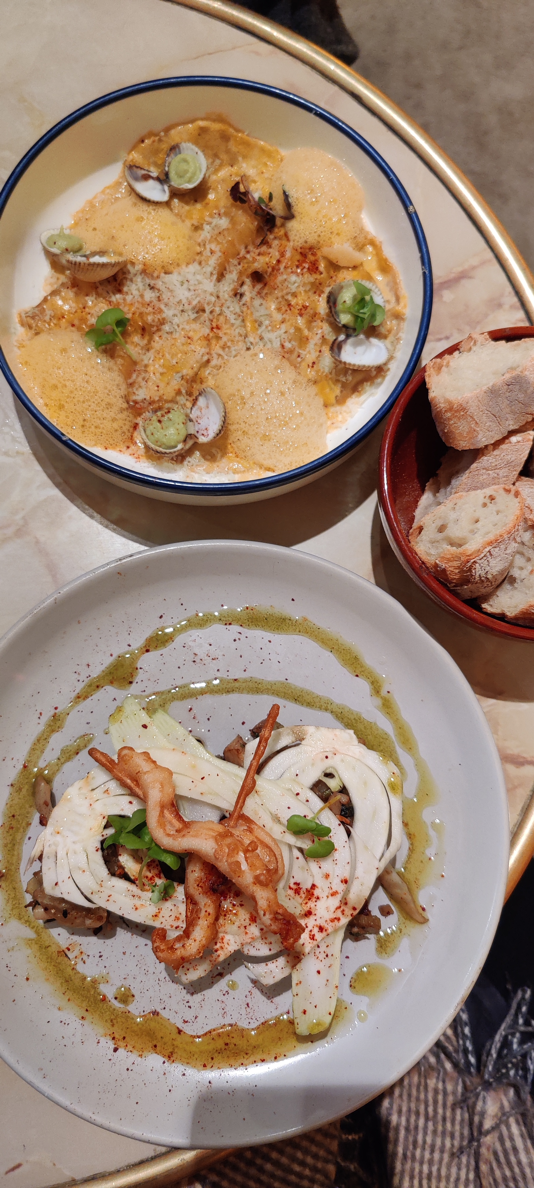 D'un point de vue touristique, il s'agit d'une expérience locale incroyable, avec un personnel amical et terre-à-terre et une cuisine délicieuse et inventive. C'est vraiment un lieu de quartier exempt de tropes touristiques, mais toujours incroyablement accueillant pour les visiteurs. Nous avons trouvé cet endroit au coin de notre Airbnb. Nous sommes arrivés 30 minutes avant leur ouverture et le gars derrière le bar était plus qu'heureux de prendre une réservation et de nous laisser choisir la table que nous voulions. La sélection de vins est bonne mais pas immense, mais ils sont tous locaux et proposent des choix que nous ne pouvions pas trouver d'où nous venons. La nourriture est une combinaison d'ingrédients frais, de saveurs profondes et de techniques expertes. Chaque assiette semble fabriquée avec soin. La bisque de palourdes était légère et pleine de saveurs de fruits de mer. Les raviolis aux palourdes étaient délicats et chargés d'umami. La star du spectacle est le poulpe de deux manières: un tentacule de poulpe braisé puis sauté et un crudo, tous deux tendres et savoureux. La terrasse est petite, avec environ 8 tables, mais c'est un cadre idéal pour un dîner matinal avec vue dégagée sur une rue piétonne remplie d'enfants qui rient et jouent. Il faudrait être mort intérieurement pour ne pas aimer cet endroit. Allez-y maintenant, allez-y souvent, soutenez le local.