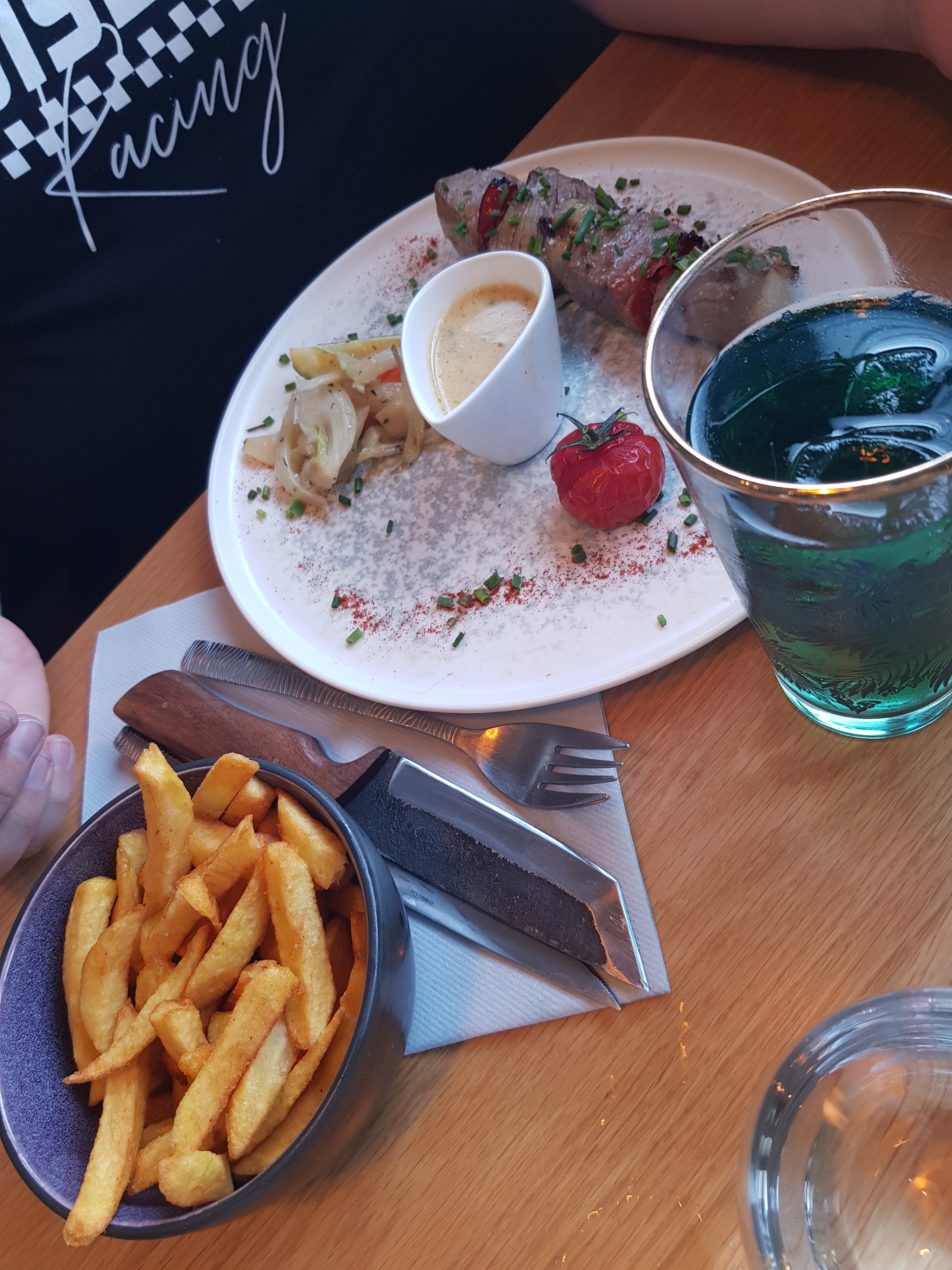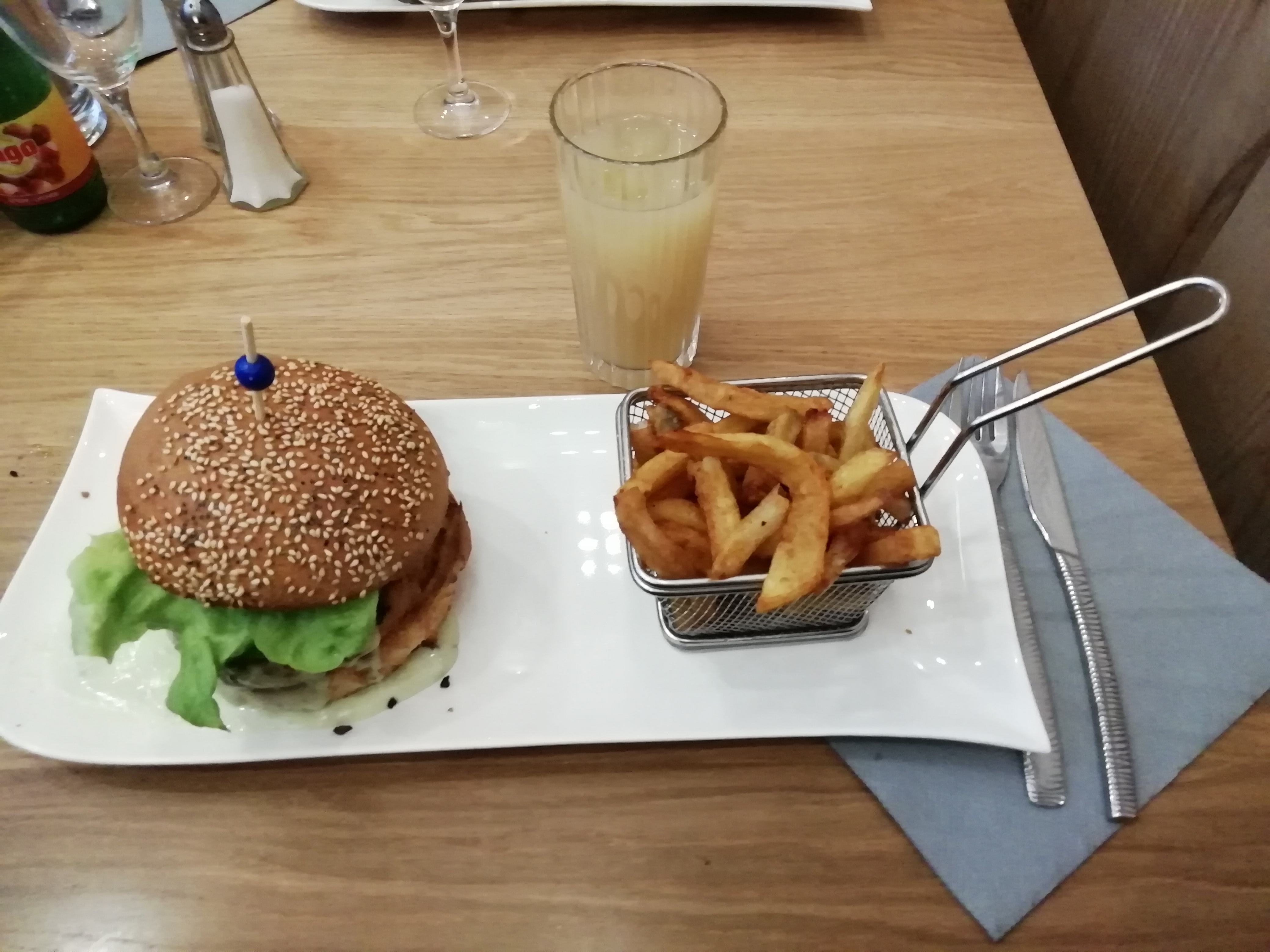 Menu à 25 euros très décue la viande était très nerveuse et les frites trop cuites..le menu à 25 euros ne l'ai vaut pas trop cher par rapport au produits proposės. Quand à l'amburger de mon mari le pain rond était sec par contre la viande était bonne dommage...Non je reviendrai pas 😠.