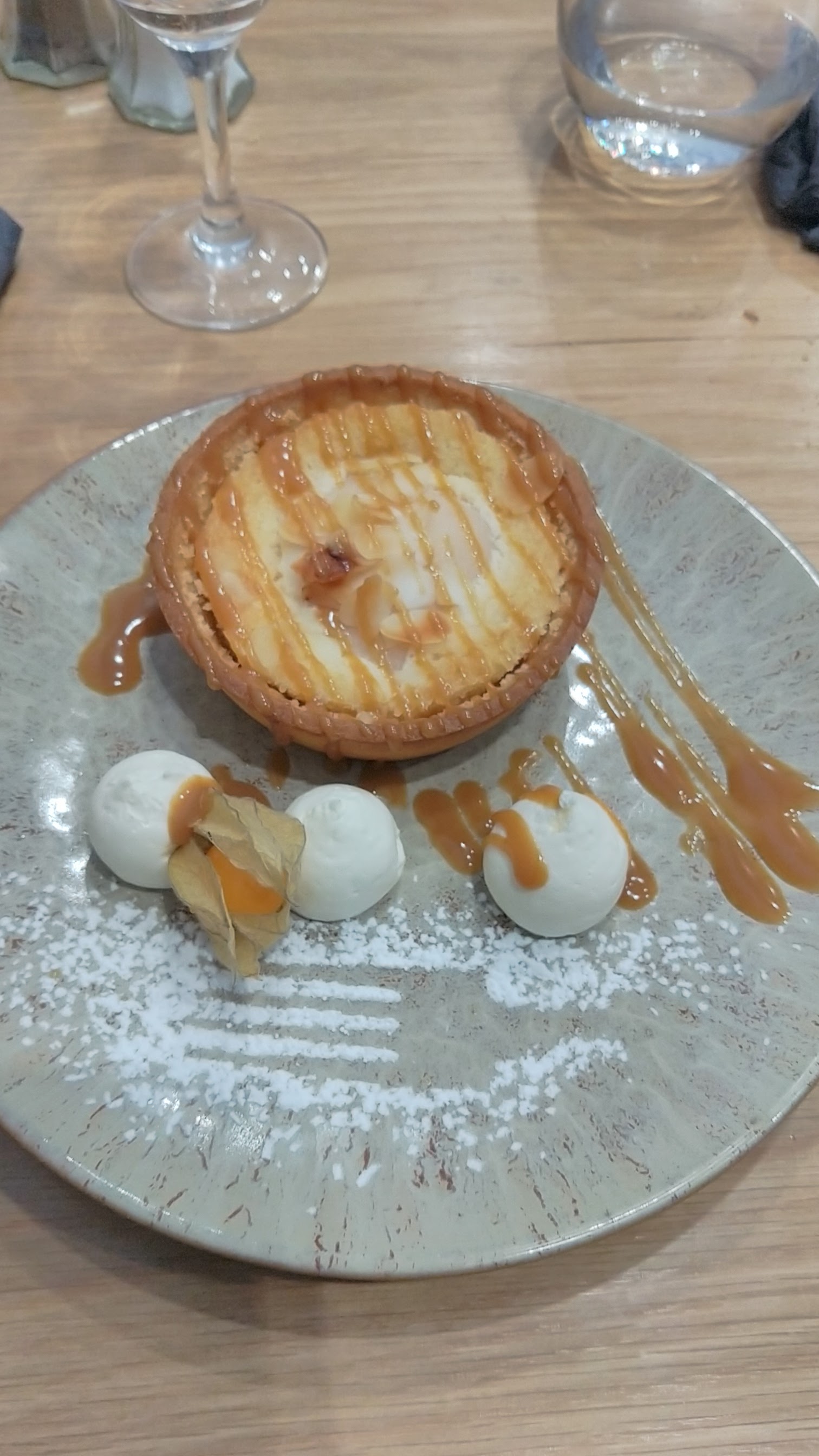 Un excellent repas avec une bonne pâtisserie à la fin, très bien.