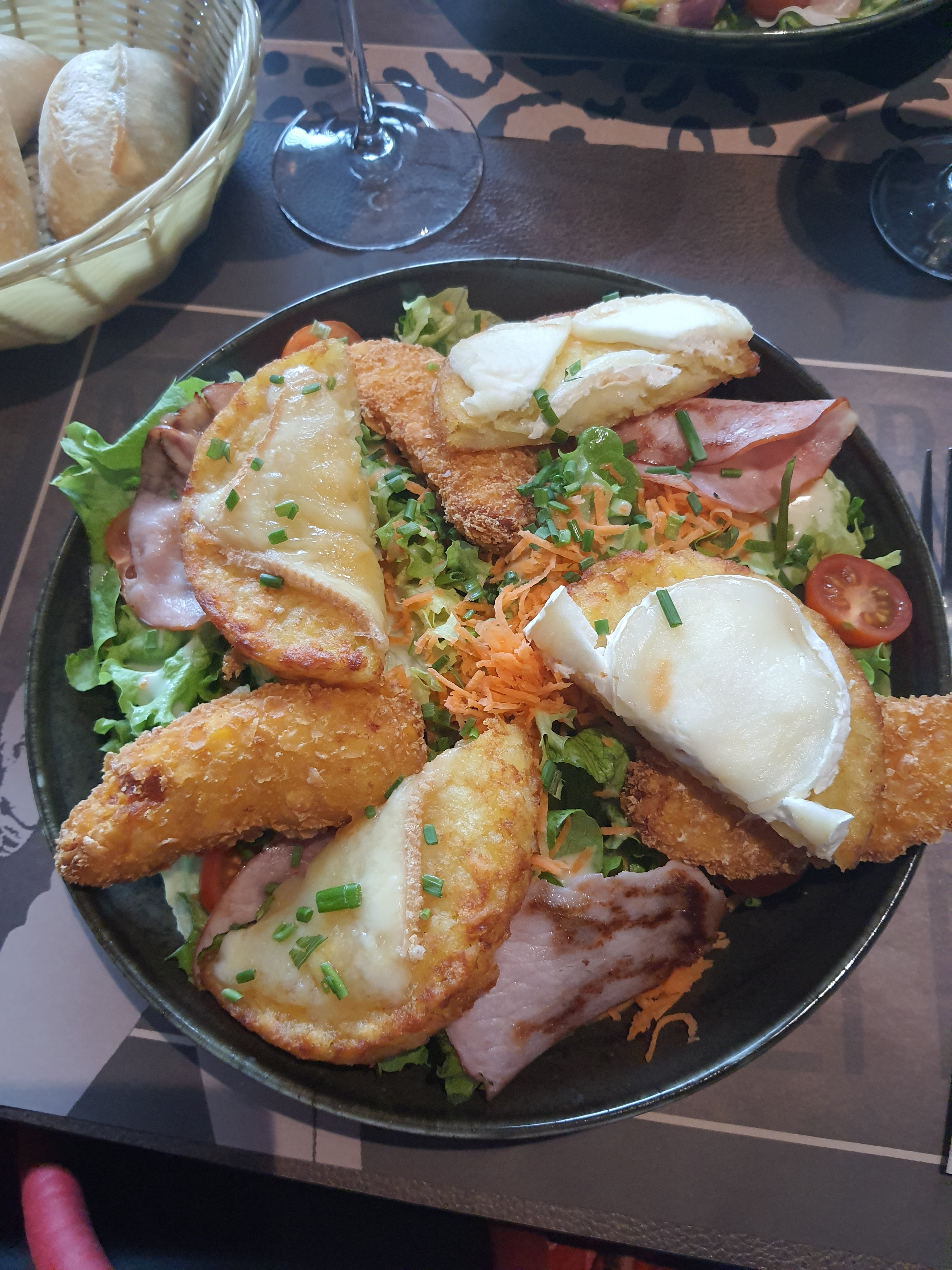 Super expérience, resto sympa excellent pas pour ma part Camenbert grillé accompagnait d un pomme de terre au four et charcuterie