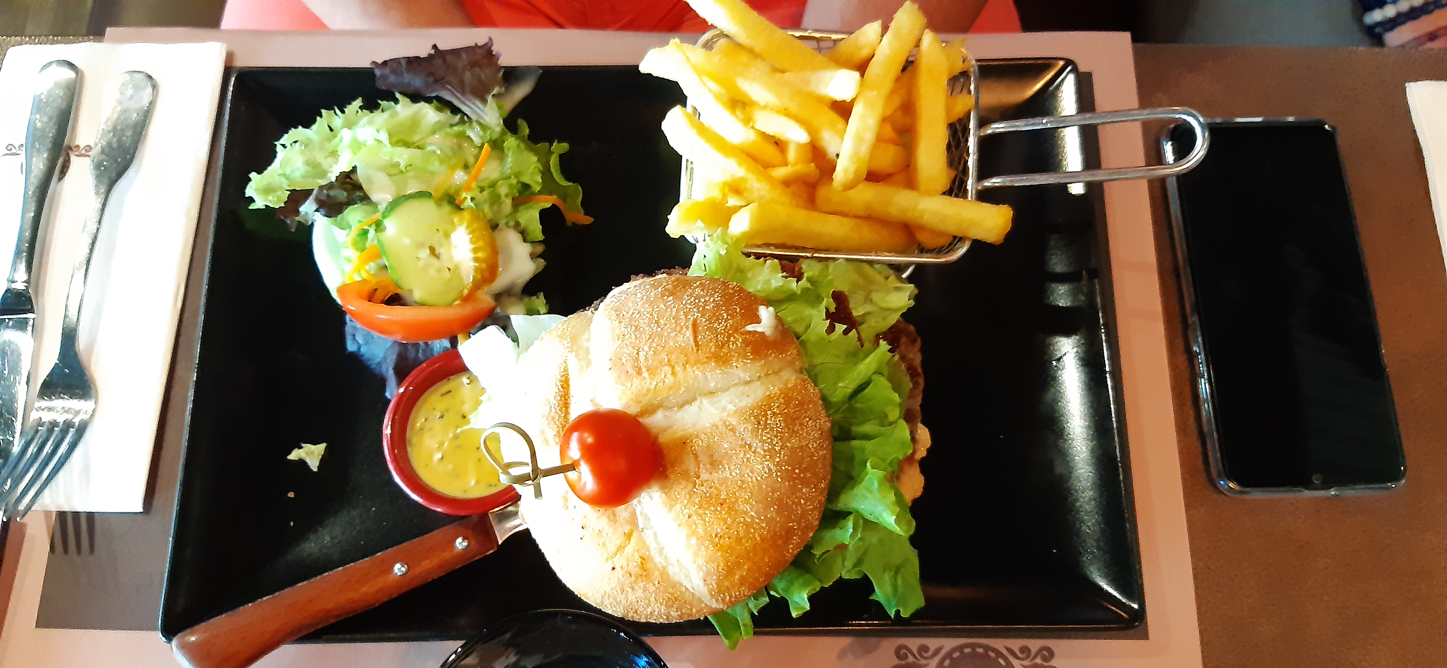 Si vous y allez pour manger un hamburger avec une viande saignante ou bleue, passez votre chemin car ils peuvent pas vous satisfaire comme c'est du steak haché surgelé... et quand vous leur dites, pas de soucis ils s'excusent et vous proposent de vous refaire un autre plat mais vos convives sont entrain de manger et vous allez vous retrouvez à manger seule après tout le monde donc je décline. Mais je prends quand même un dessert. Et quand la note arrive, à préciser que j'ai juste mangé un quart de mon hamburger, il n'y a aucun geste pour le désagrément, même pas un café offert.