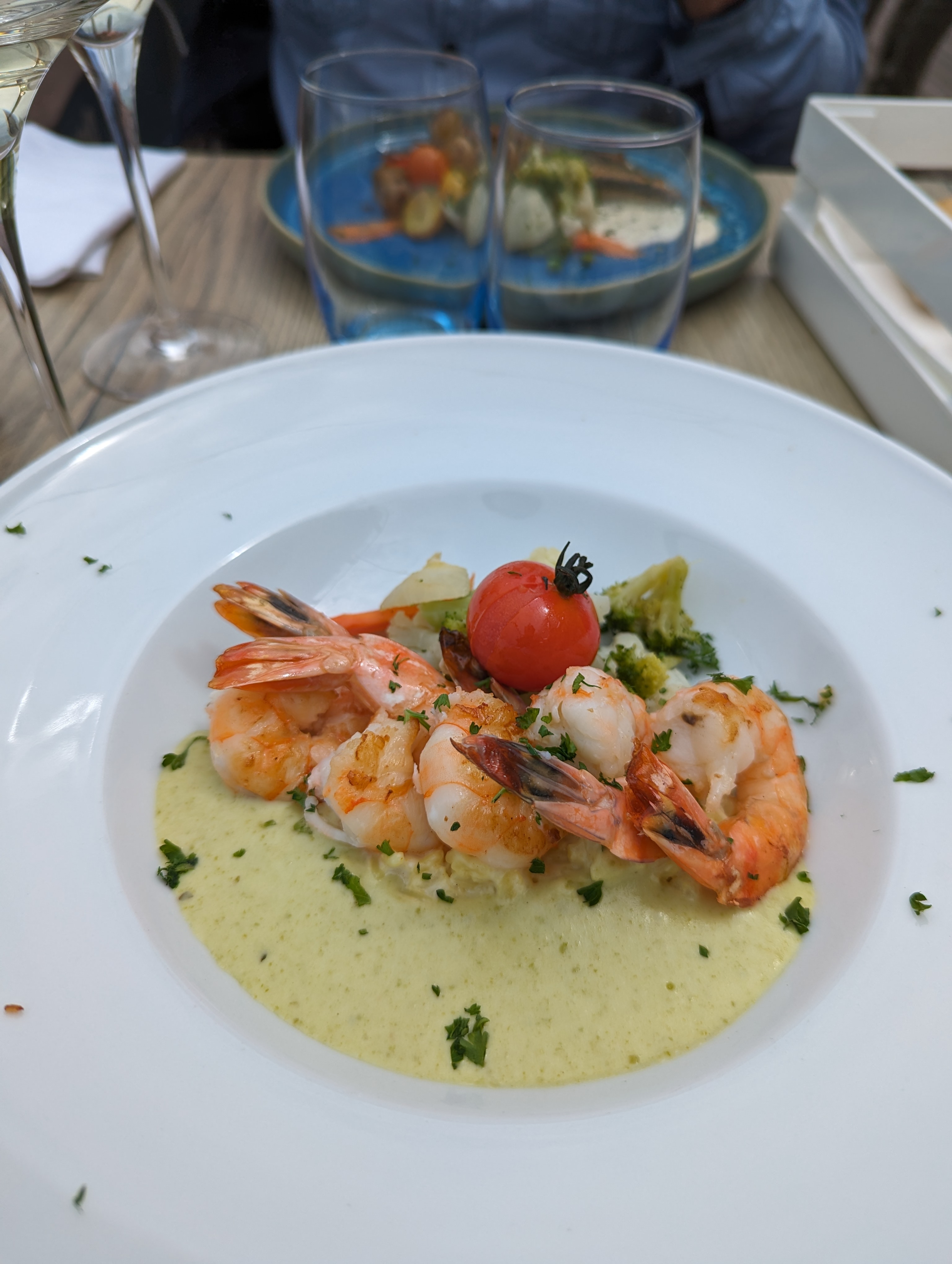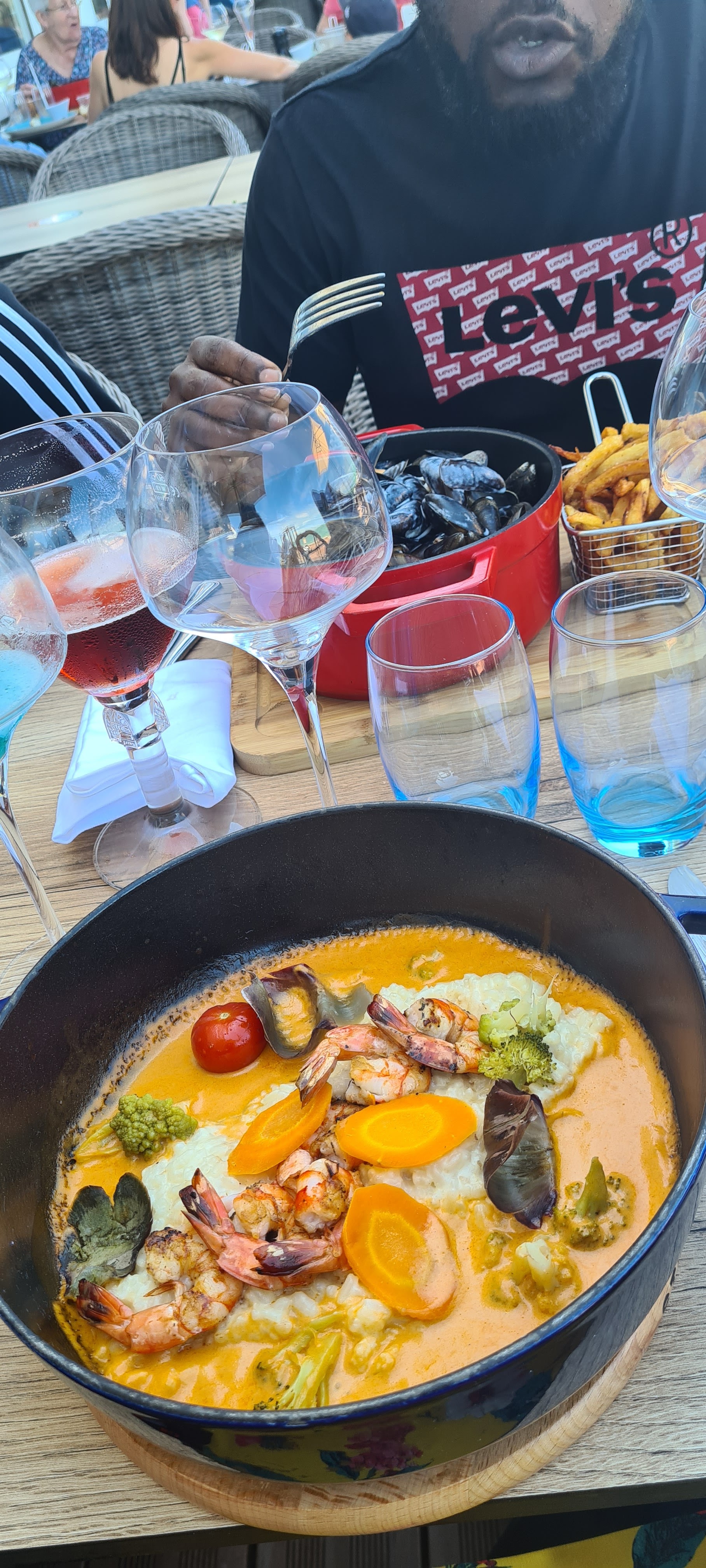 Très bel emplacement Très jolie vue Personnel sympathique On aurait seulement aimé que le risotto aux gambas ne soit pas avec des crevettes !!!!