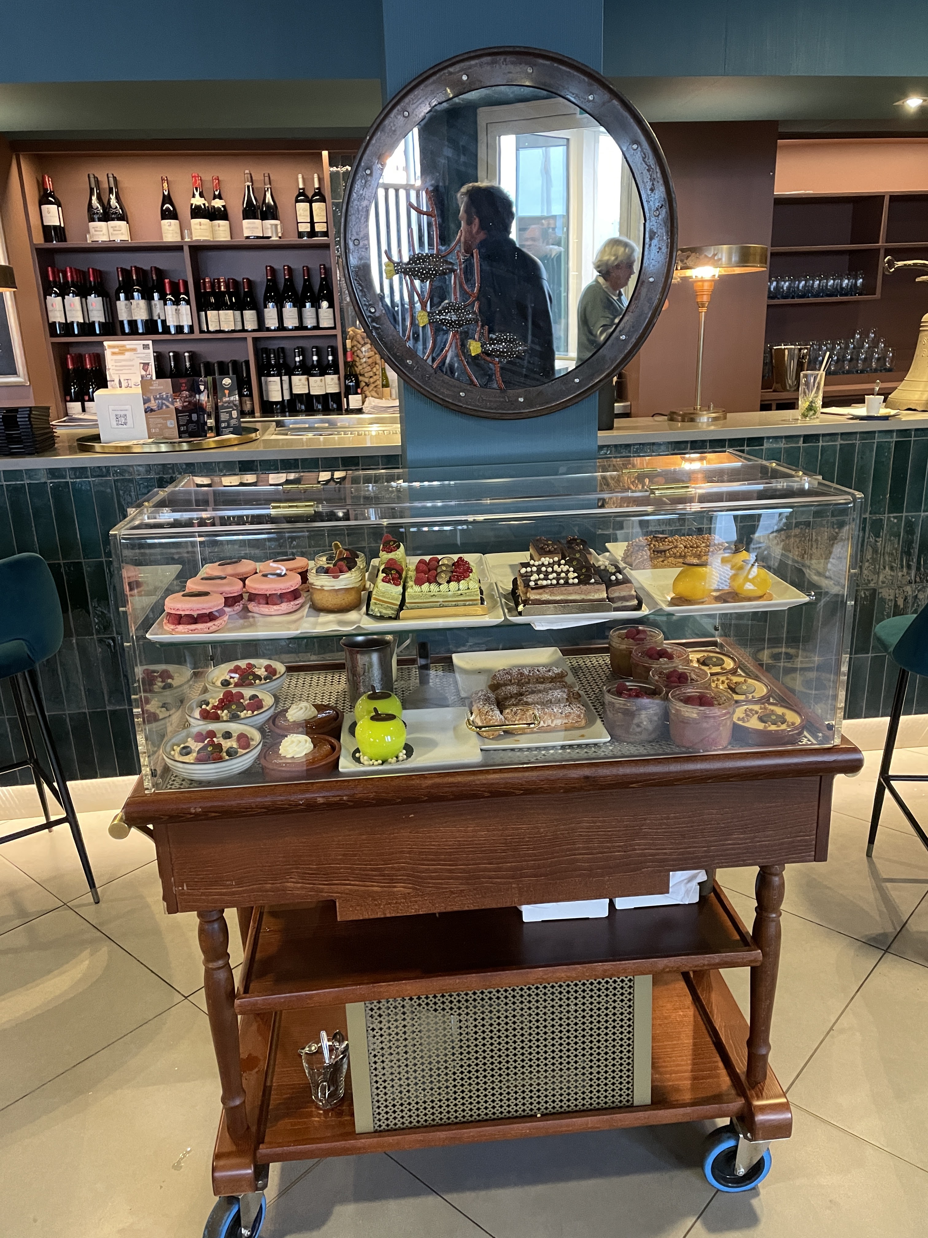 Bon accueil on a pu déjeuner en terrasse extérieure, les déserts maison sont très bon et présentés sur un chariot qui permet de choisir. A conseiller, service de table impeccable