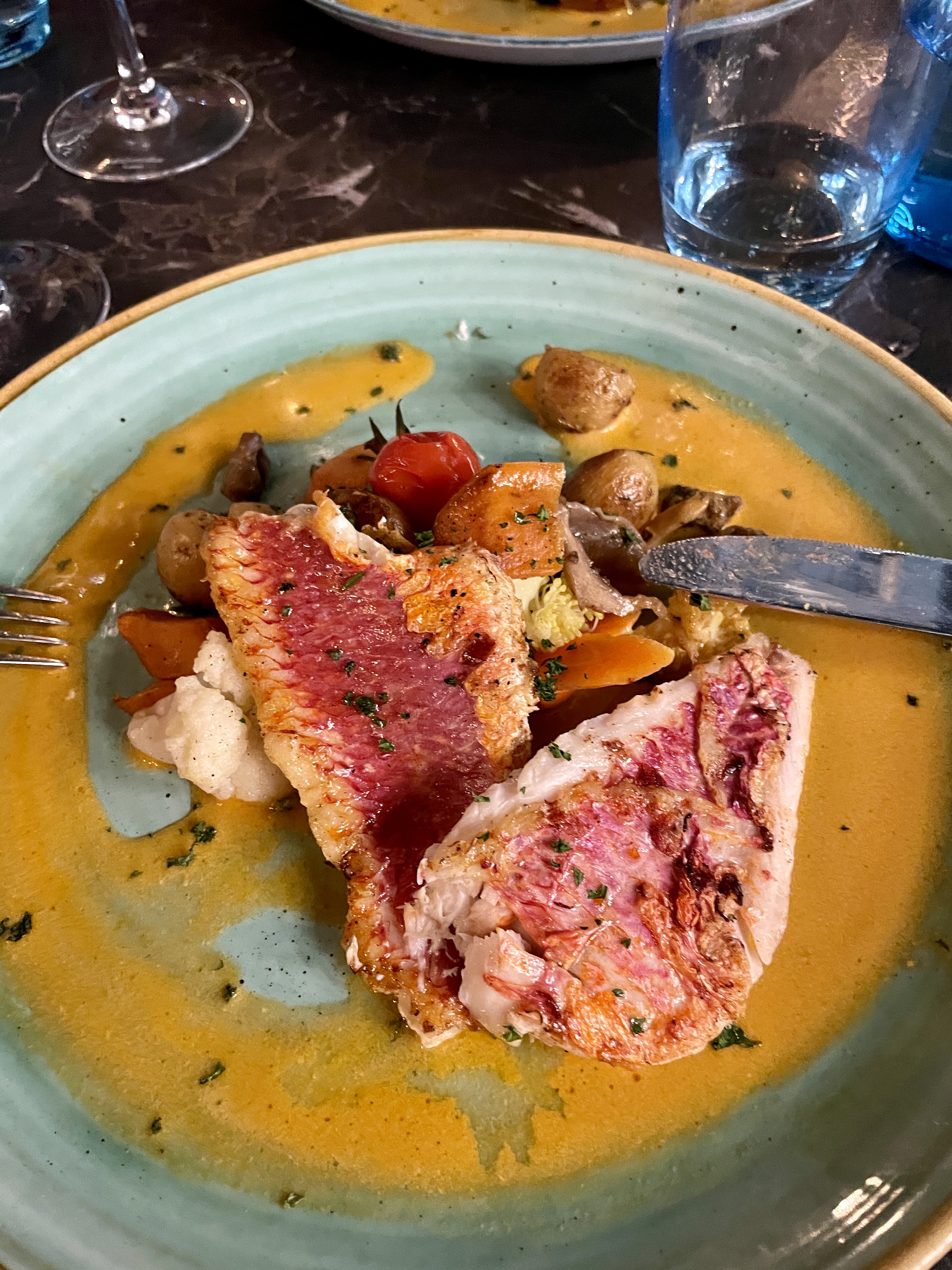 Poisson très frais et copieux 😋 (bar sauvage entier, en suggestion du jour). Prestations de qualité tout au long de l’année. Excellente attention de l’équipe, malgré l’affluence touristique à cette période.