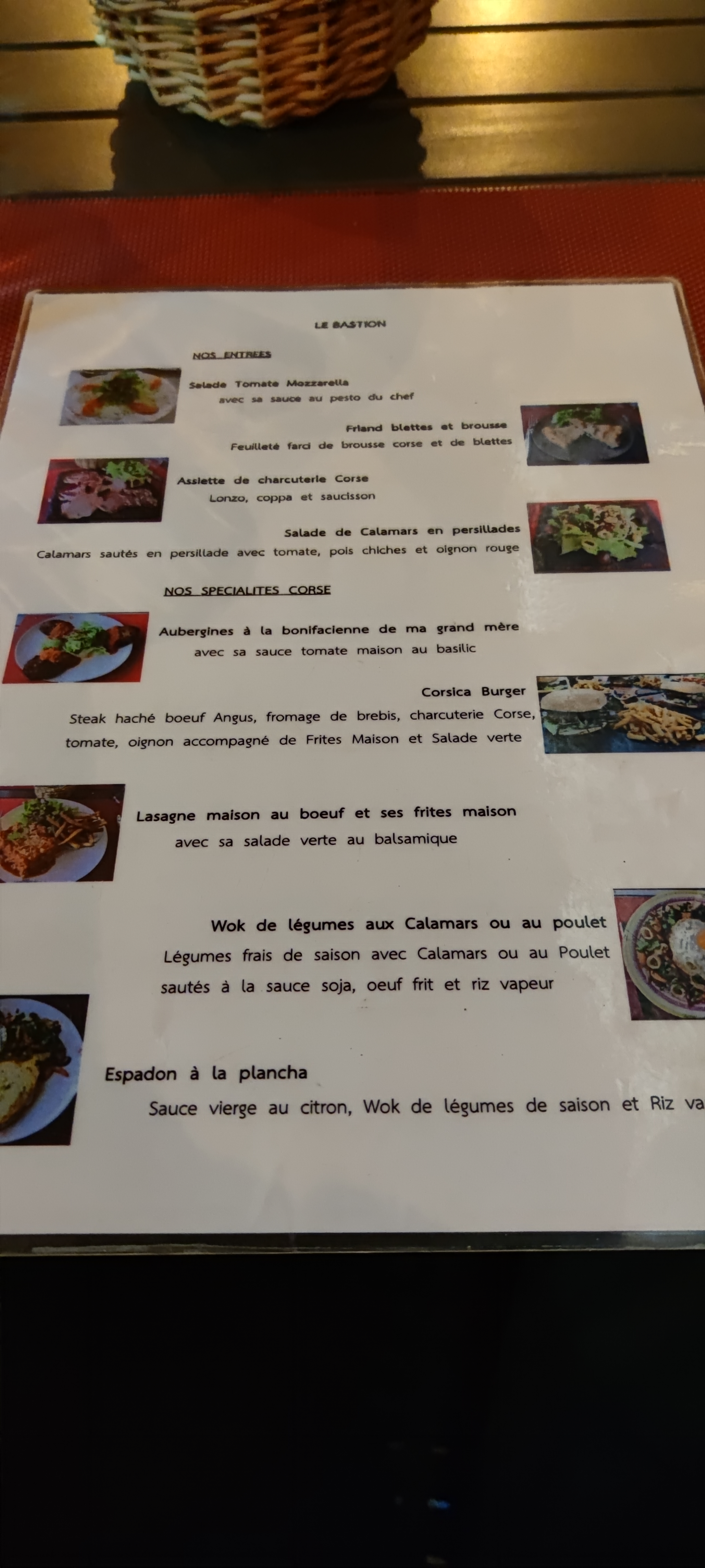 Nous avons dîné deux fois au Bastion. Le restaurateur est très accueillant 🙏il vous propose des petits plats (recette de sa grande mère) un vrai délice. Les prix sont clairement indiqués sur les ardoises aux murs et en plus des cartes avec la photo des plats et la composition de ceux-ci. Une équipe exceptionnelle qui fait en sorte de servir ses clients sans attente et avec le sourire 🙏 Bon courage et belle saison à vous. Willy et Véronique