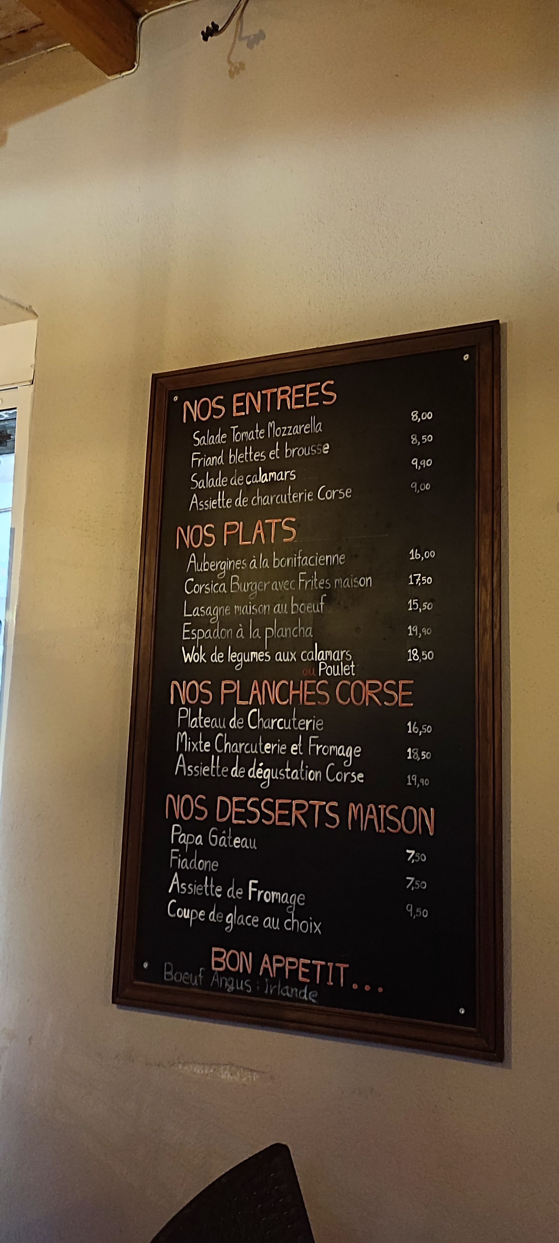 Menu enfant à 8,90€ très bon, tout est fait maison, y compris les frites. Thomas est adorable le service est impeccable et le burger corse très bon! Je recommande vivement