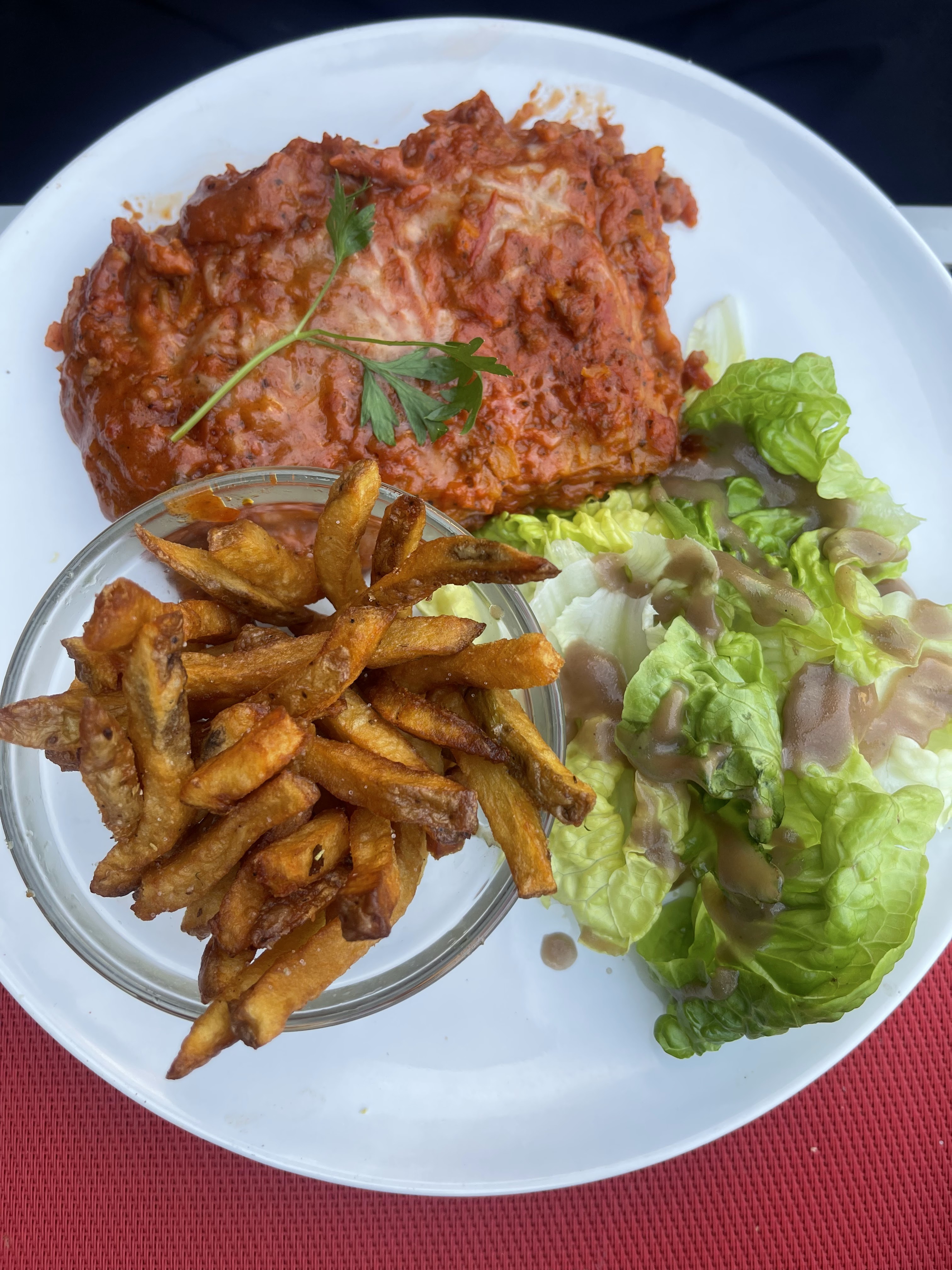 Belle découverte d'un petit restaurant familial. L'accueil et le service est impeccable, le personnel est au petit soin du client très professionnel mais aussi très simple, tout ce que l'on aime. J'ai commandé une lasagne maison accompagnée de frites maisons et salade verte, je ne pourrais pas vous décrire ce que j'ai ressenti à ma première bouché tellement ça a explosé de saveurs dans mes papilles 🤩juste exquis. Il faut savoir que c'est la recette de la maman du patron. On s'est régalé. Niveau prix c'est bien plus que correct, Il ne faut pas oublier que ce sont des produits frais et locaux . Je recommande à 100% ce petit restaurant familial.
