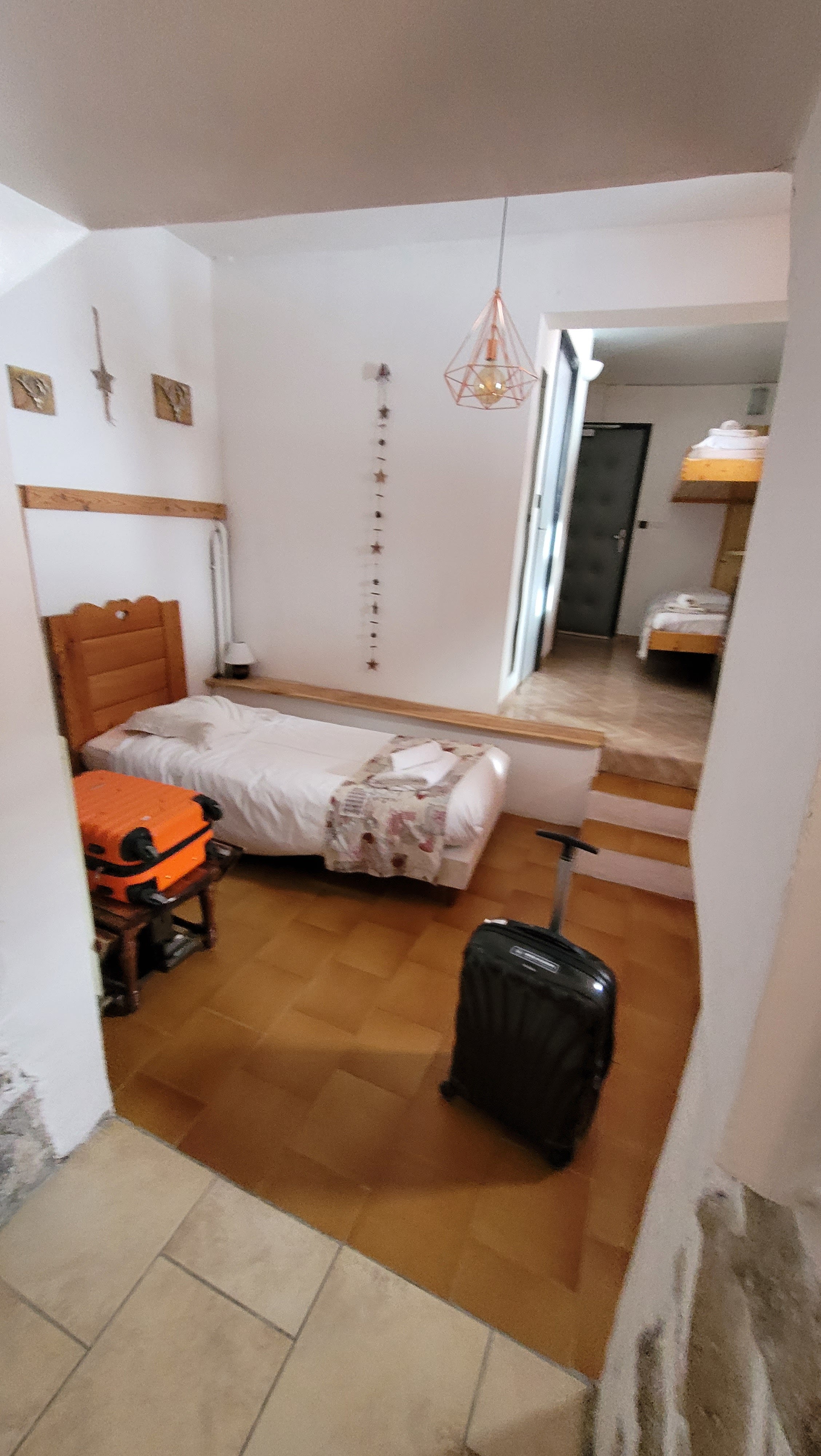 Pas d'accès en voiture, uniquement en passant par 2 pistes ! Essayez d'éviter un snowboarder avec une jeune famille et des bagages à la remorque. Pas de parking à l'hôtel, uniquement dans le parking public qui est complet le week-end. Pas de repas enfants, 22 euros le dîner et 12 euros le petit déjeuner pour un enfant de 5 ans ! Impossible de dormir, comme on peut l'entendre des deux côtés. Le tuyau d'évacuation des toilettes des chambres ci-dessus passait par notre armoire, ce qui n'était pas une bonne idée et était assez surprenant à 23 heures, 2 heures et 6 heures du matin pour entendre une cascade. Lavabo bouché, douche cassée, baignoire et toilettes sales. Le tout pour un prix incroyable de 350 euros la nuit. (200 pour la chambre, 100 pour le dîner et 50 pour le petit-déjeuner)
