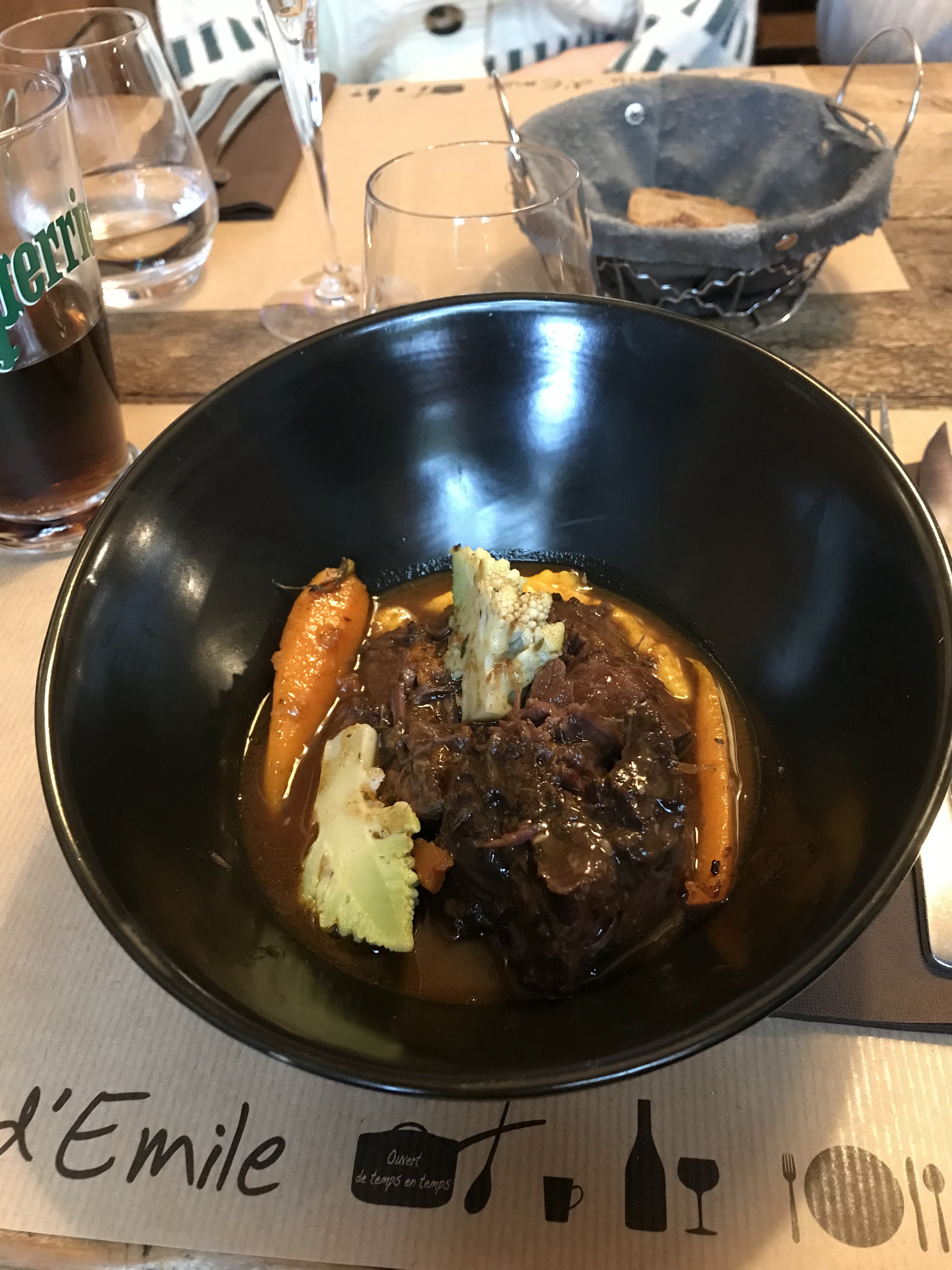 Franchement pas déçu : acceuil sympa , une viande savoureuse et parfaitement bien cuite et un chou à la pistache en dessert excellent.