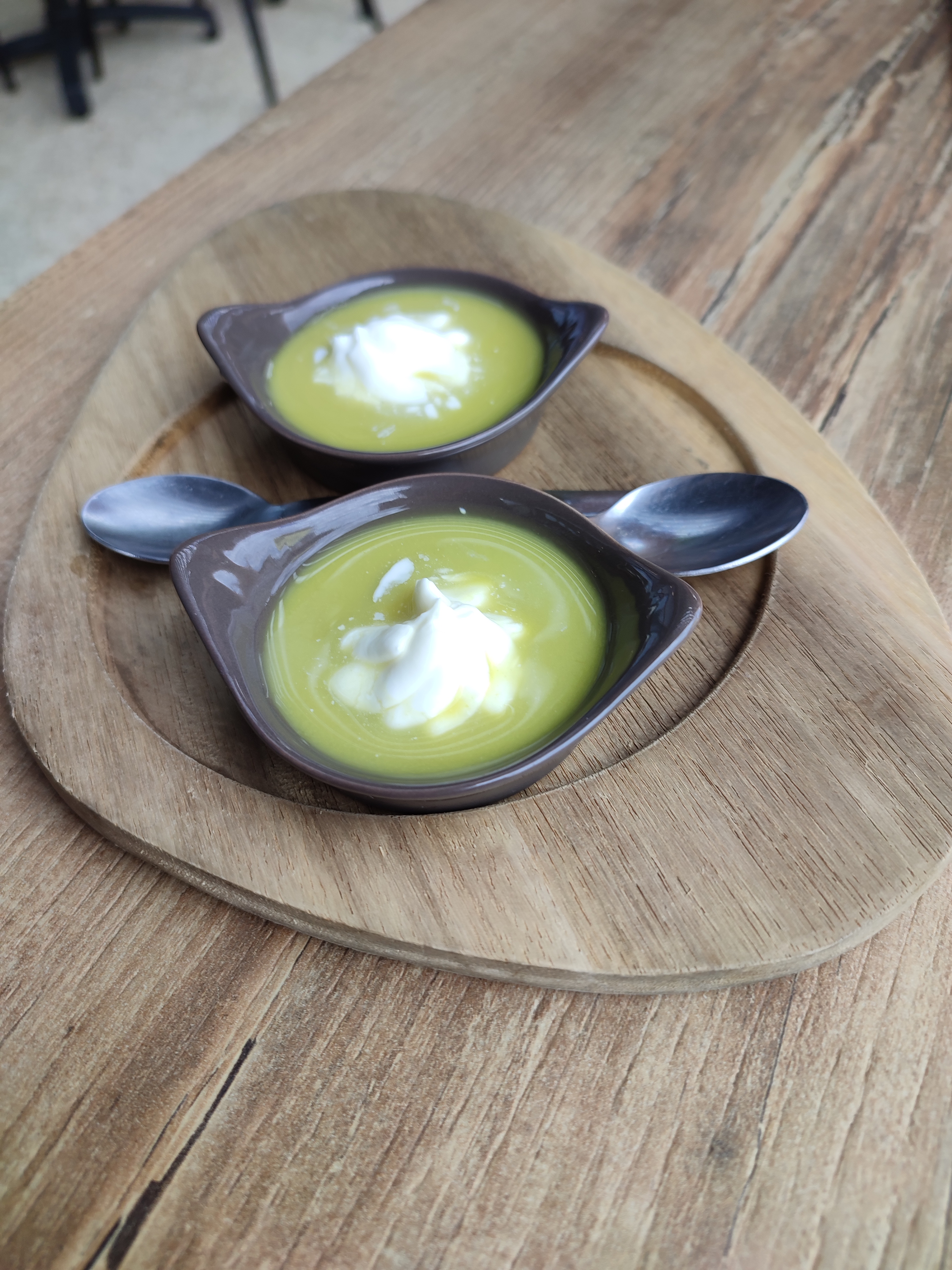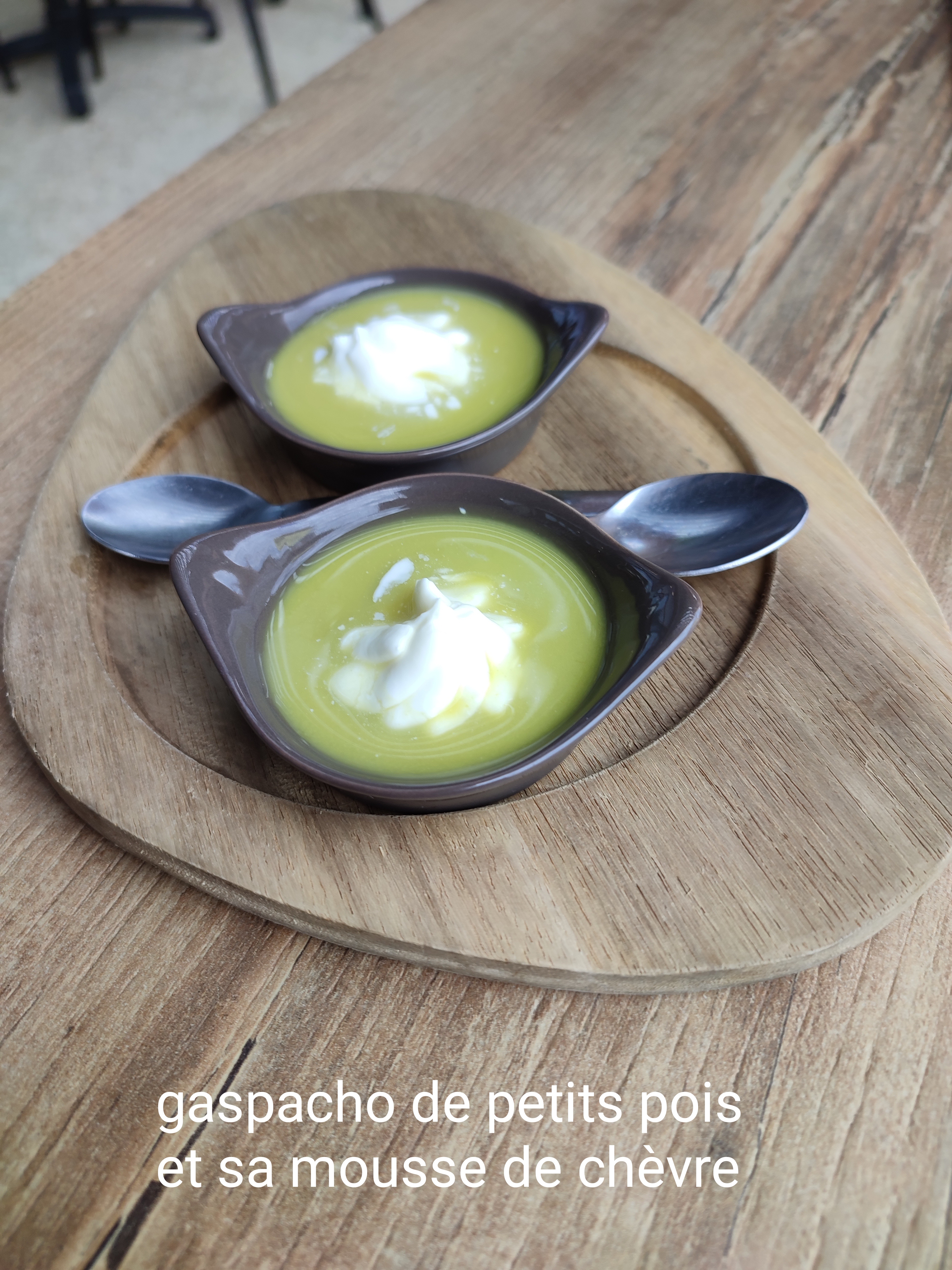 Jolie terrasse, un repas excellent avec un petit gaspacho bien frais offert par la maison, avec cette canicule cela fait très plaisir ! Rien à redire