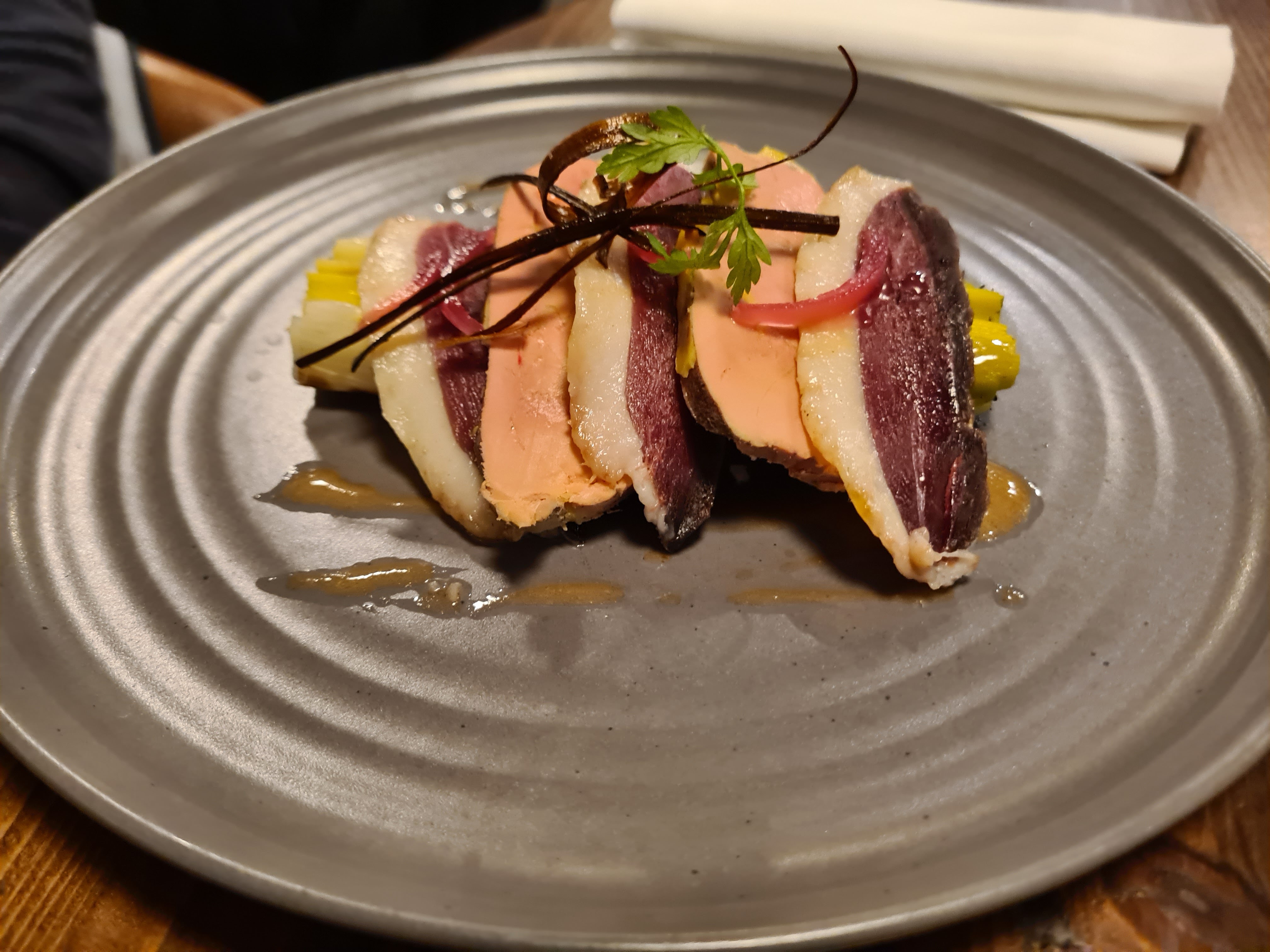 Très bonne cuisine. Légèrement déçu par le foie gras qui n'avait pas pris toute la force du poivre mais c'est histoire de chipoter. Un petit beurre avec l'excellente charcuterie serait plus.