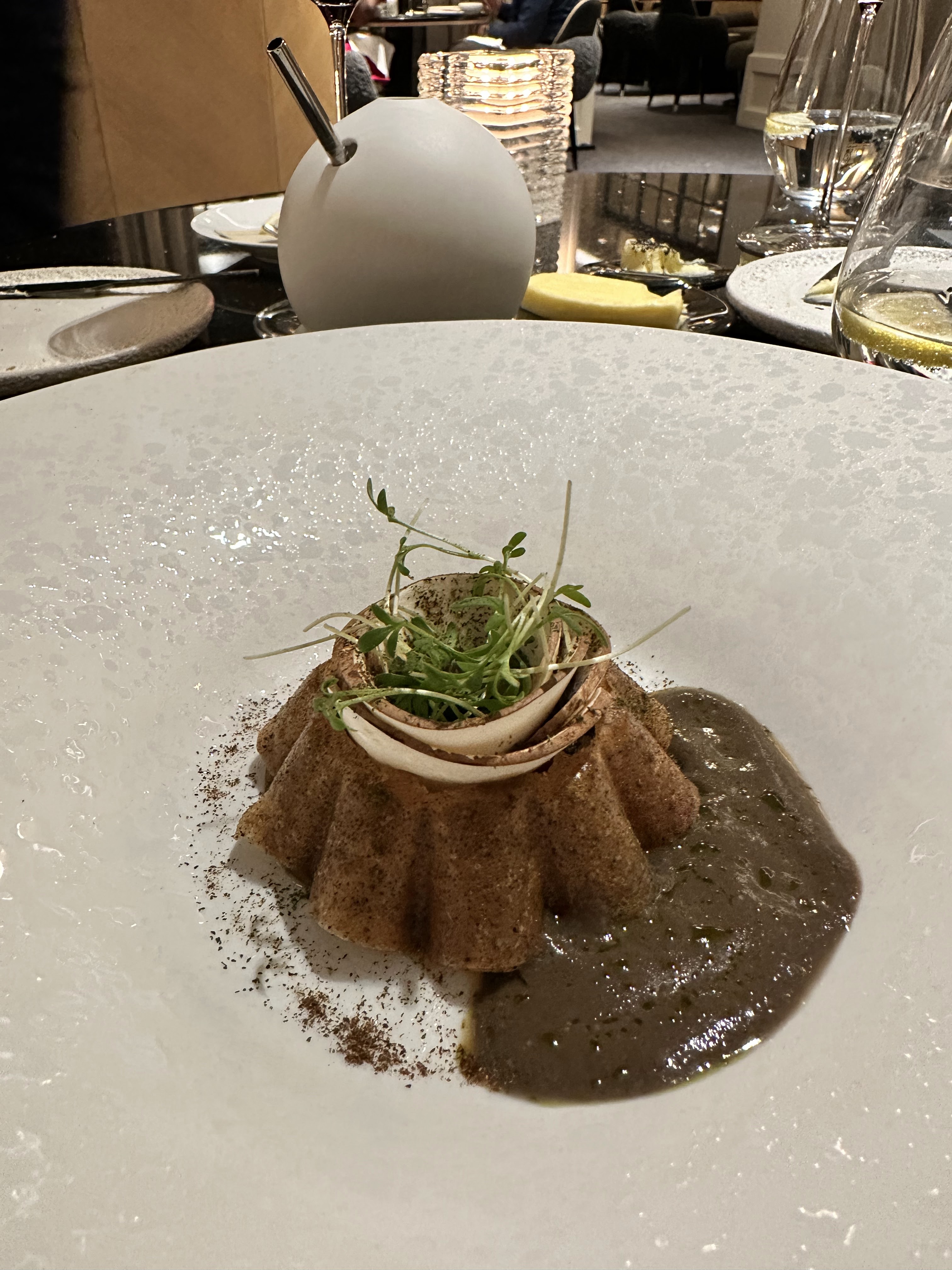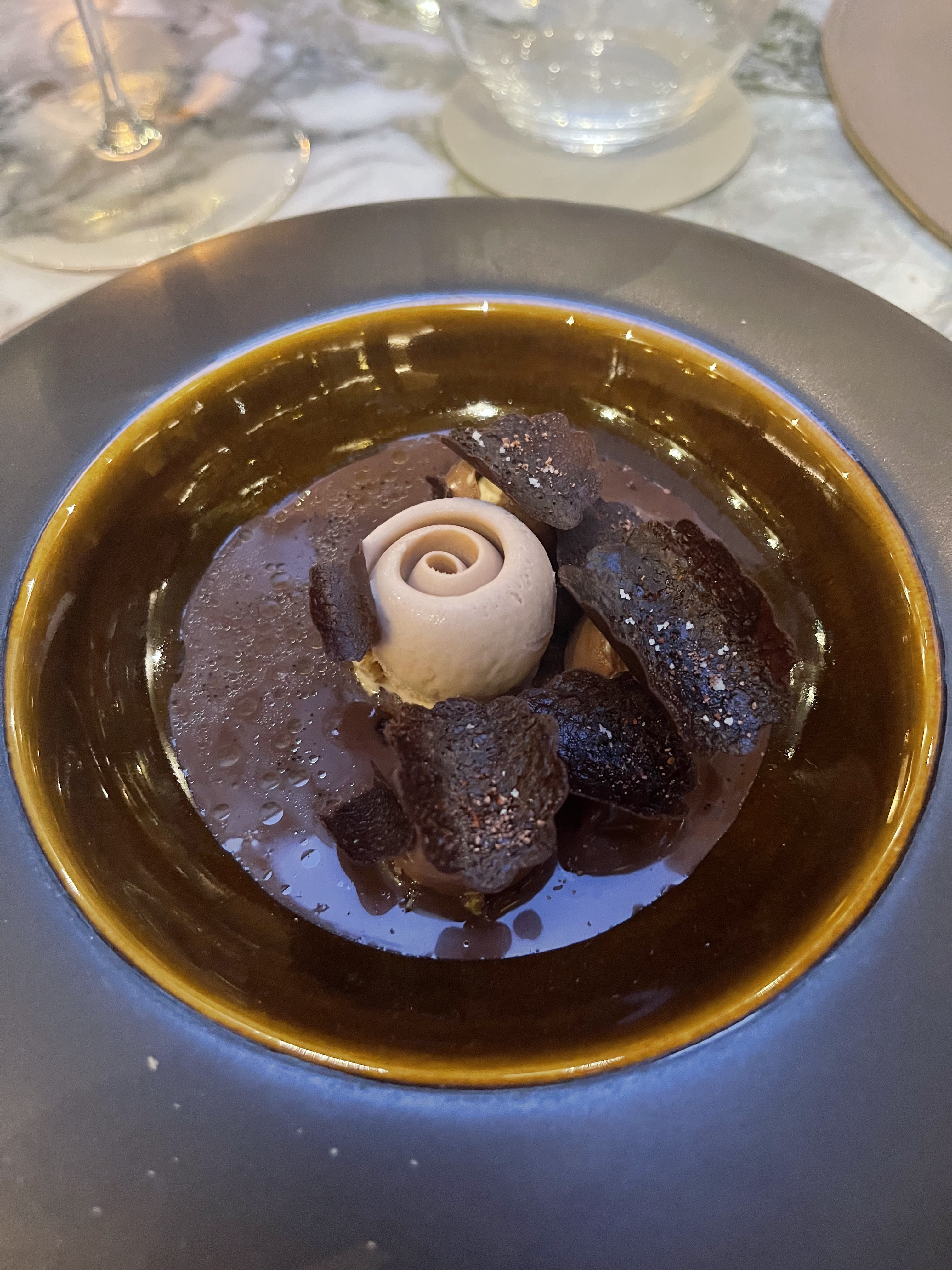 Expérience incroyable, le flan au chocolat est vraiment une belle réussite, un régal pour les amateurs de chocolat, le cadre est féerique, c'est généreux, j'ai un petit peu moins aimé le côté salé.