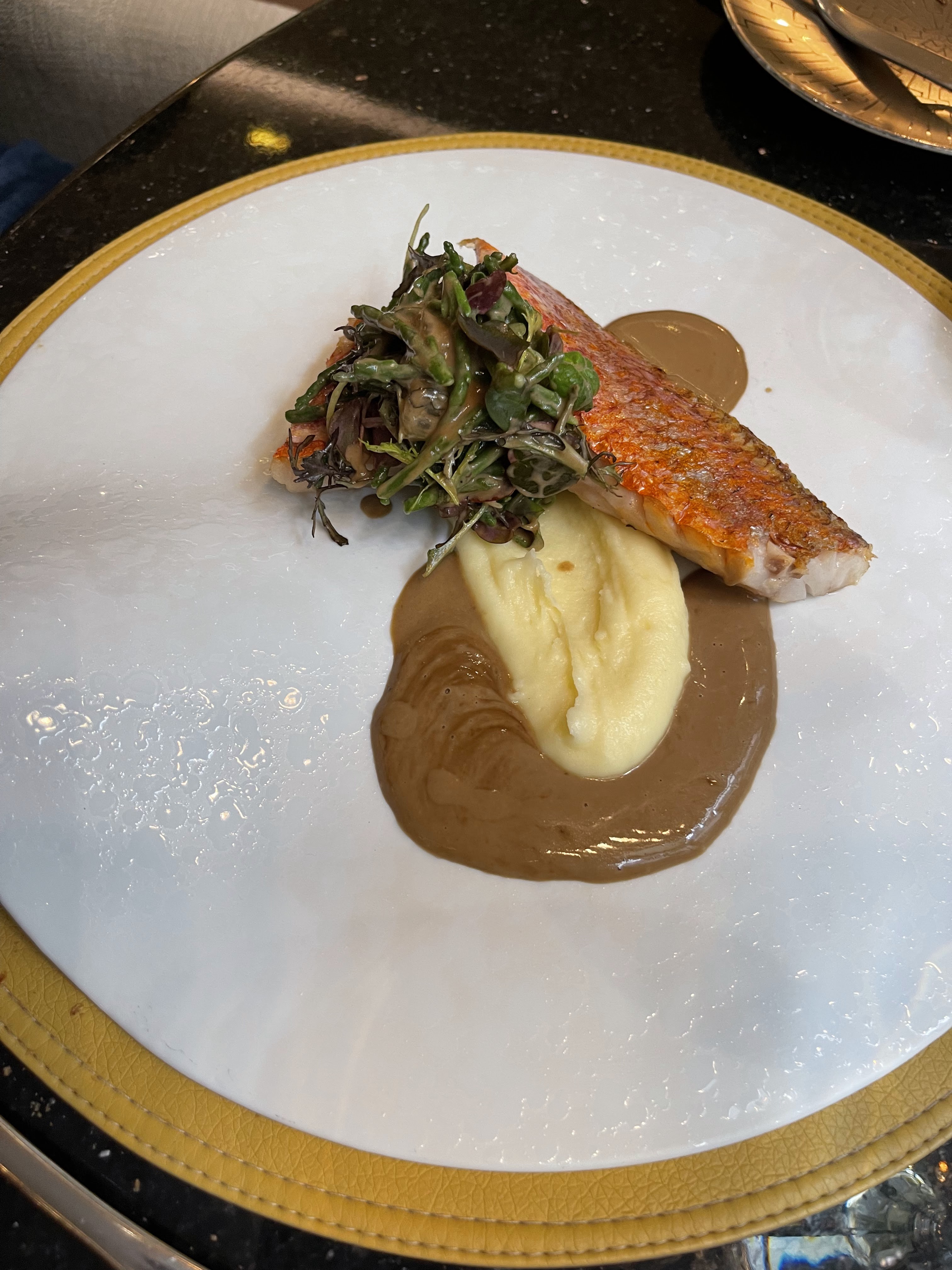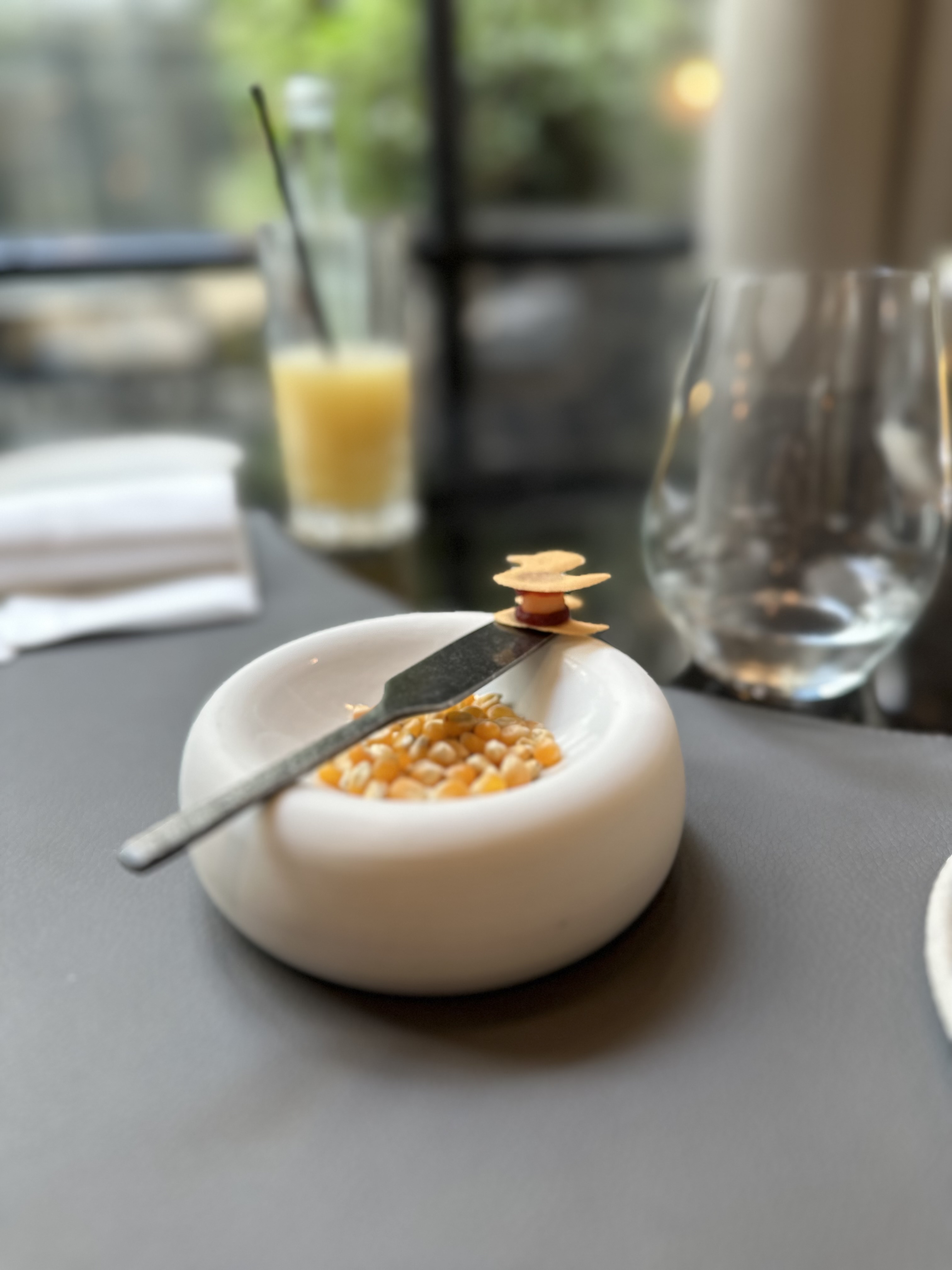 Excellente nourriture et service. J'ai essayé le menu dégustation qui comprenait 6 plats et varie selon la saison, vous ne verrez donc pas les plats individuels sur le menu. Le menu de dégustation propose des plats comprenant du ris de veau frit, du crabe au caviar et un plat d'artichauts, pour n'en nommer que quelques-uns. L'hôtel où se trouve le restaurant est très haut de gamme et ils ont un code vestimentaire car on m'a conseillé de ne pas porter de short ni de tongs mais les jeans et les baskets sont acceptés.
