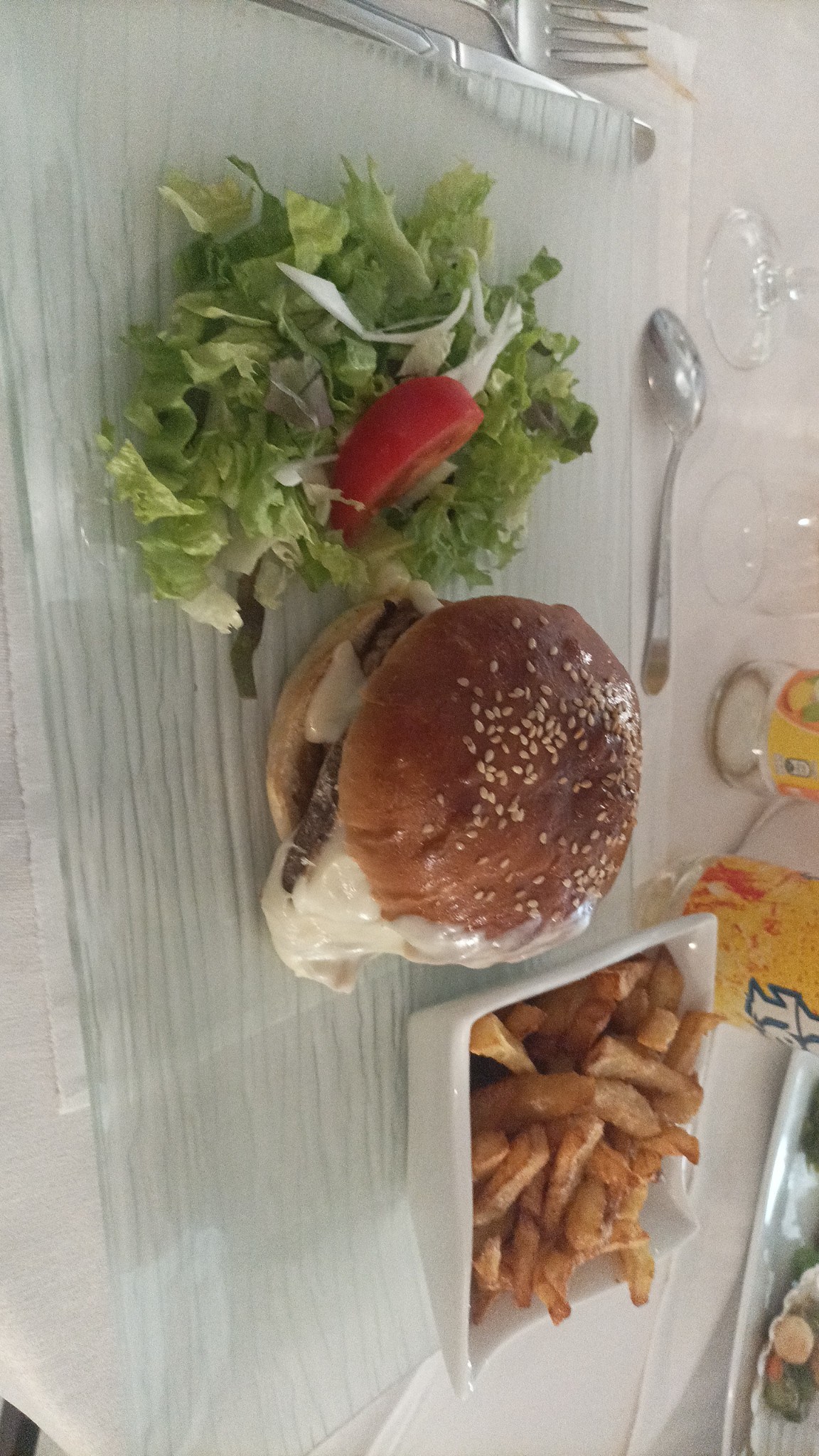 Repas de dimanche midi. Entrées: escargots excellent et St Jacques avec quelques asperges de saison, top. Plat principal. Joues de lottes et seiche en sauce crevettes, très bon mais l accompagnement de frites pas accordé avec le plat mais elles sont cependant très bonnes. Pour le vin minervois blanc, j aurais préféré qu'on m'ouvre la bouteille devant moi.... Mais il était bon et accompagnait bien les poissons Test du baudi burger par ma fille: J invite à tester, fait avec des produits locaux garantis, c est goutu, une tranche de tomate ou légume serait un plus. Le fromage du Rodier fondu et la viande des cochons laineux du rialet ça a du goût, allez y, je recommande.