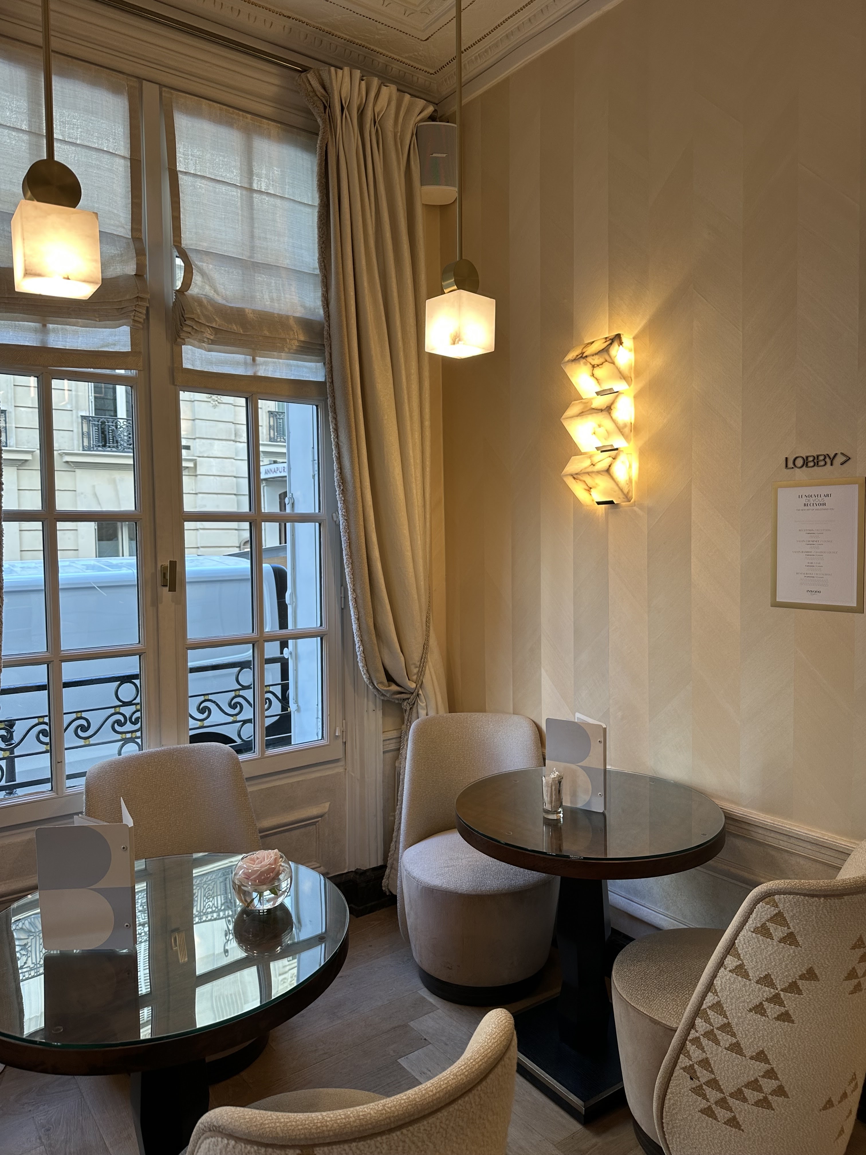 Service soigné et impeccable. La carte correcte et l'espace intimiste et chaleureux. A proximité des Champs Elysées ; quartier sympa. Recommandé pour le rapport qualité-prix d'un hôtel avec de telles caractéristiques