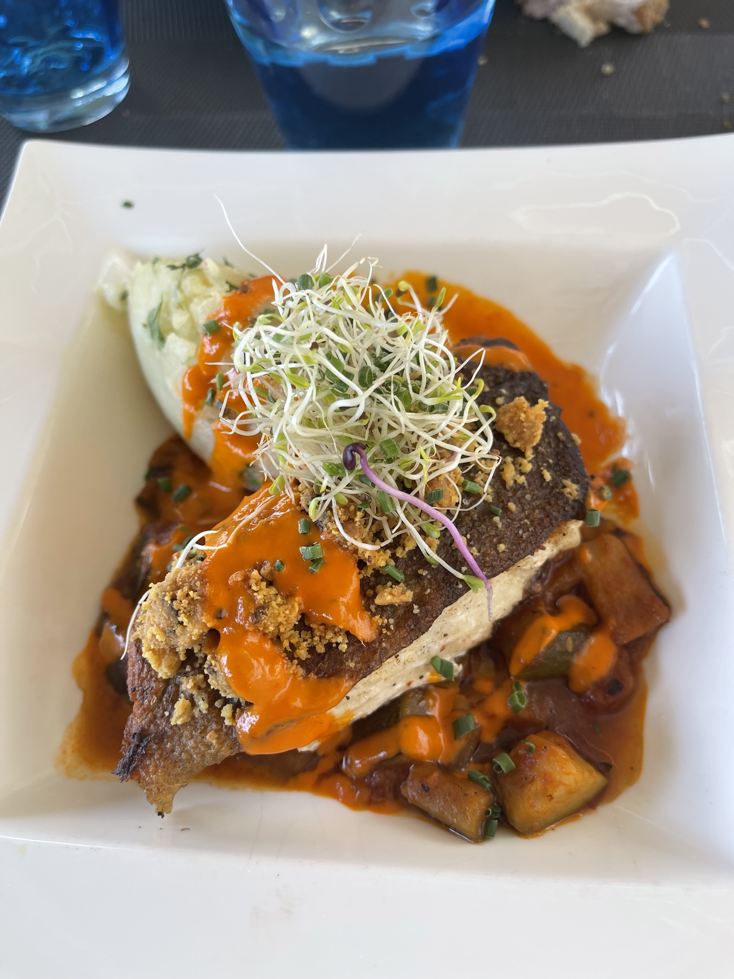 Vraiment parfait ! Nos trois plats de poissons différents étaient chacun absolument délicieux, le service discret, souriant et efficace. Une super vue et des desserts succulents.