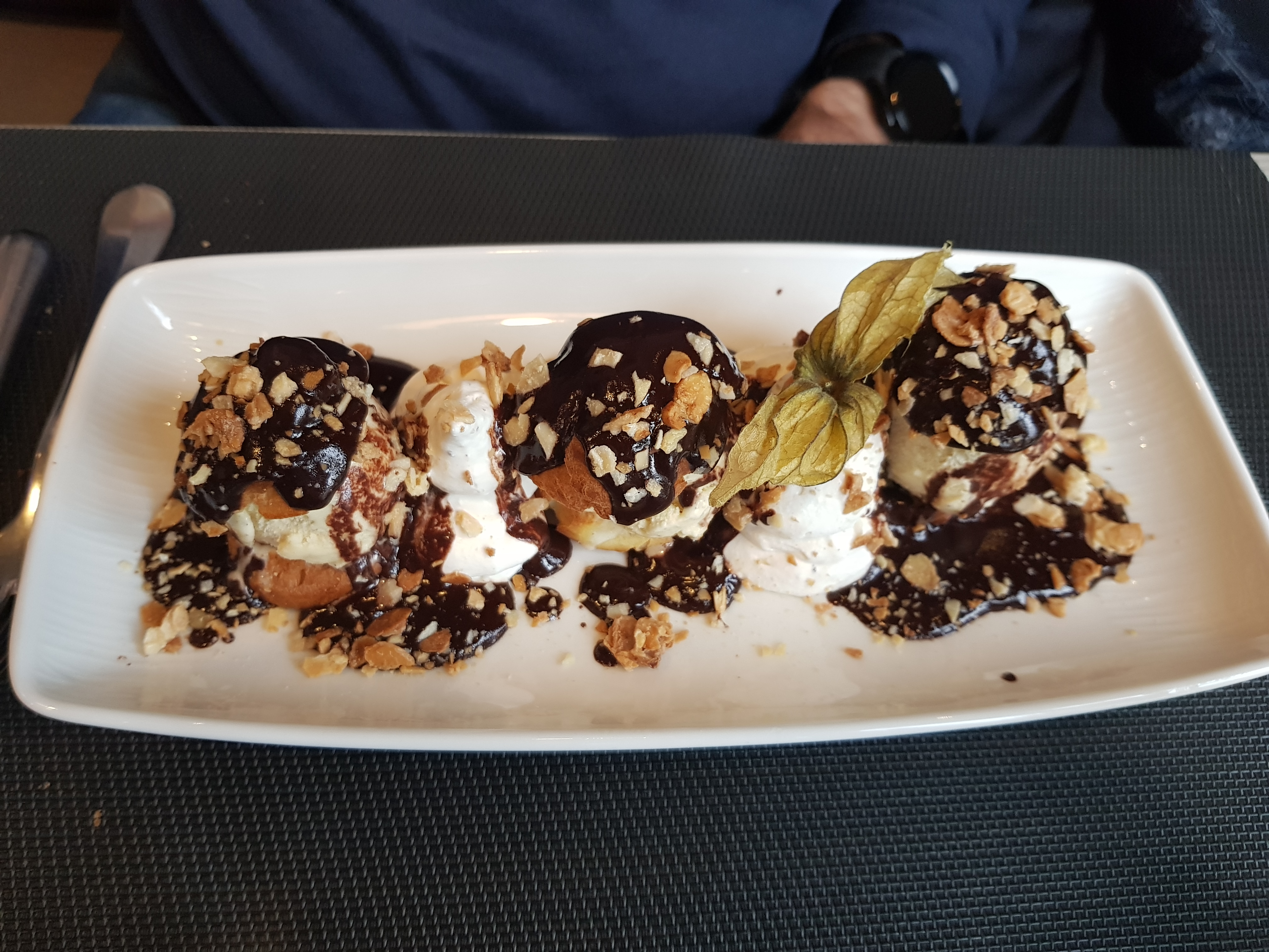 L'entrée et le plat satisfaisant par contre le dessert (profiteroles) les choux dur comme une coquille de noix selon le serveur c'est une spécialité du chef je reste septique à ce sujet. Par la suite concernant le service de table à peine servis presque aussitôt débarrasser.