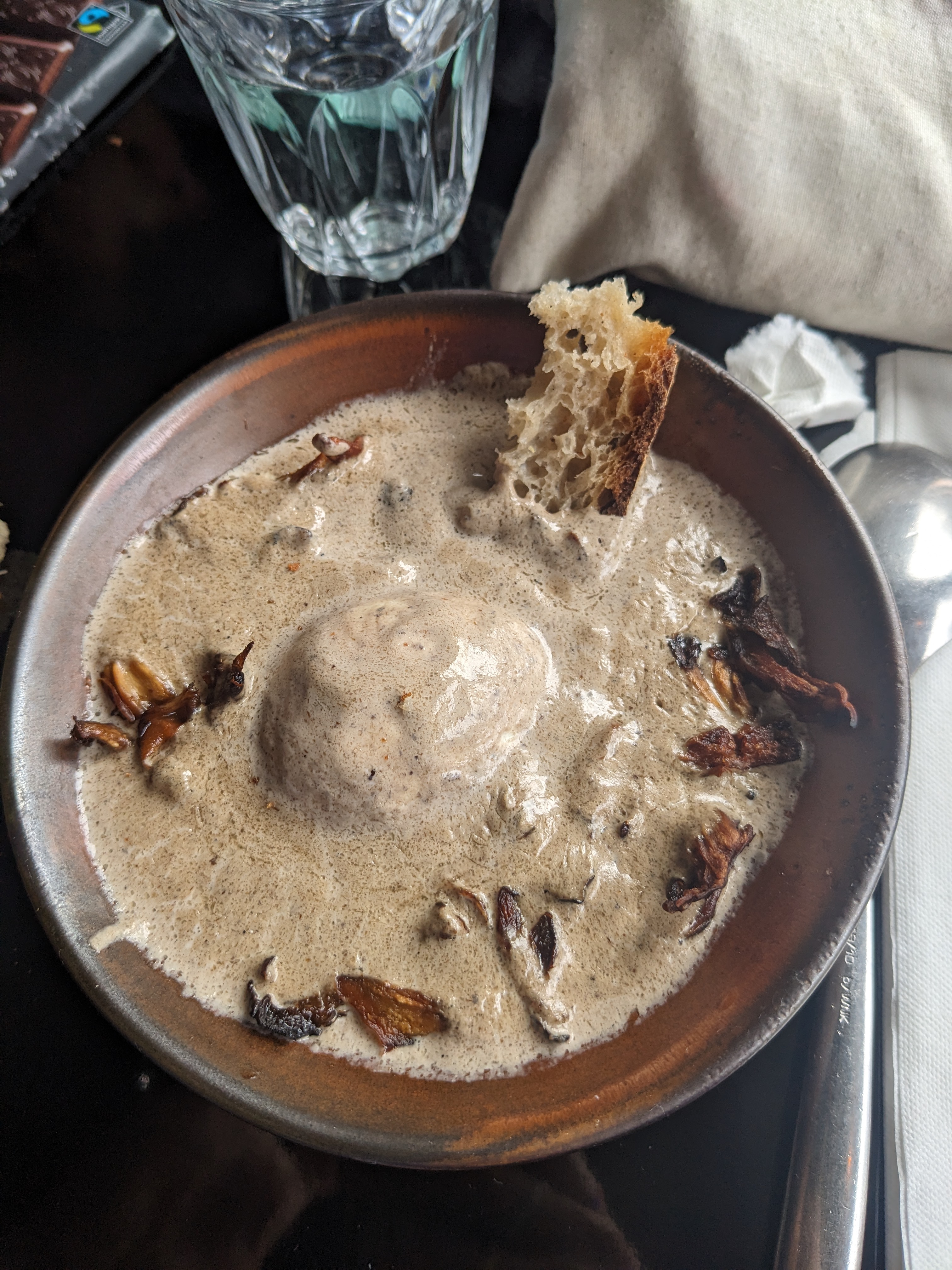 Très belle découverte, bel intérieur cosy et petite terrasse sympa, les plats étaient succulents et les prix abordables. Gros coup de cœur pour l’œuf mollet en entrée avec sa crème de pleurotes juste incroyable et le cromesqui de canette 🤤 En plat la picanha de bœuf 🤌🏼🤌🏼🤌🏼🤌🏼 gros + pour la persillade de girolles en accompagnement su-per bonne !!