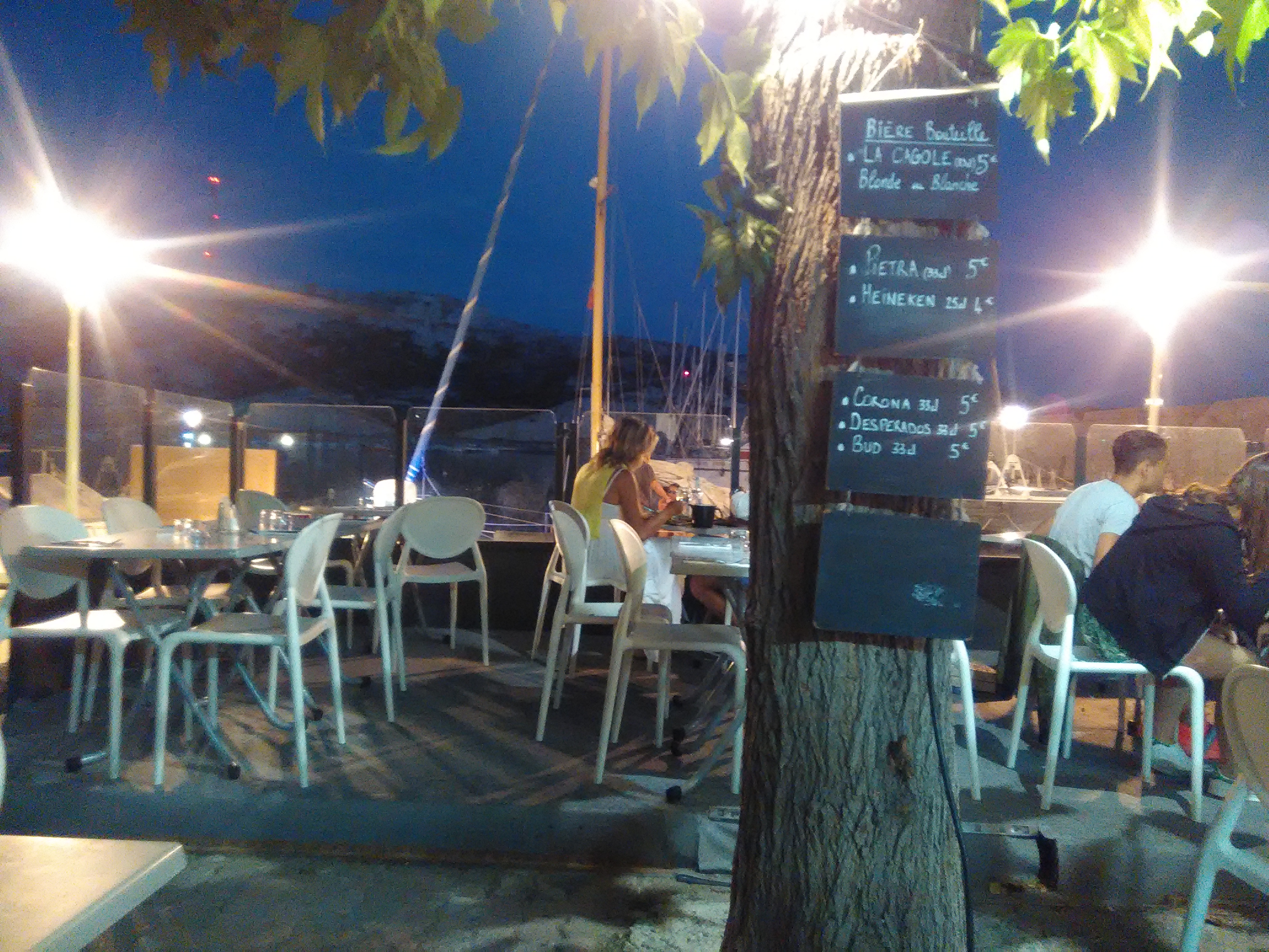 Accueil chaleureux et jolie vue sur le port. Le poisson (voir bar) et les sortes de pommes de terre provençales étaient excellents.