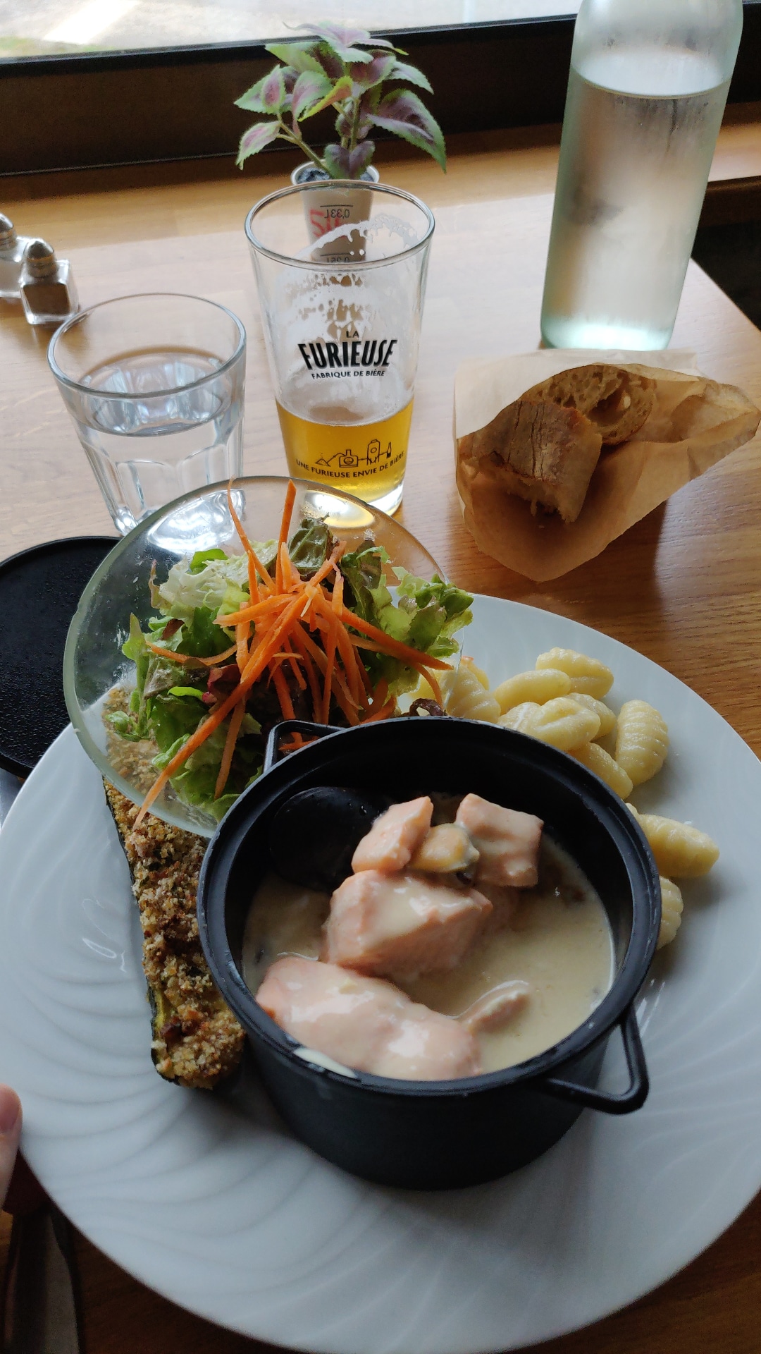 Avons déjeunes à midi, plat du jour correct, filet d eglefin et pour moi, crozet au canard, insipide, crème trop liquide, manque de réduction, très déçu. C'est la troisième fois que nous ne sommes pas satisfait !!!
