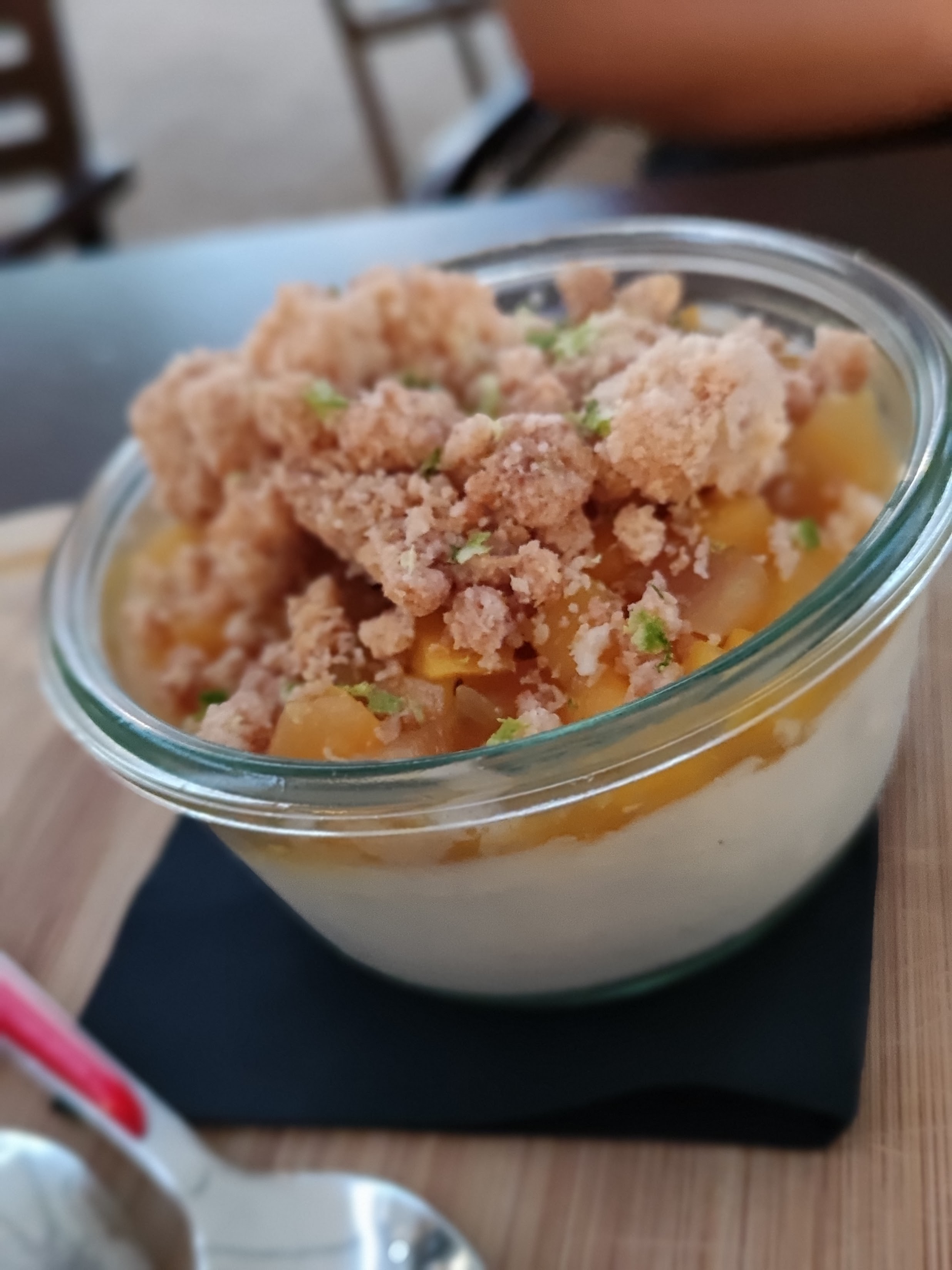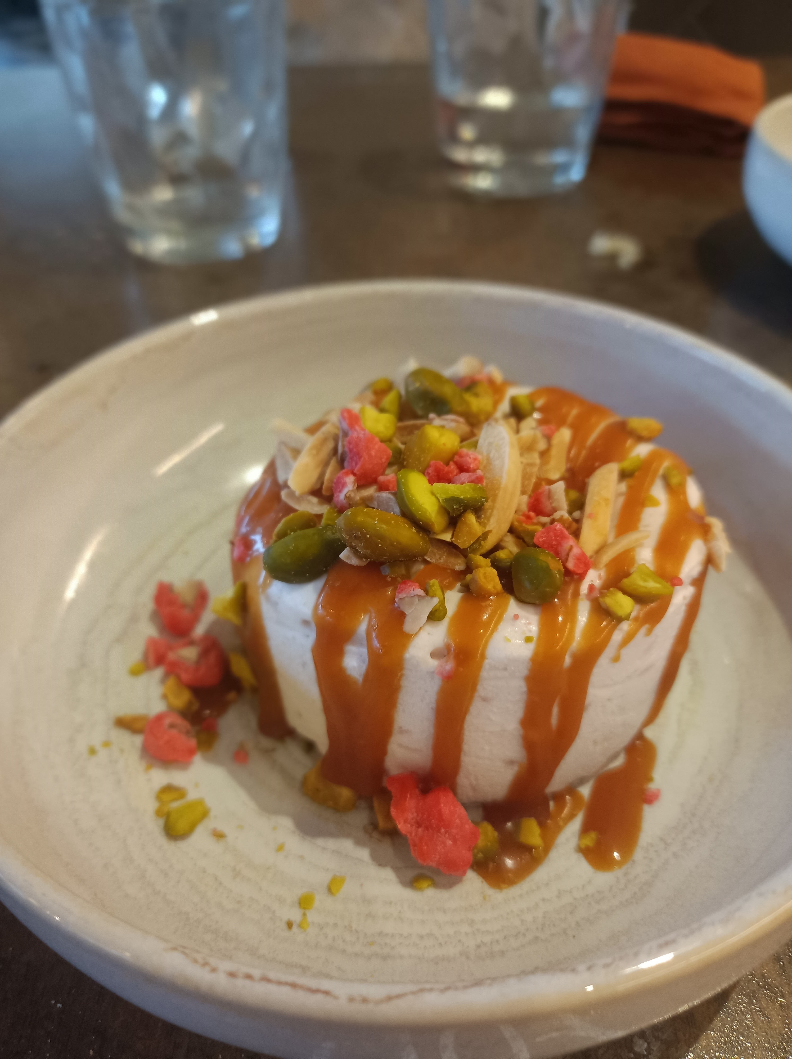 Très honorable Salade orientale originale et très bonne. Mention spéciale pour la pavlova et curieusement les haricots verts qui étaient excellents. Quelques ajustements encore pour le service mais agréable et souriant.