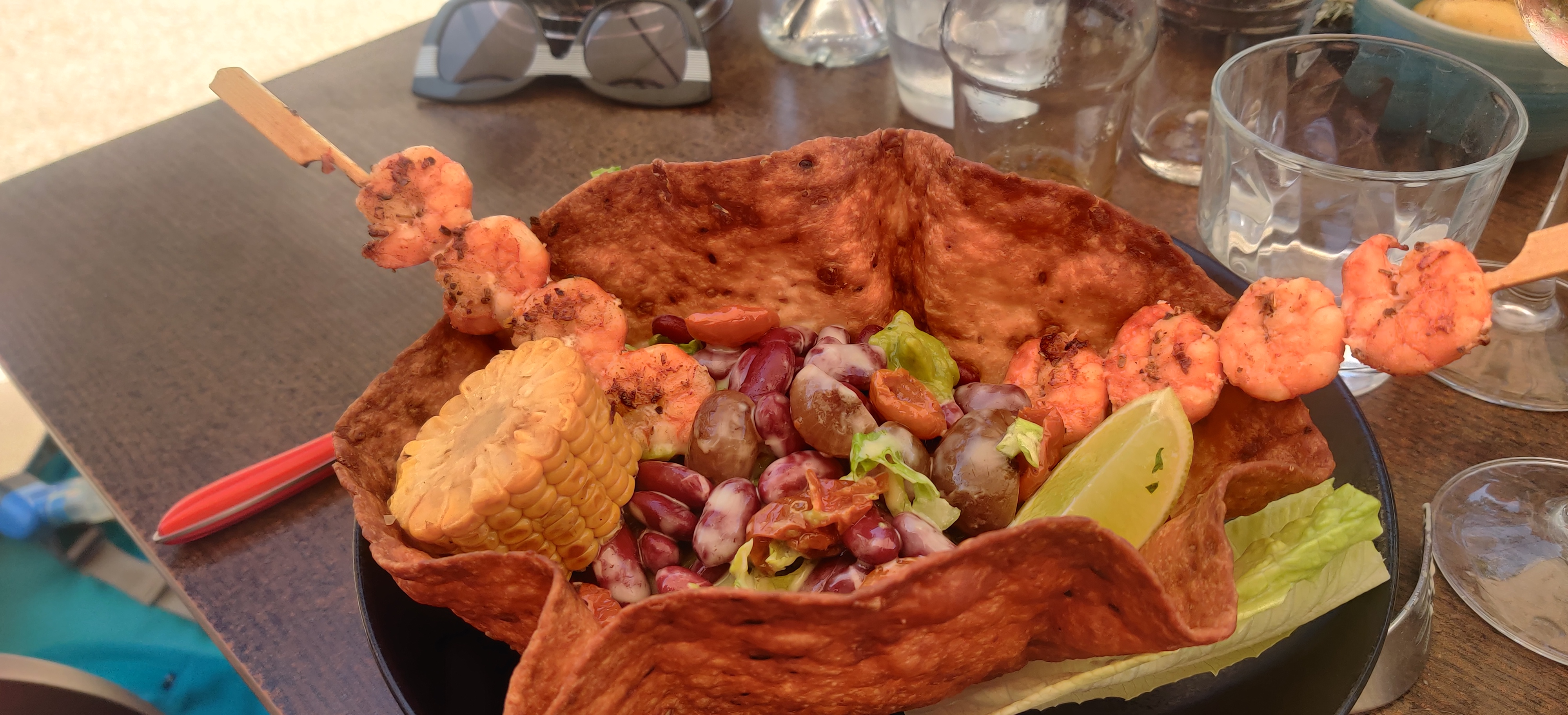 10 euros pour cette super salade, un service au top ! Une tres bonne adresse pour profiter de l'île !