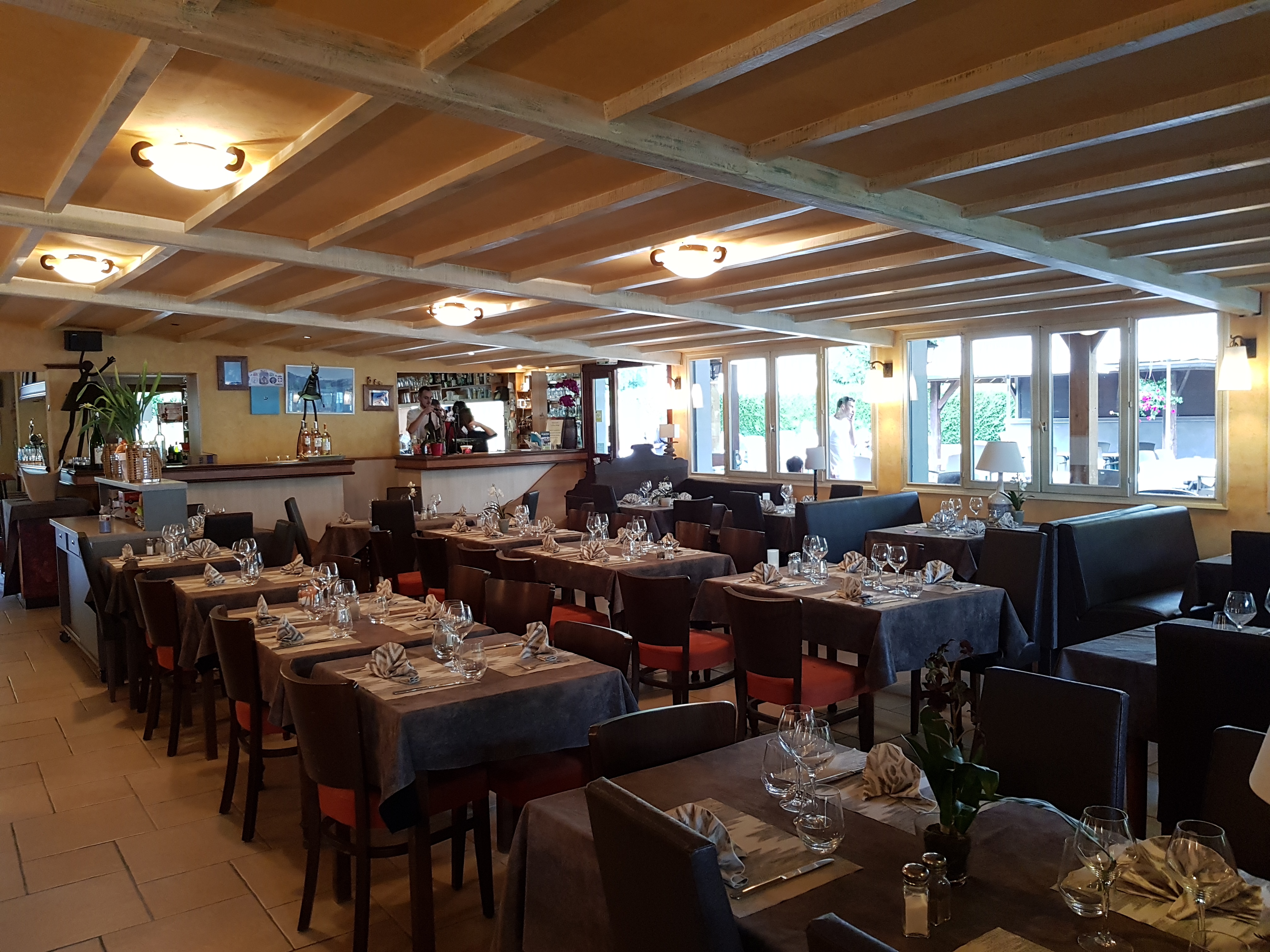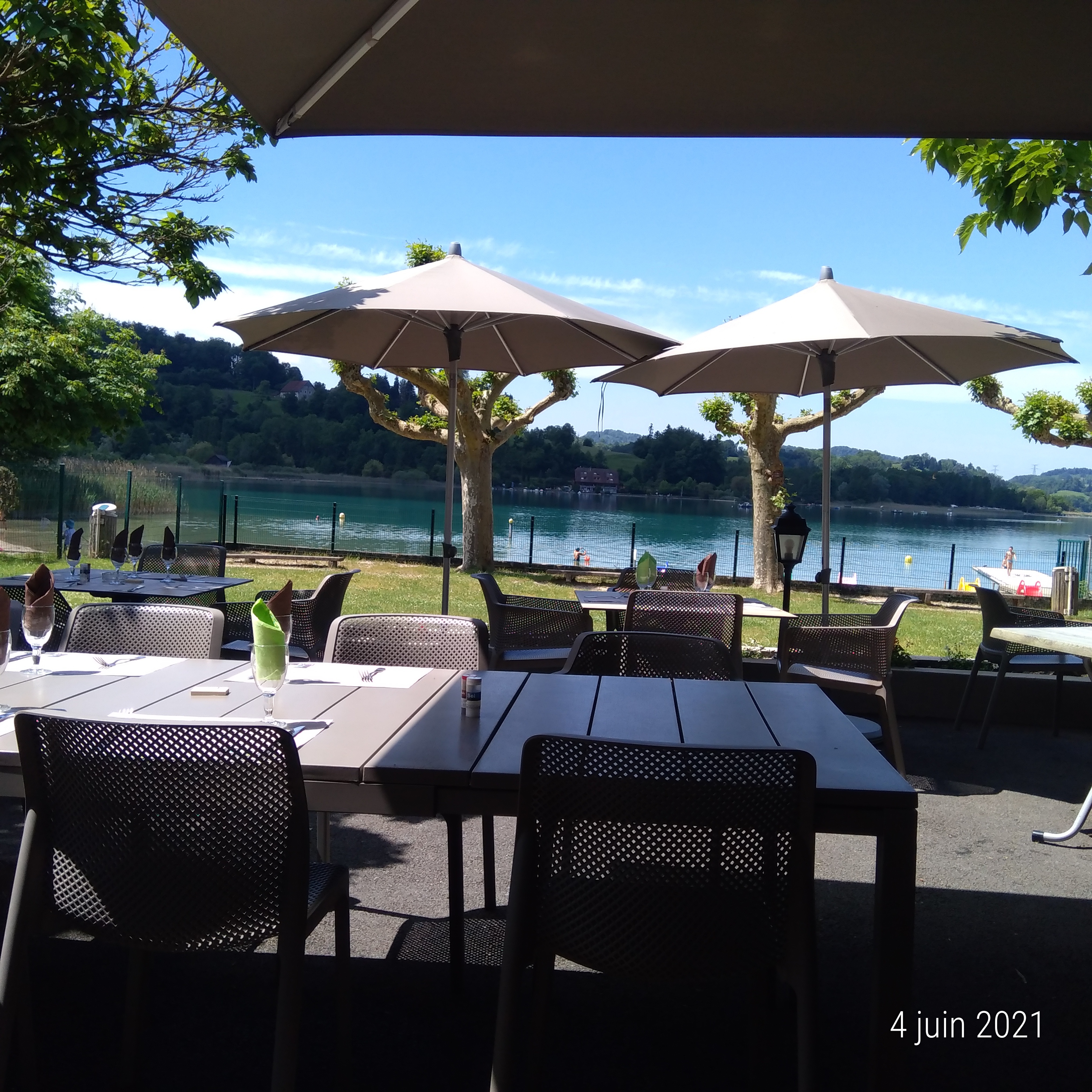 Nous sommes la table de 22 personnes, cadre agréable, vue sur le lac, service parfait pour ce dimanche 26, bonne cuisine, framboisier excellent .